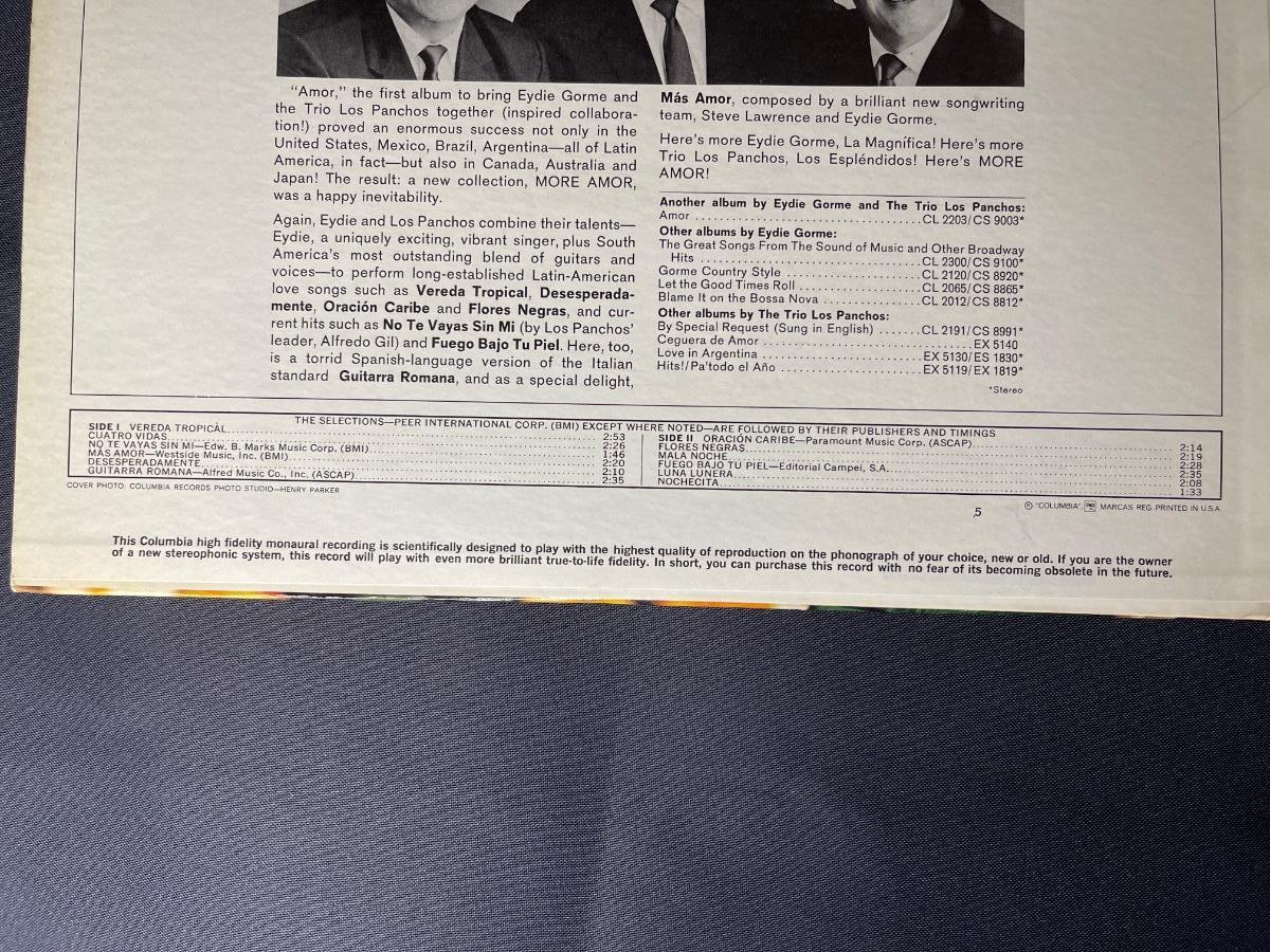 LOT 92: EYDIE GORME & THE TRIO LOS PANCHOS - MORE AMOR - 1966 VINYL