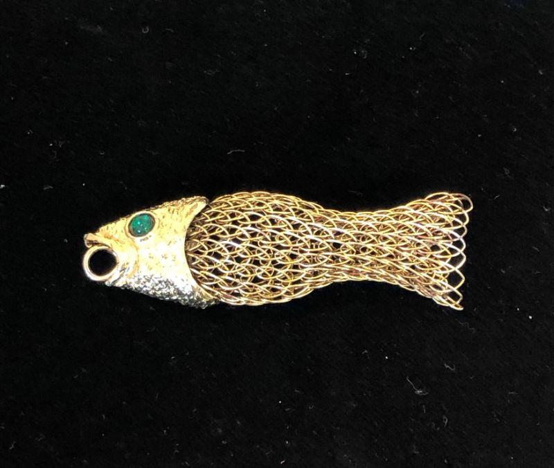 Lot 92 - Gold Tone Mesh Fish Pendant