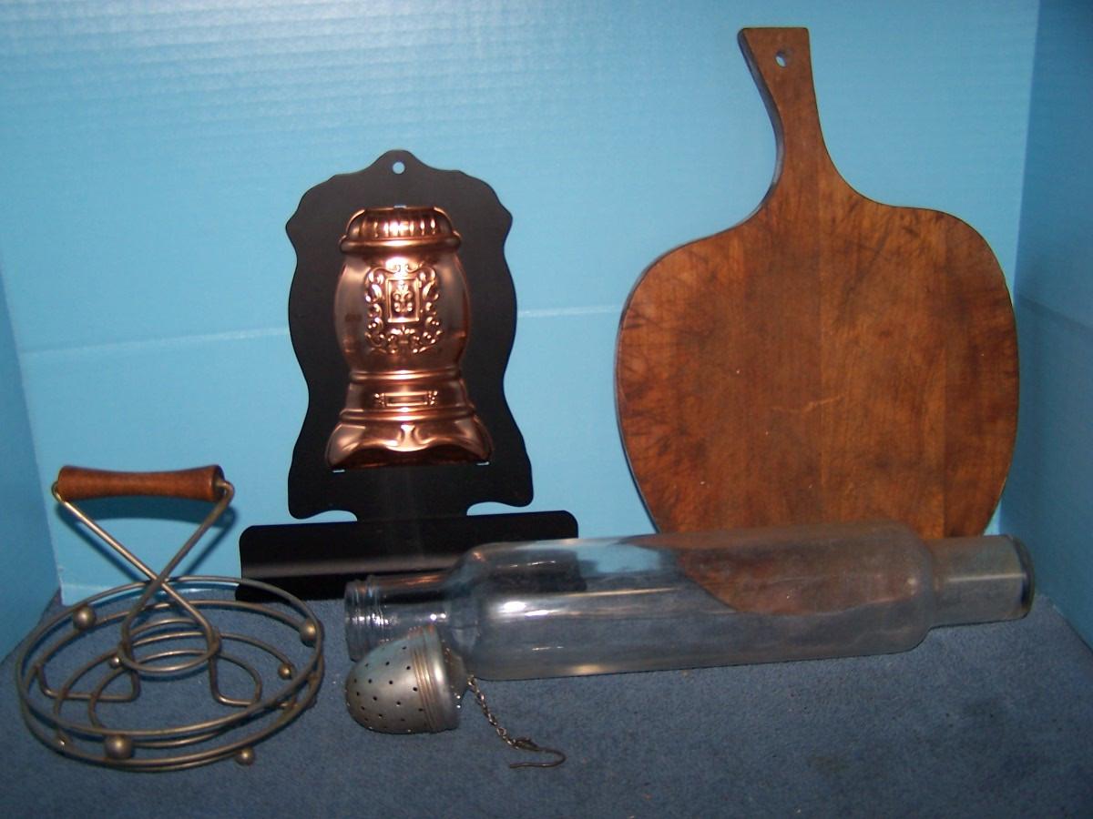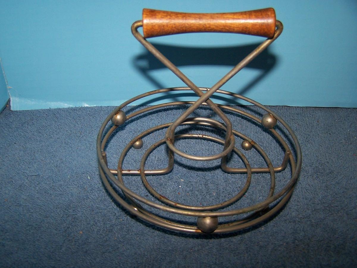 THIS IS GREAT VINTAGE KITCHENWARE!!! METAL HANGING/STOVE COOKBOOK HOLDER IS 70'' TALL... LIGHT WEAR..
