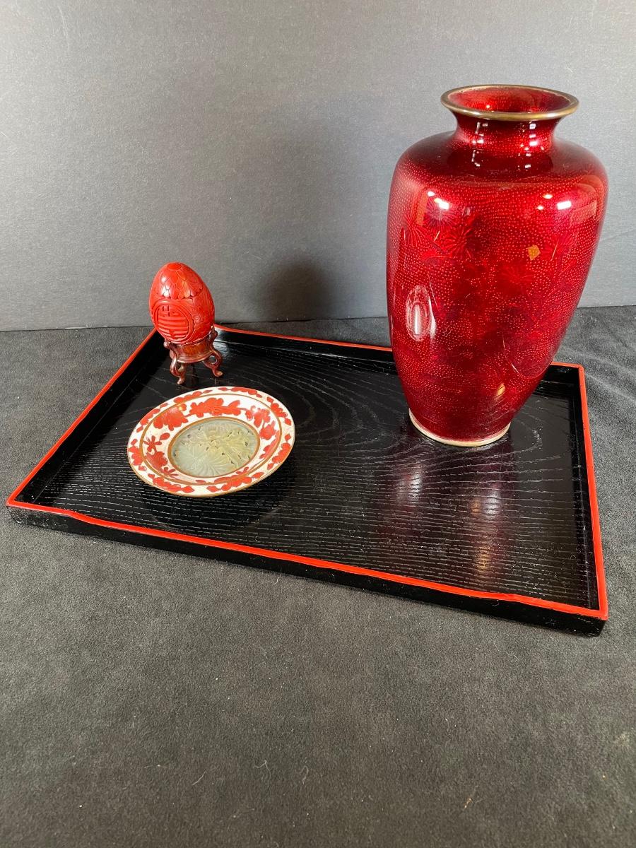 Lot 92. Japanese Cloisonne Vase and Cinnabar Egg