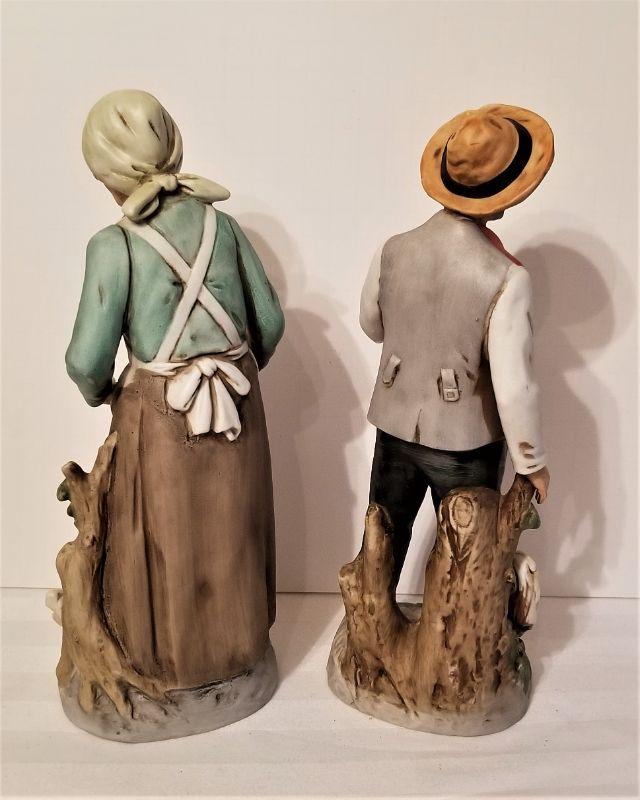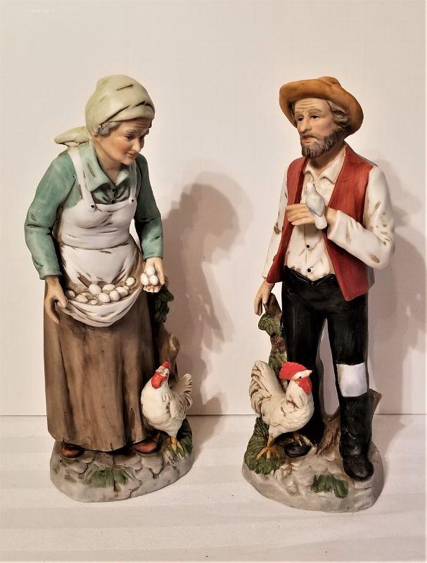 Farmer and Egg-gathering wife - bisque porcelain - good condition. Each is about 10" tall.