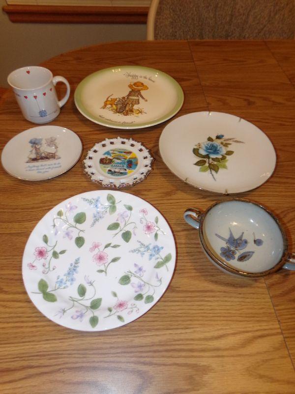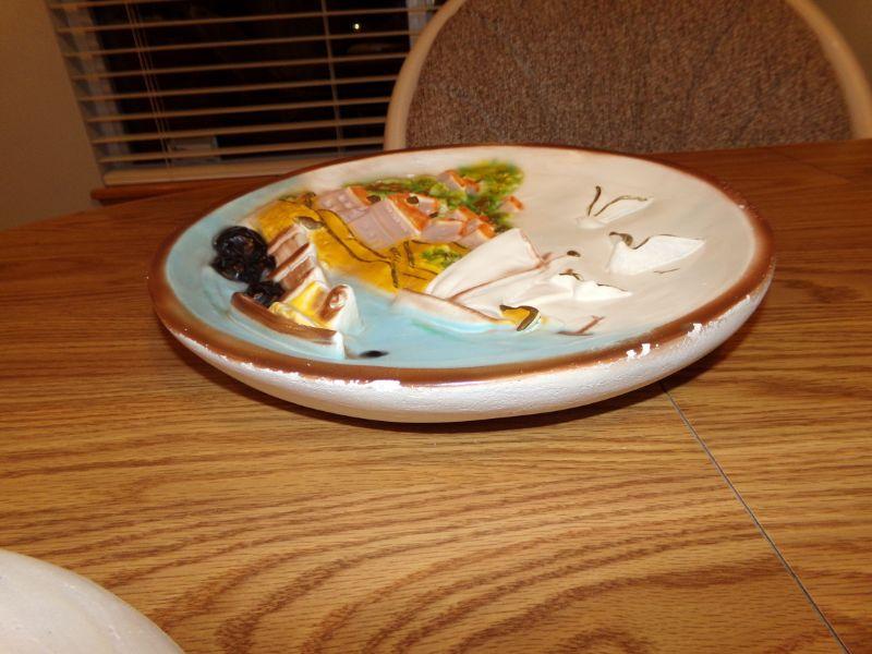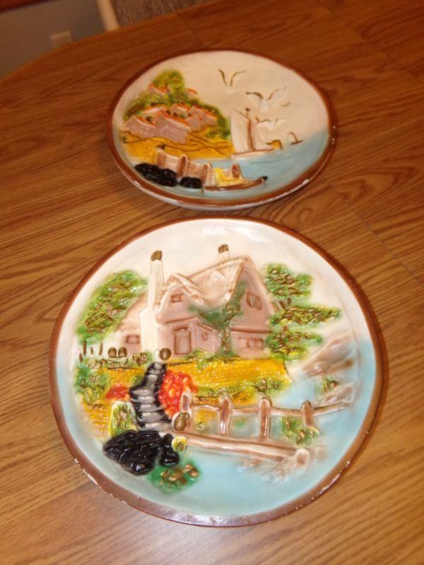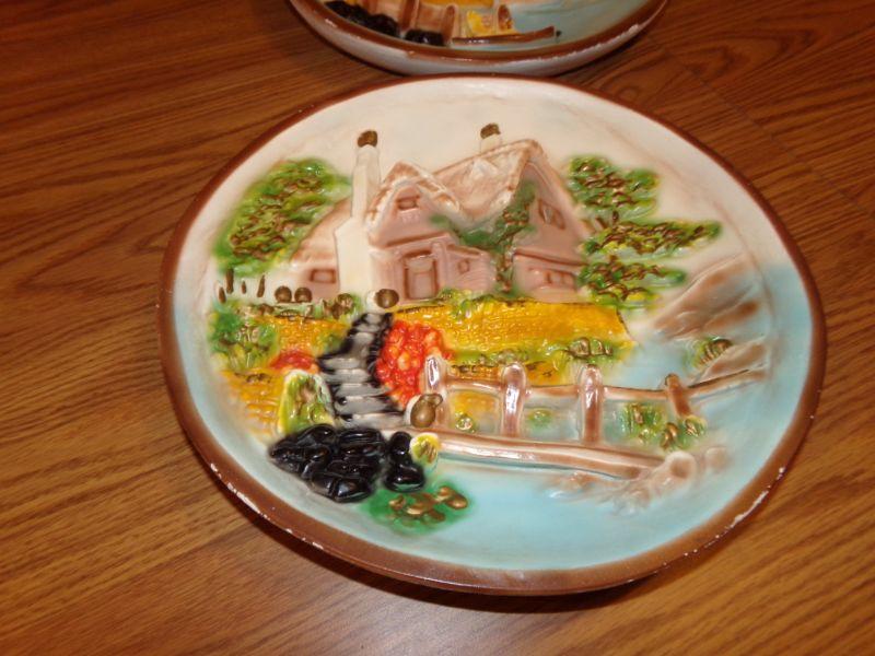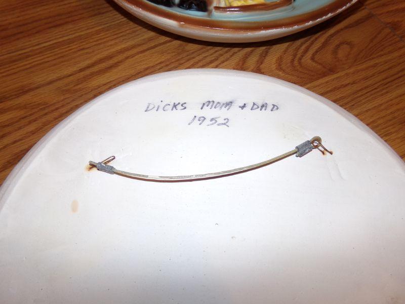 2 CHALKWARE, 3D PLATES THAT READ "DICK'S MOM & DAD 1952 ON THE BACK. ALSO SEVERAL OTHER PLATES INCLUDED