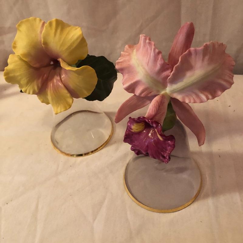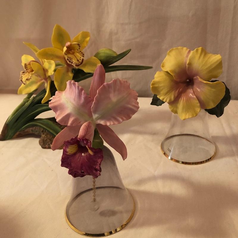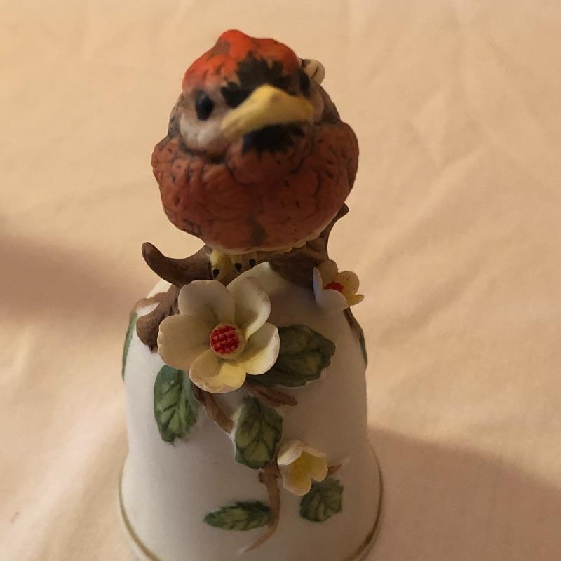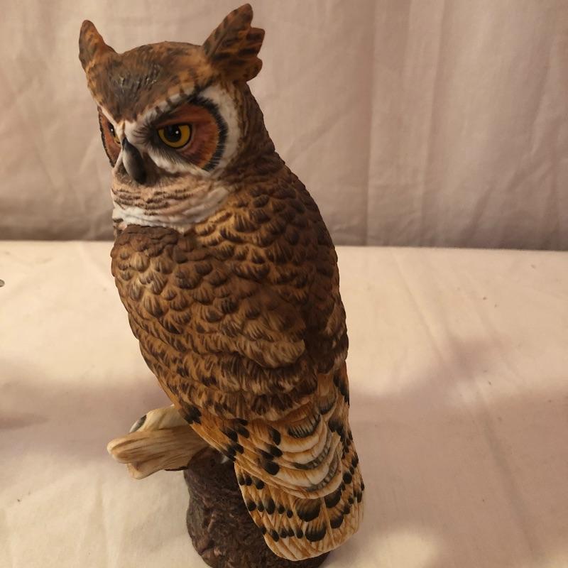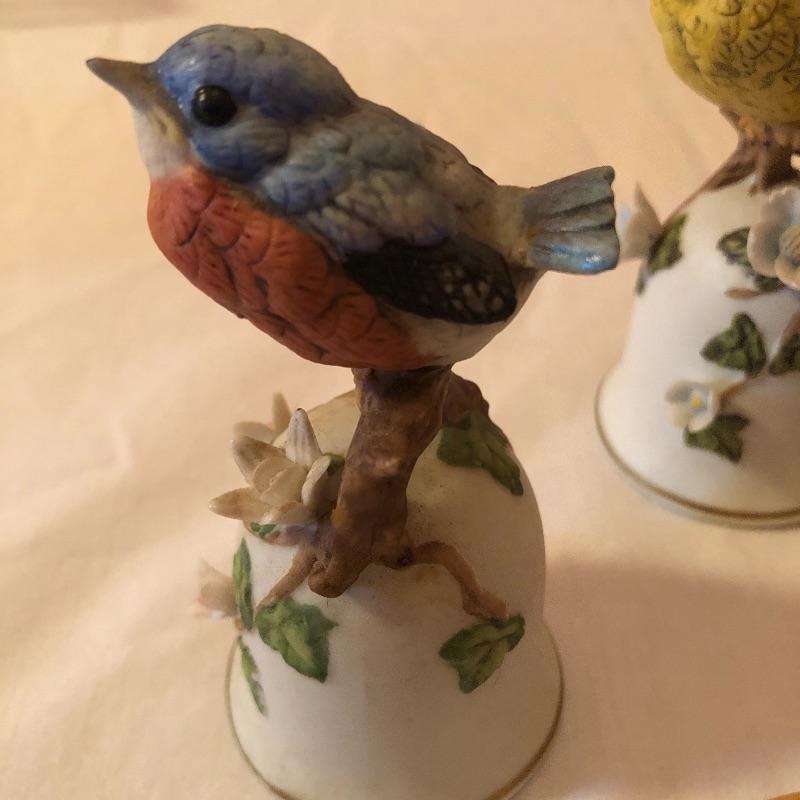 What a great lot! This lot includes eleven pieces: three owl figurines, two floral bells and one floral figurine and five bird figurines (with four being bells). Please note the ringer and pistil is missing from the yellow hibiscus. The largest owl measures approximately 10.5” tall. Shipping Available.