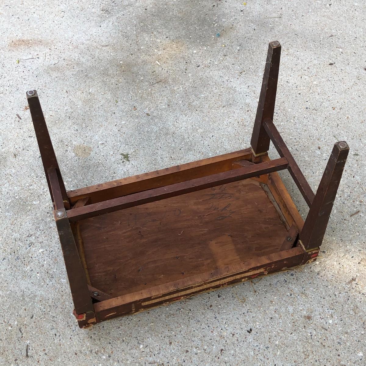 Structurally, this is solid. Cosmetically, it needs some loving. This is definitely a project piece, but one that will be worth it! It stands 17" tall and is 23" x 14".