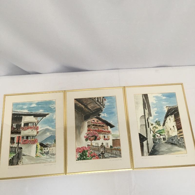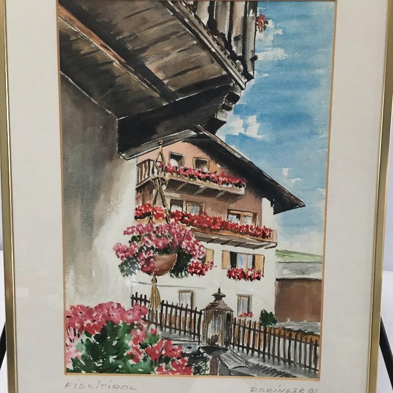 Trio of Rollinger watercolors from Fiss/Tirol in Austria. All are signed by Rollinger and dated 92. The vibrant colors in the pieces make you long for spring when all the flowers are in bloom. Frames measure 12” x 16”.
