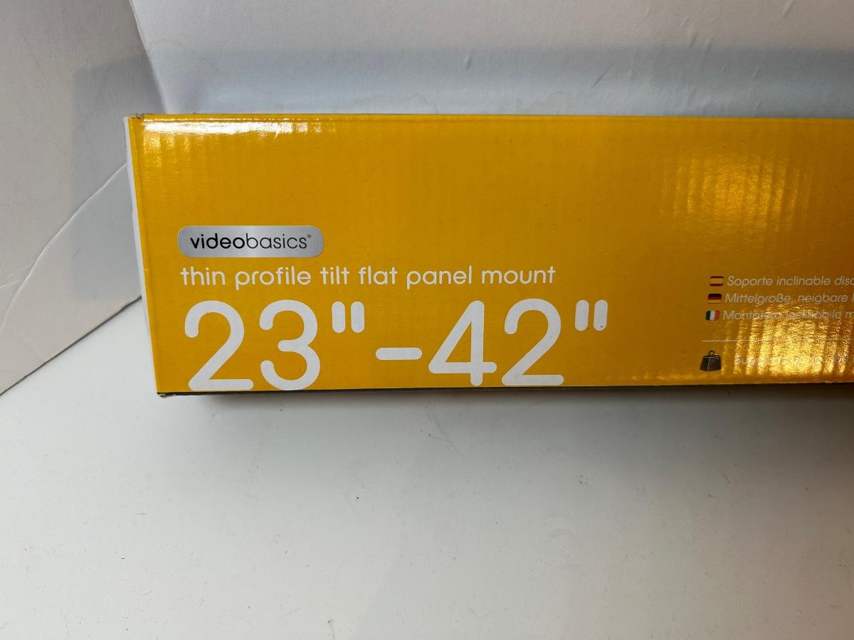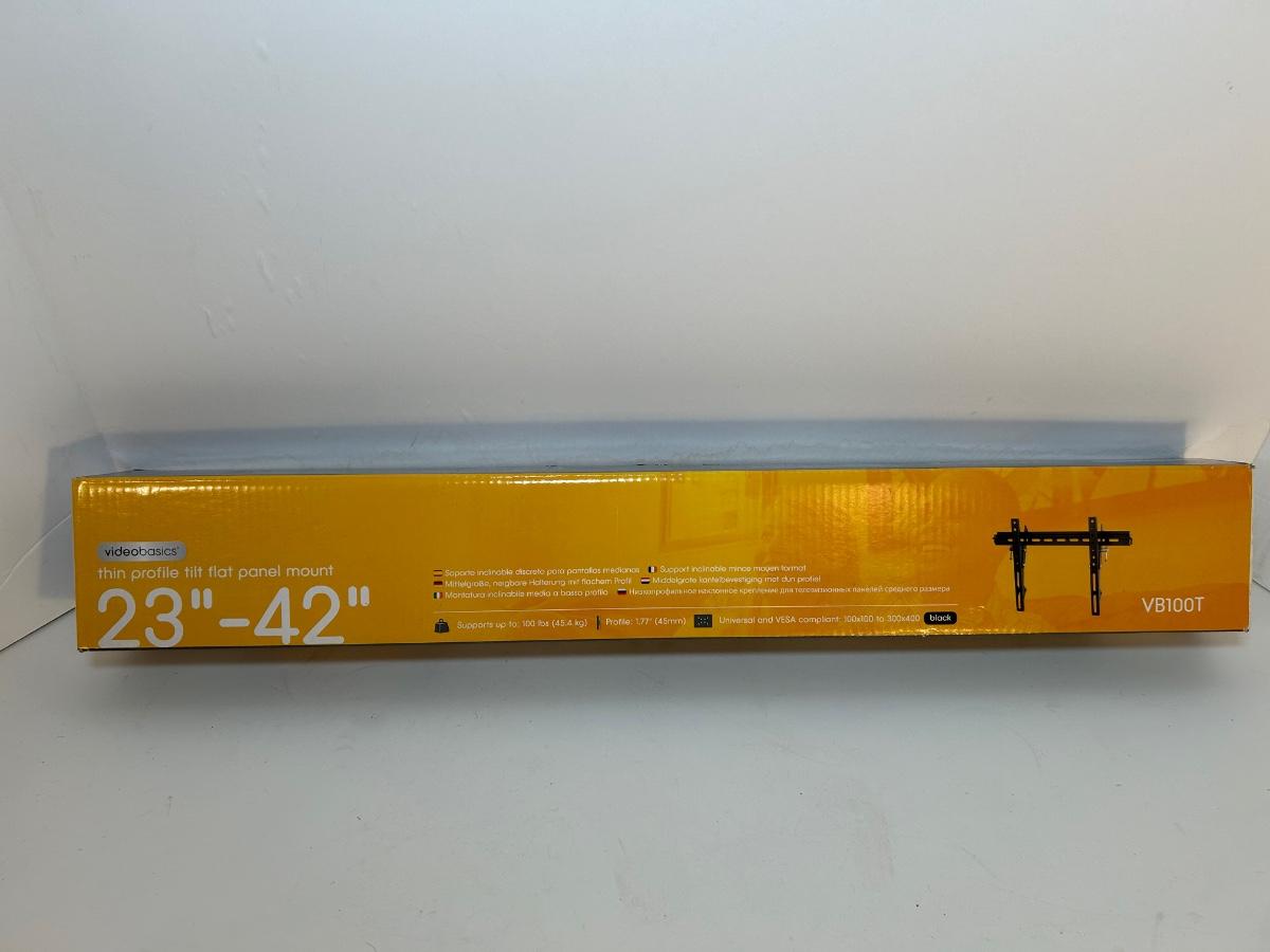 Videobasics thin profile tilt flat panel mount for a 23” - 42” TV, supports up to 100lbs.