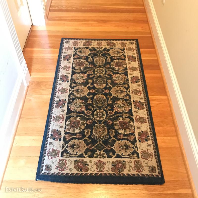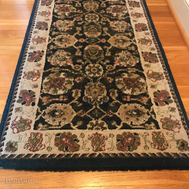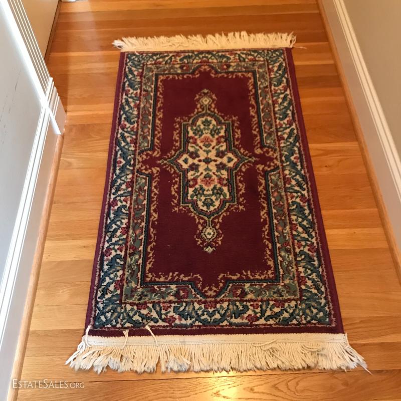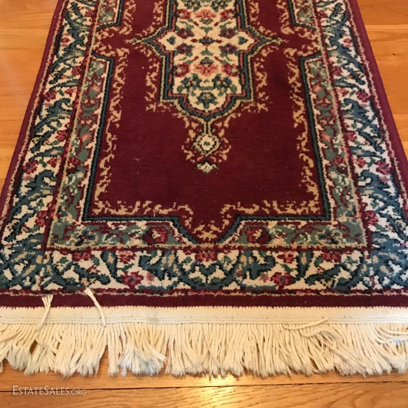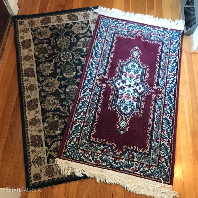 Two small rugs. One wine-colored measures 23"l x 44.5"w with fringe. Blue measure 44" l x 23.5"w. Shipping available or local pick up in Asheville, NC.