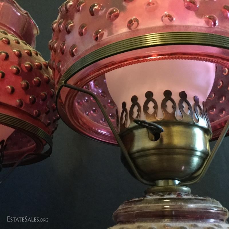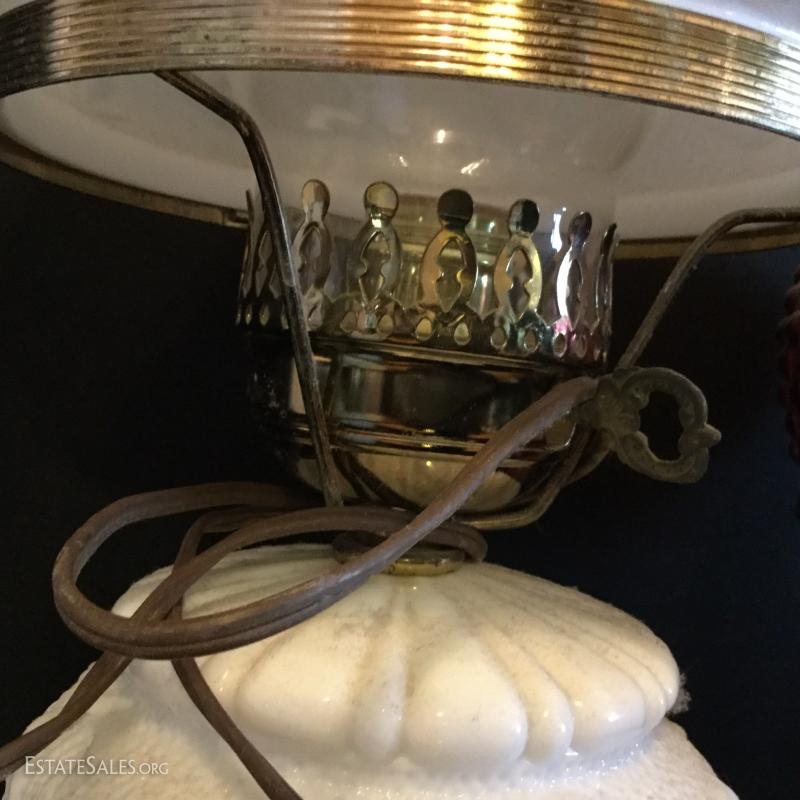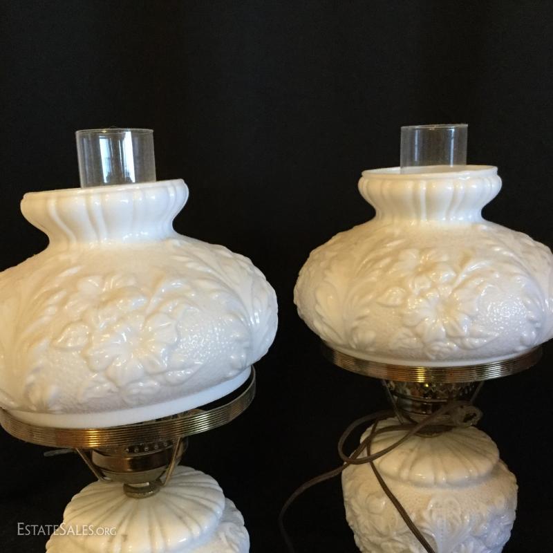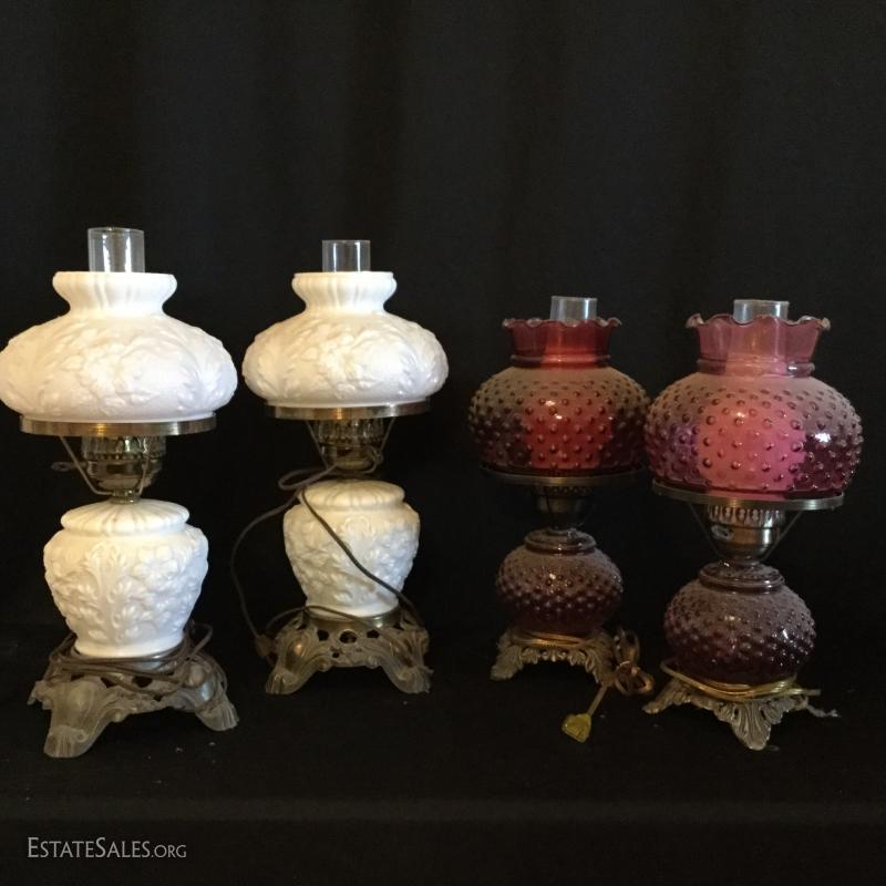Cranberry lamps are 17" tall and milk glass lamps are 19" tall. Pick up only Columbus, NC
