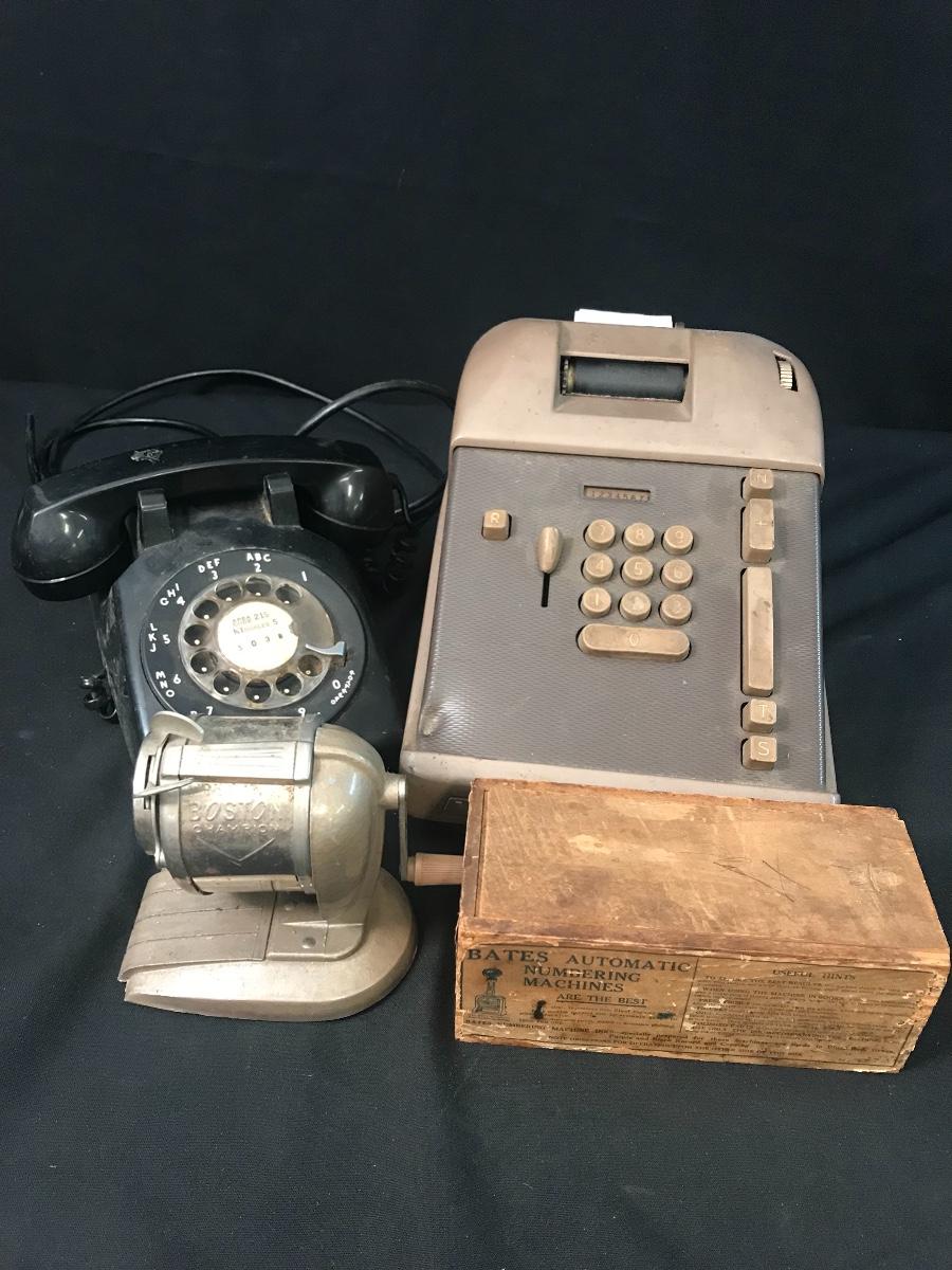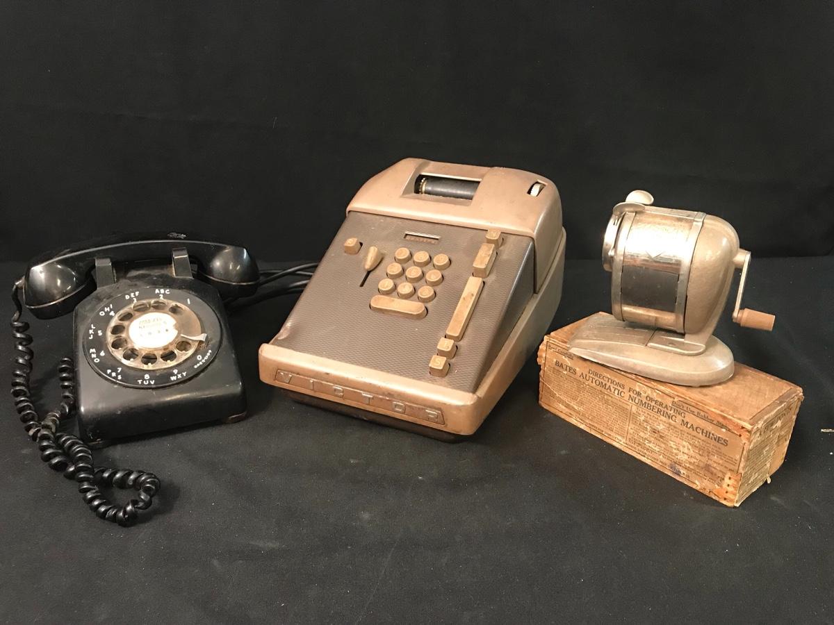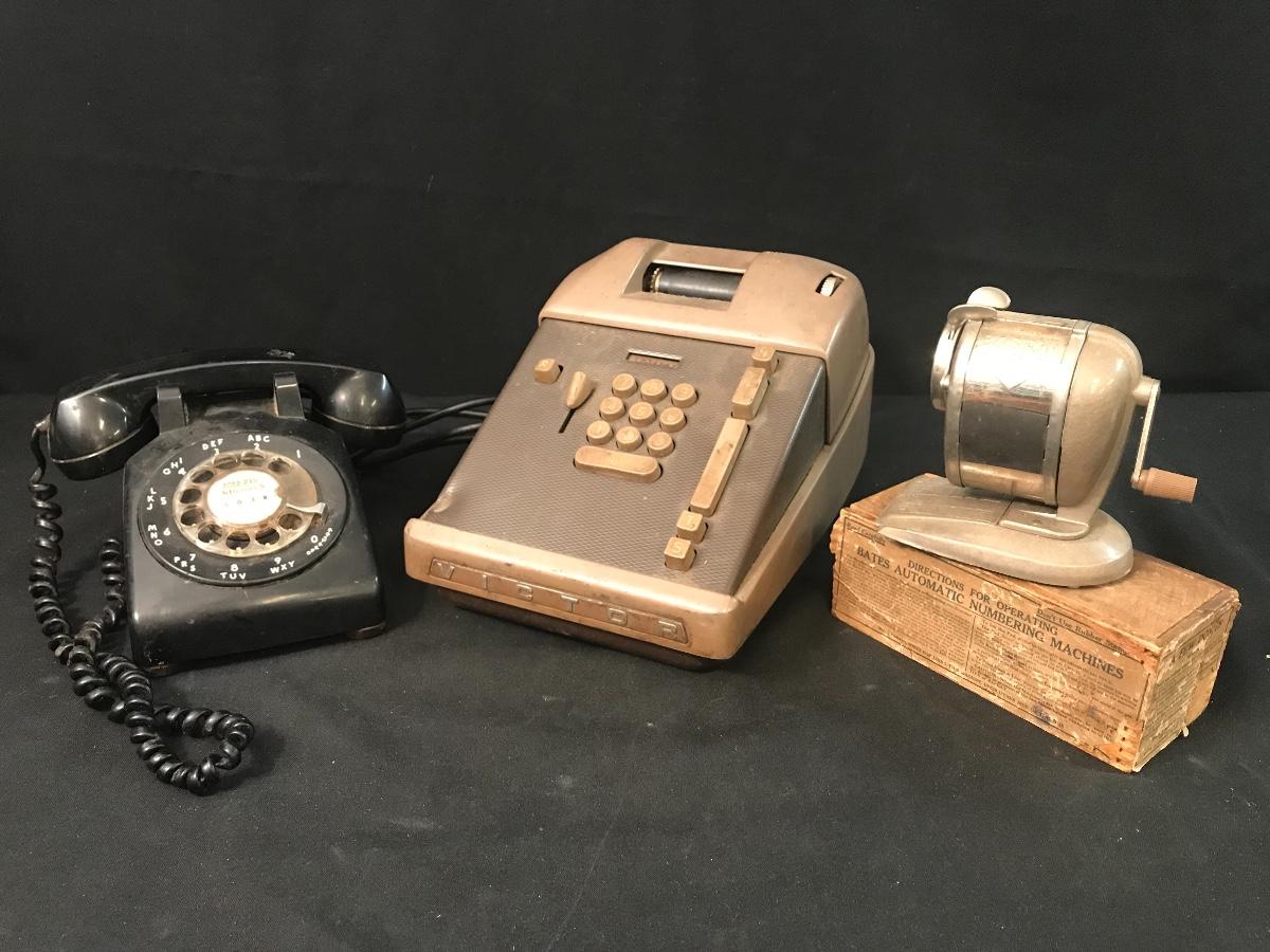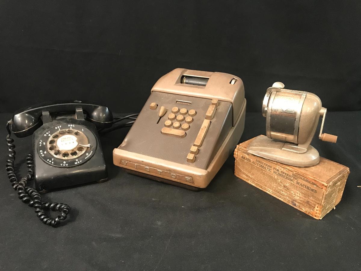 Lot 92: Vintage Office Equipment - Rotary Phone, Adding Machine & More