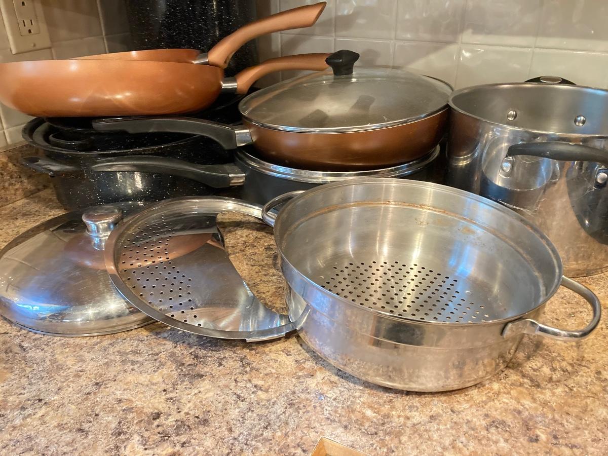 LOT 55K: Cookware - Farberware, Healthy Living, Roasting Pans and More