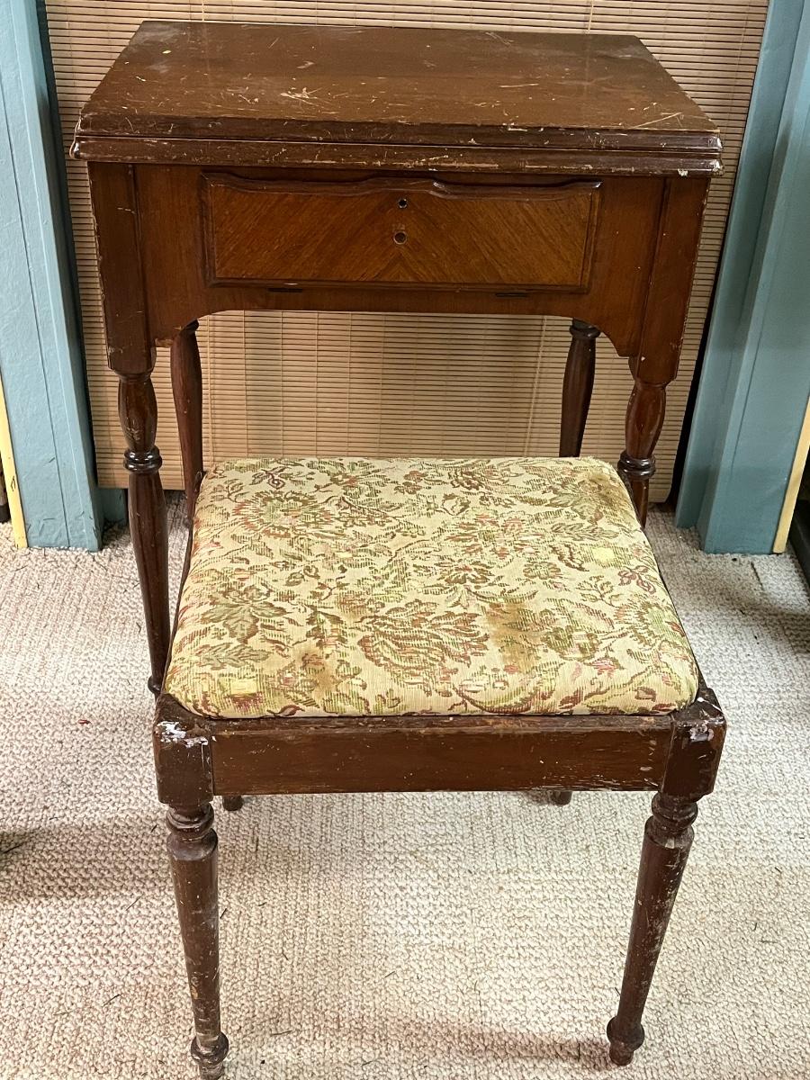 LOT 269B: Vintage Sewing Machine Table and Bench