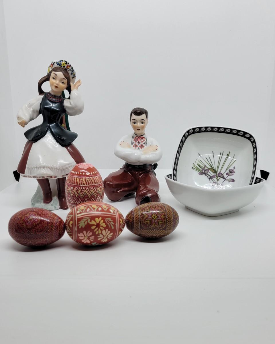 LOT 305L: Ukrainian Figurines, Lenox Bowls & Wooden Eggs