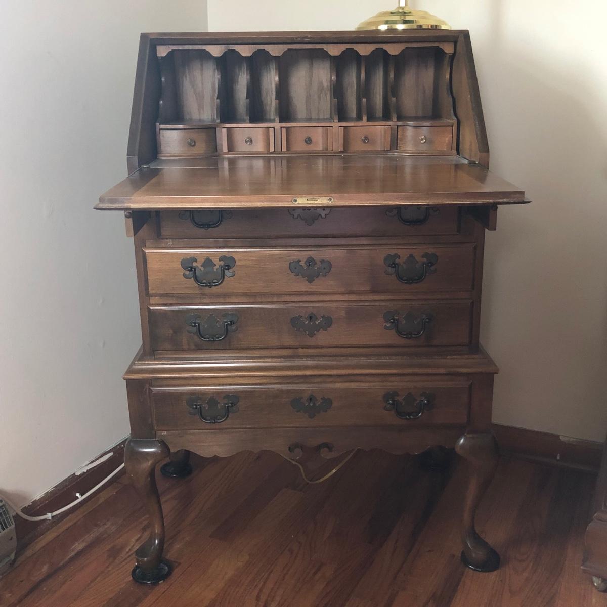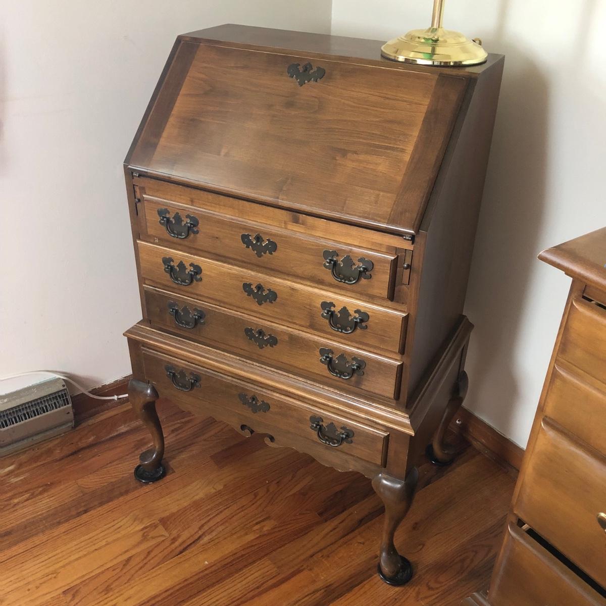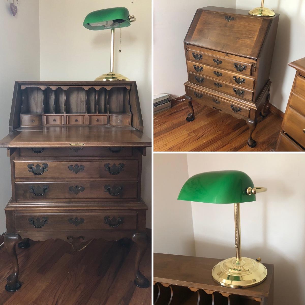 LOT 18M: Vintage Maddox Drop Front Desk w/ Lamp