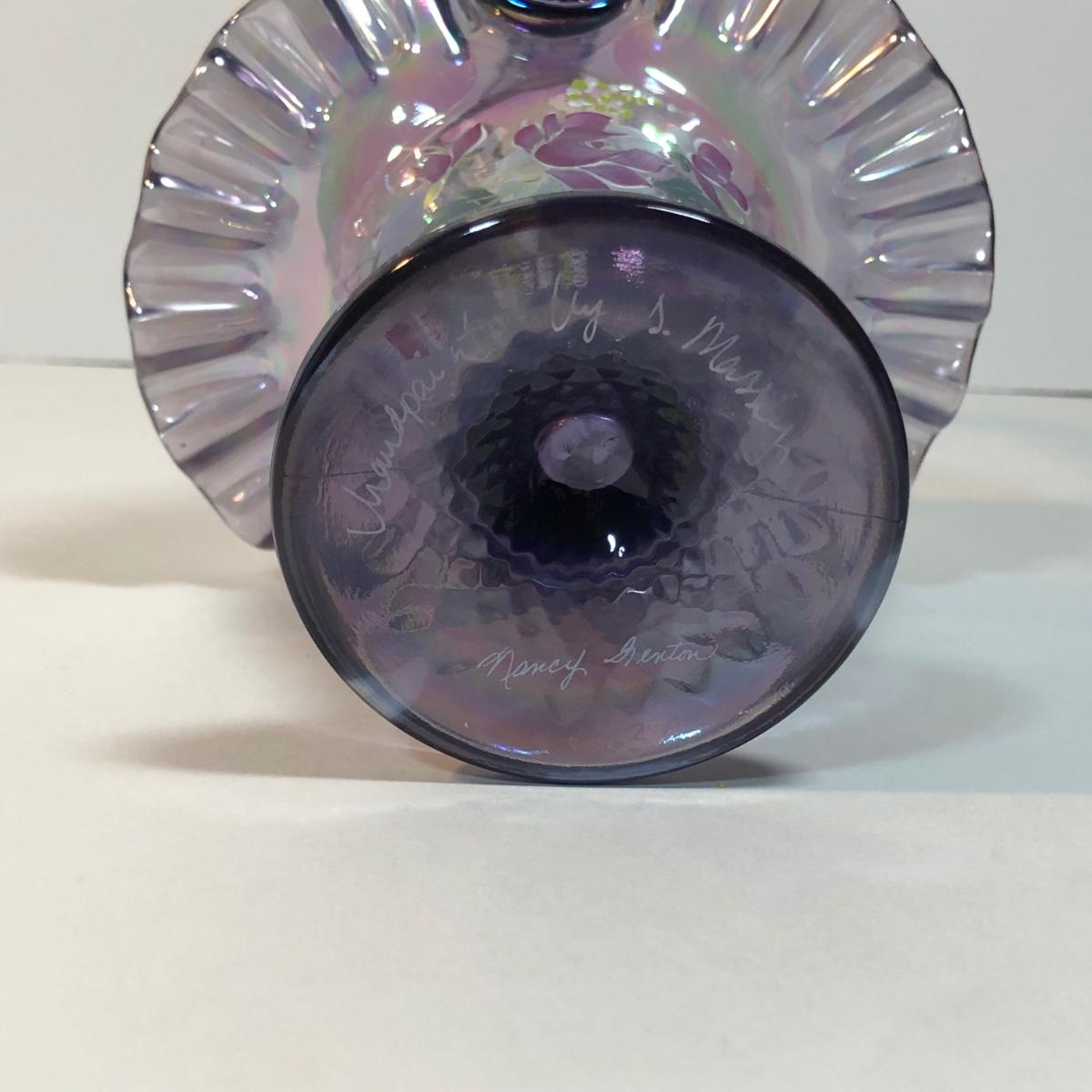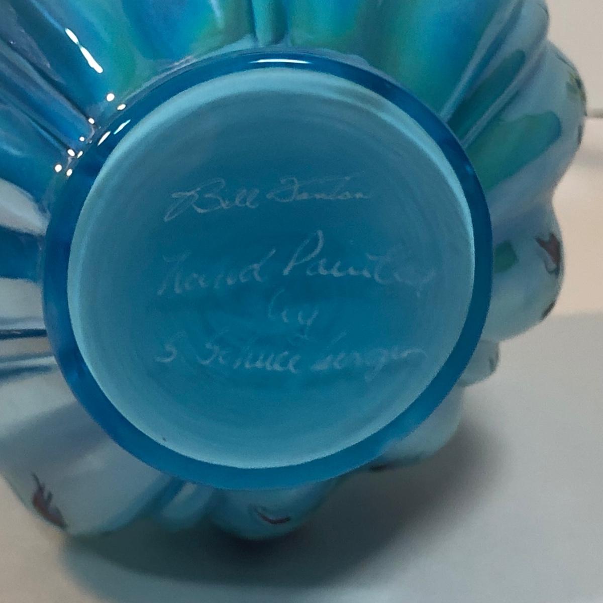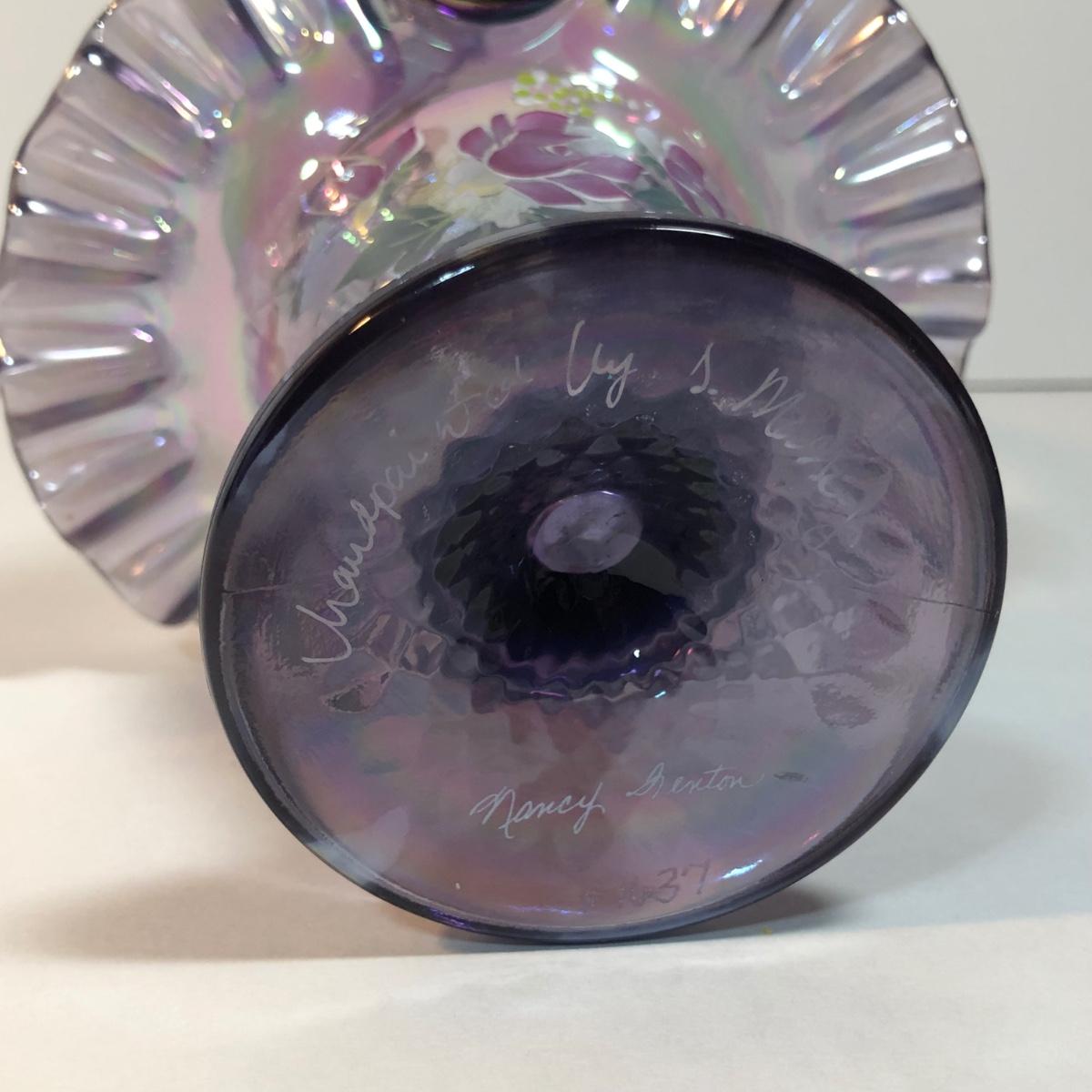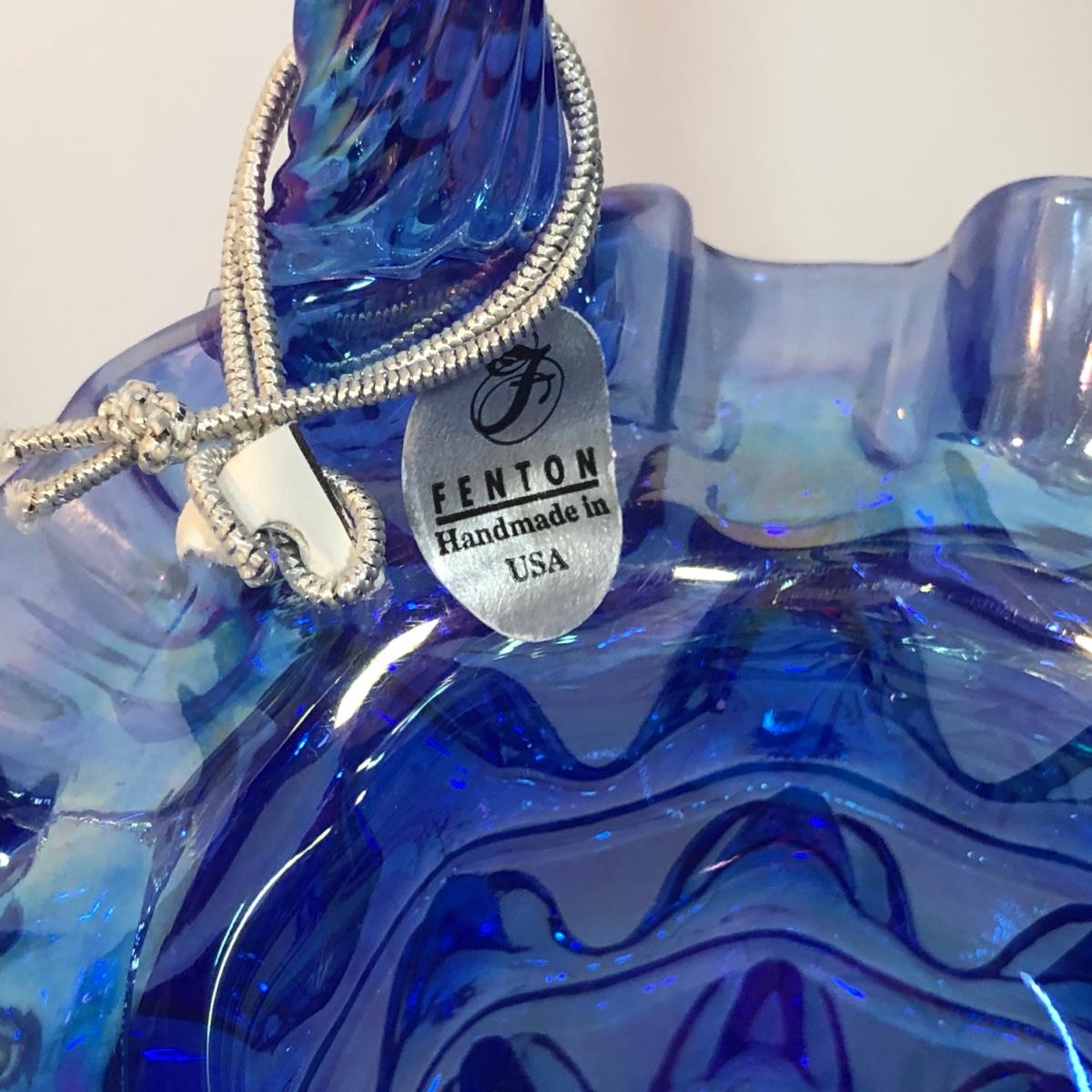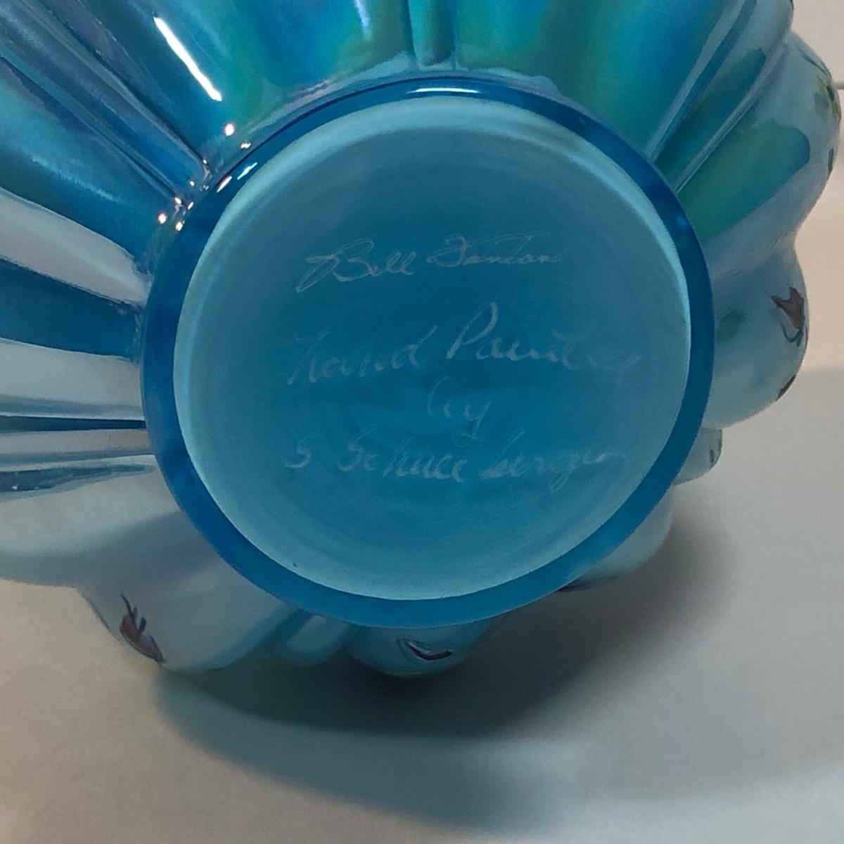 LOT 23M: Fenton Baskets: Blue Topaz Overlay Glass Basket, 95th Anniversary Basket, Cobalt Blue Iridescent Basket & Iridescent Multicolored Basket