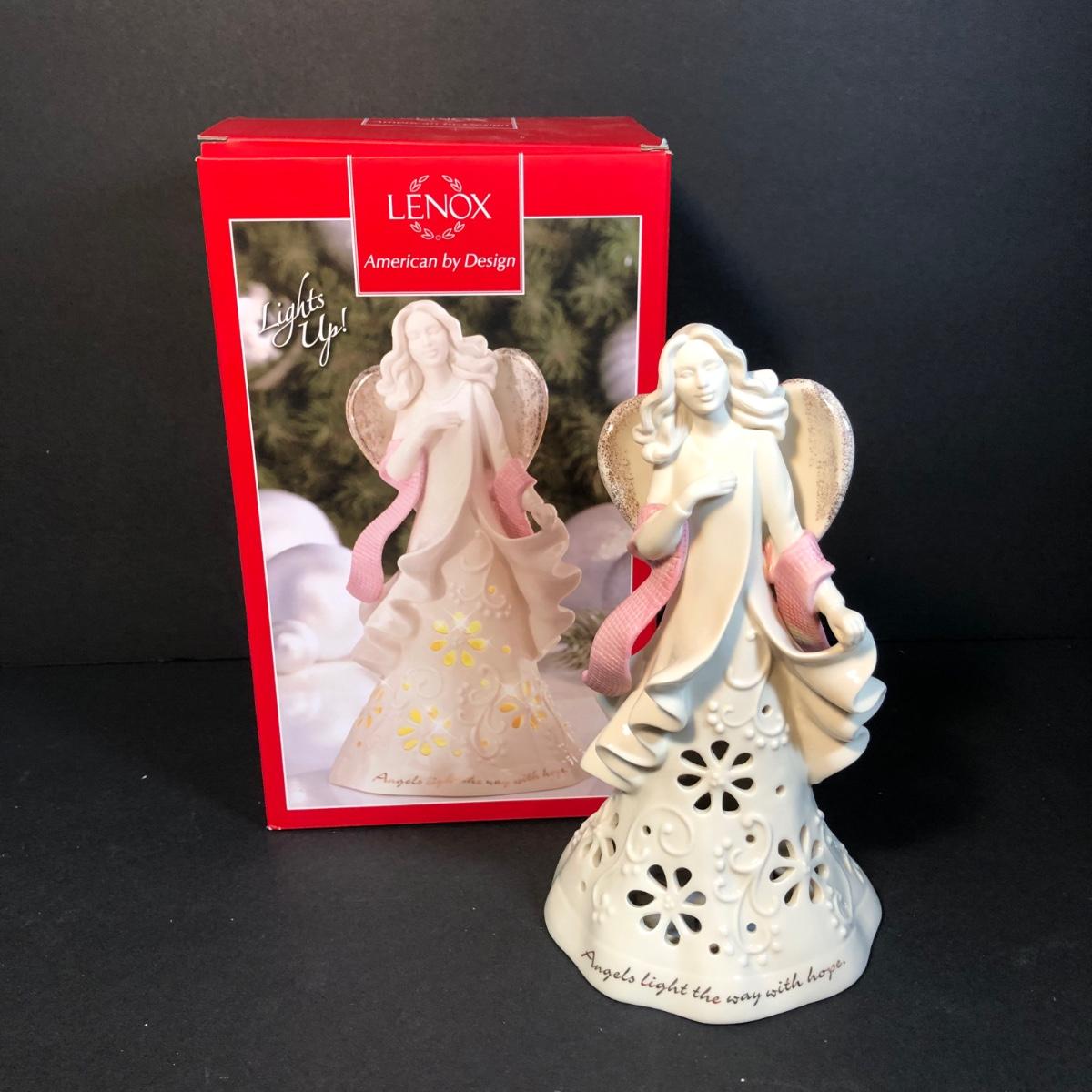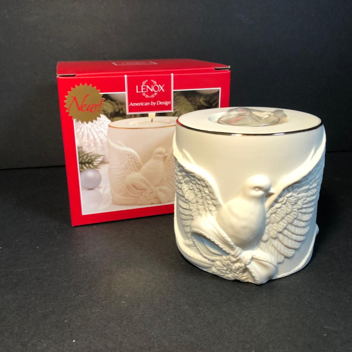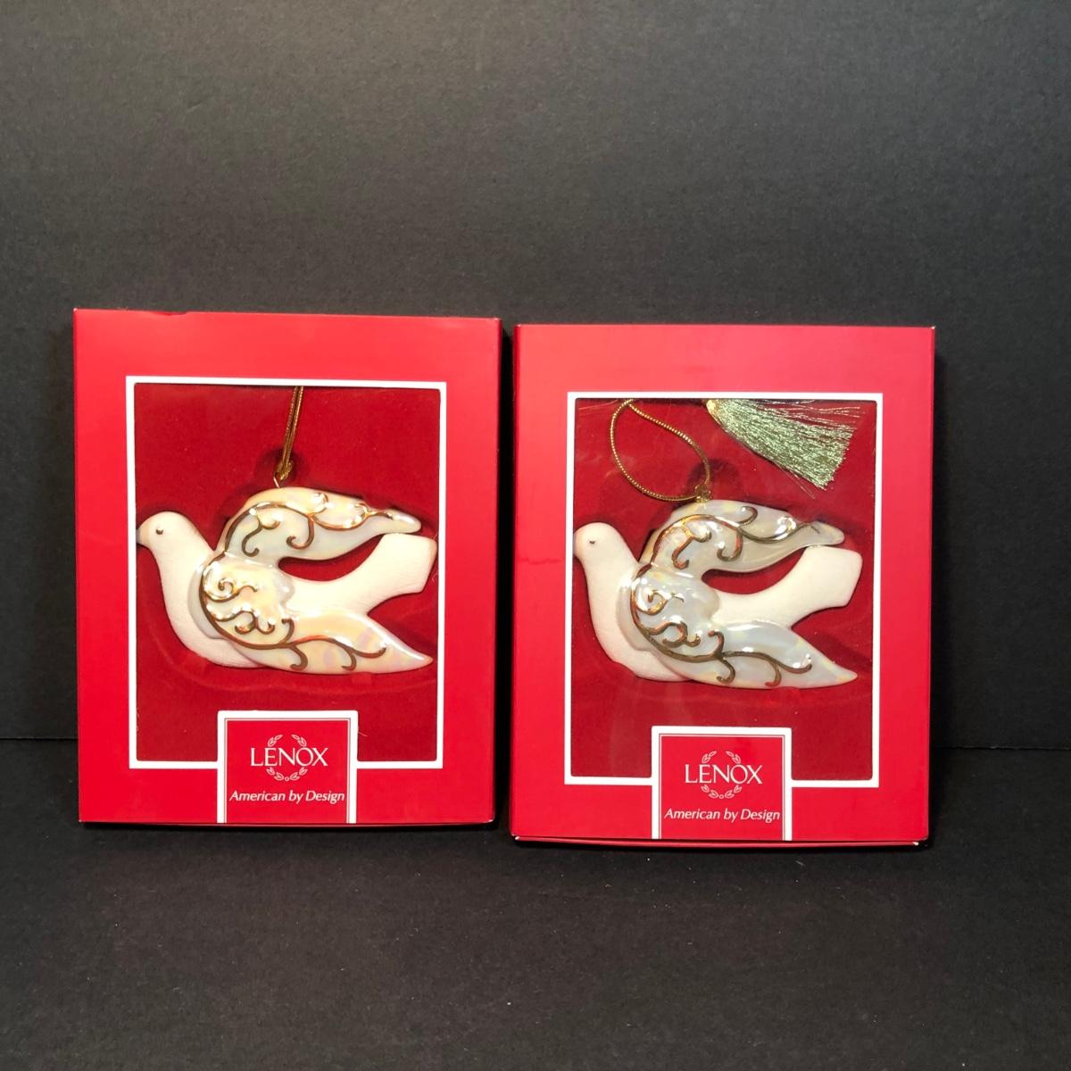 LOT 40M: Lenox Christmas in Boxes - Gifts of Grace Angels, Radiant Light Dove Votive, Doves of Light Ornaments (3 only) & Golden Scroll Dove Ornaments