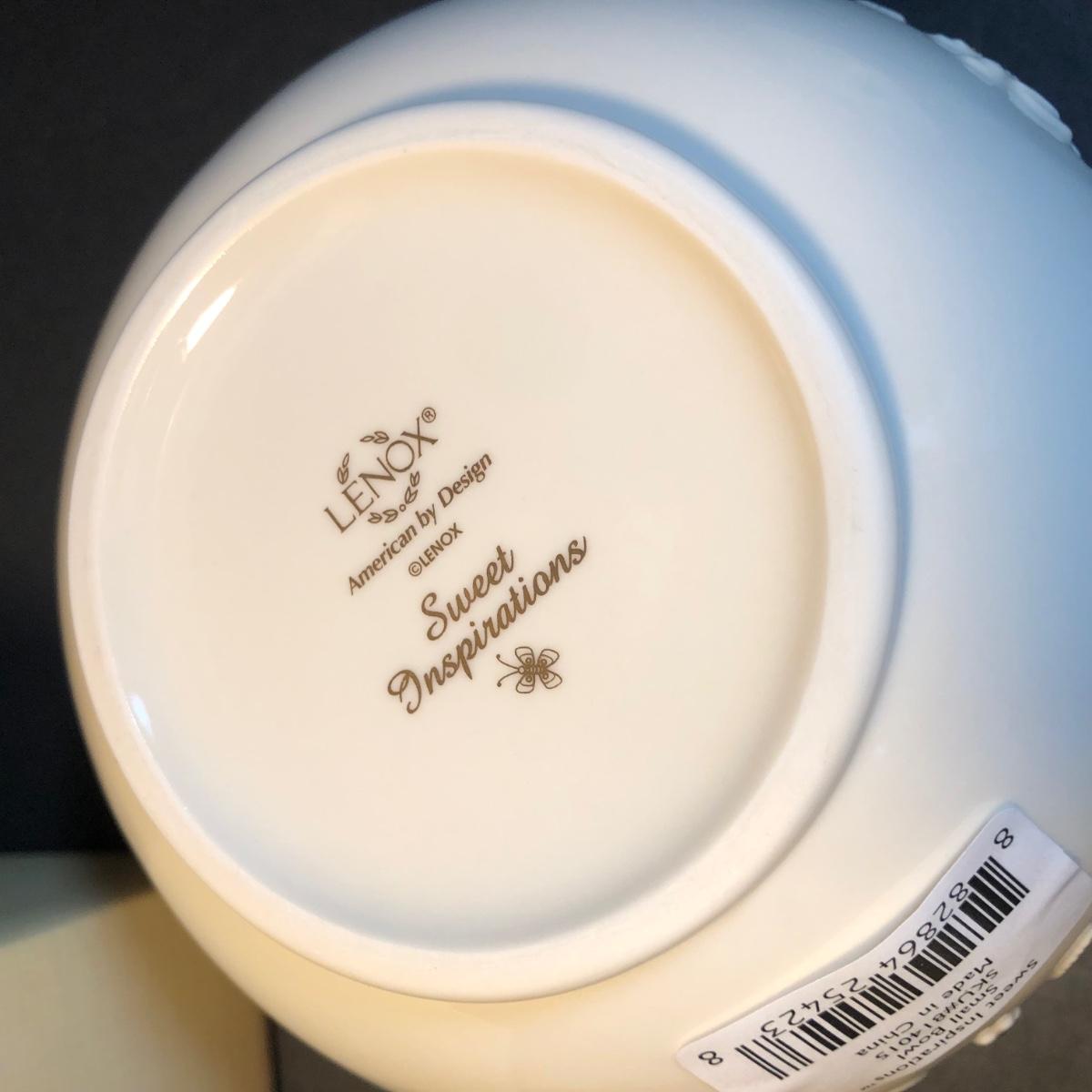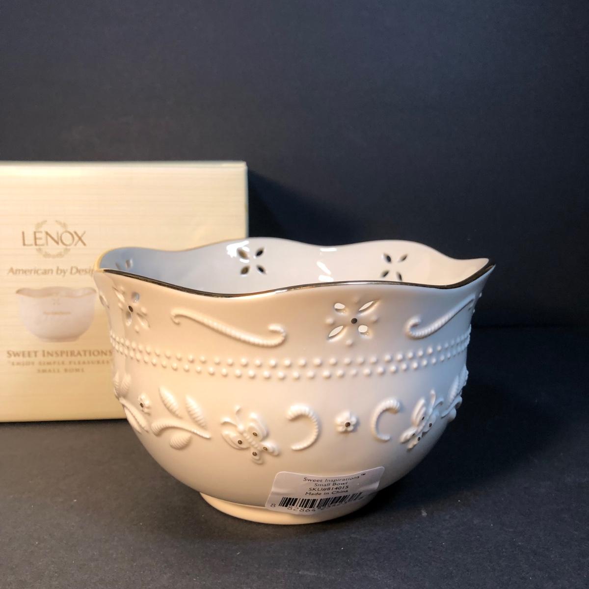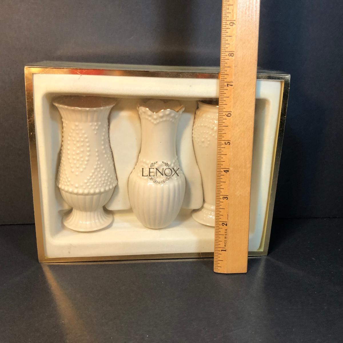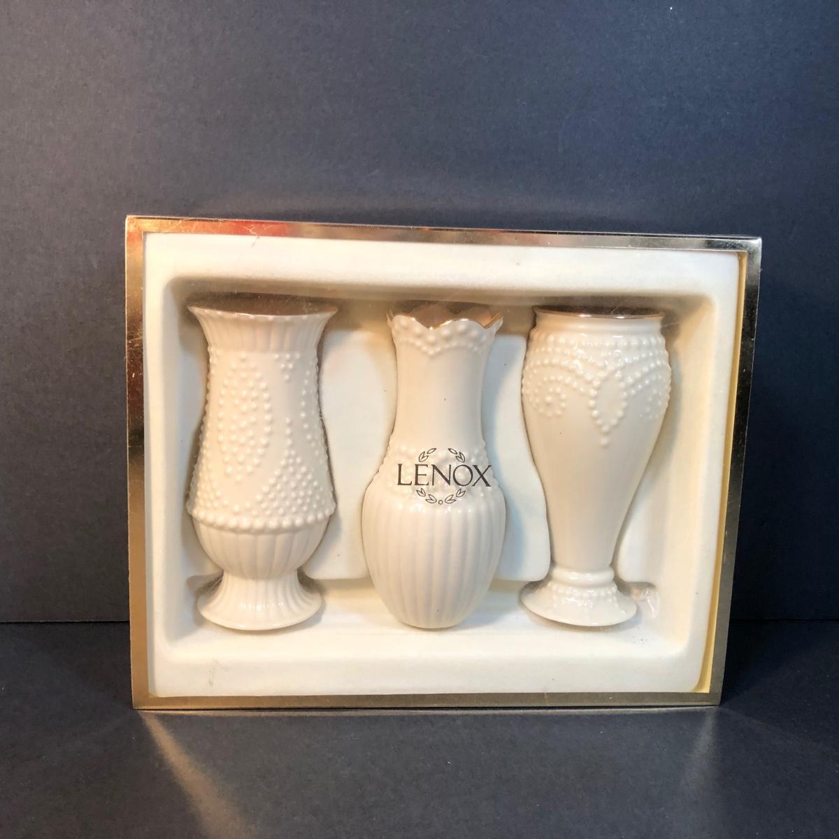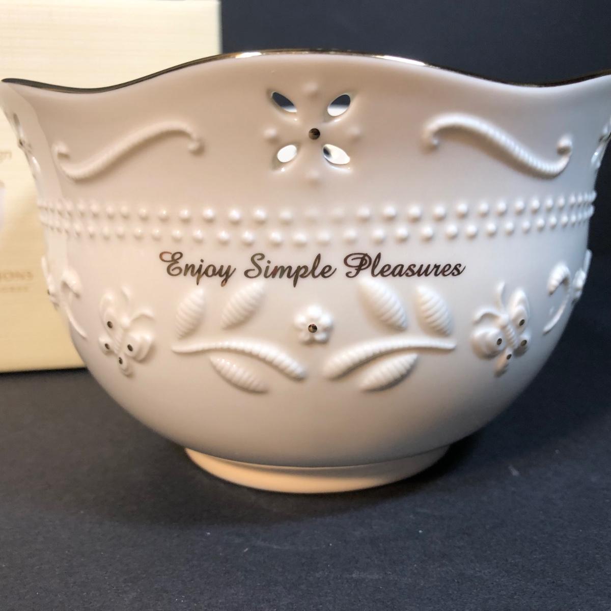 LOT 41M: Lenox in Package - Pierced Heart charm, Set of 3 Beaded Vases, Heart Pierced Vanity Dish, Sweet Inspirations "Enjoy Simple Pleasures" Small Bowl & Gifts of Grace Musical Angel Figurine