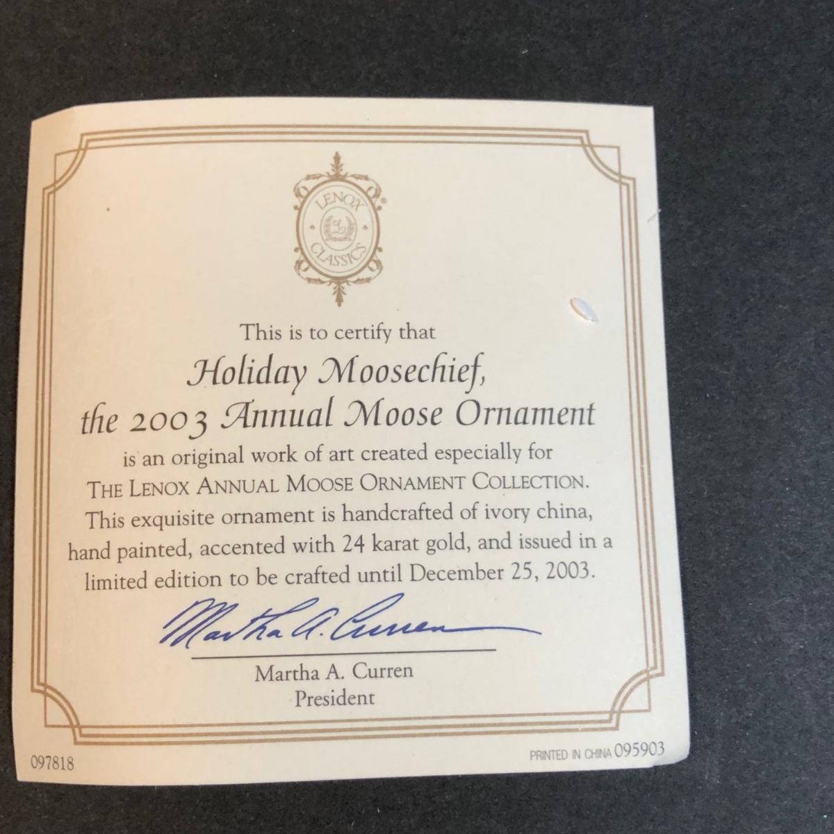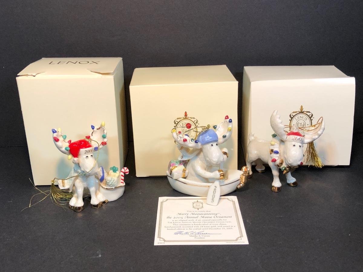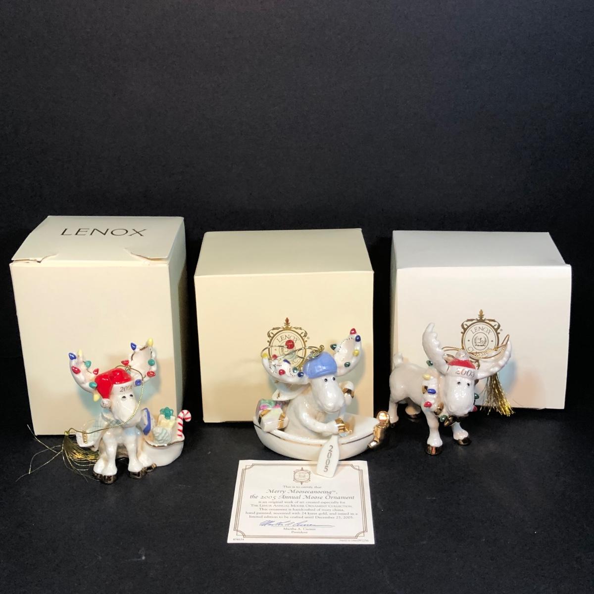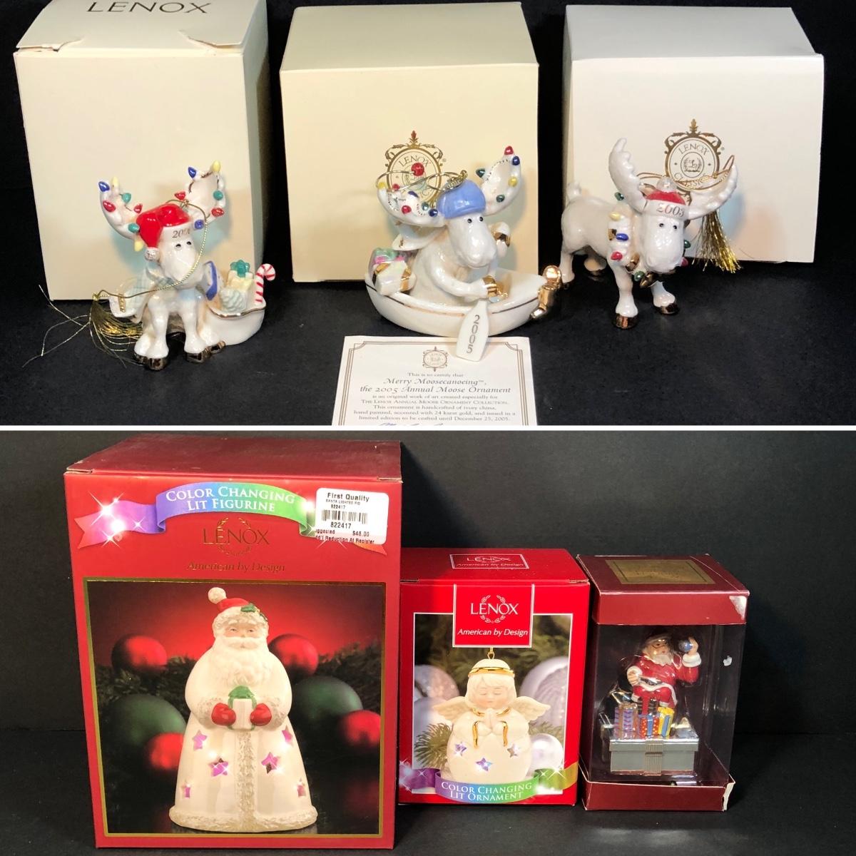 LOT 42M: Lenox Annual Moose Ornaments, Lenox Color Changing Figures & More