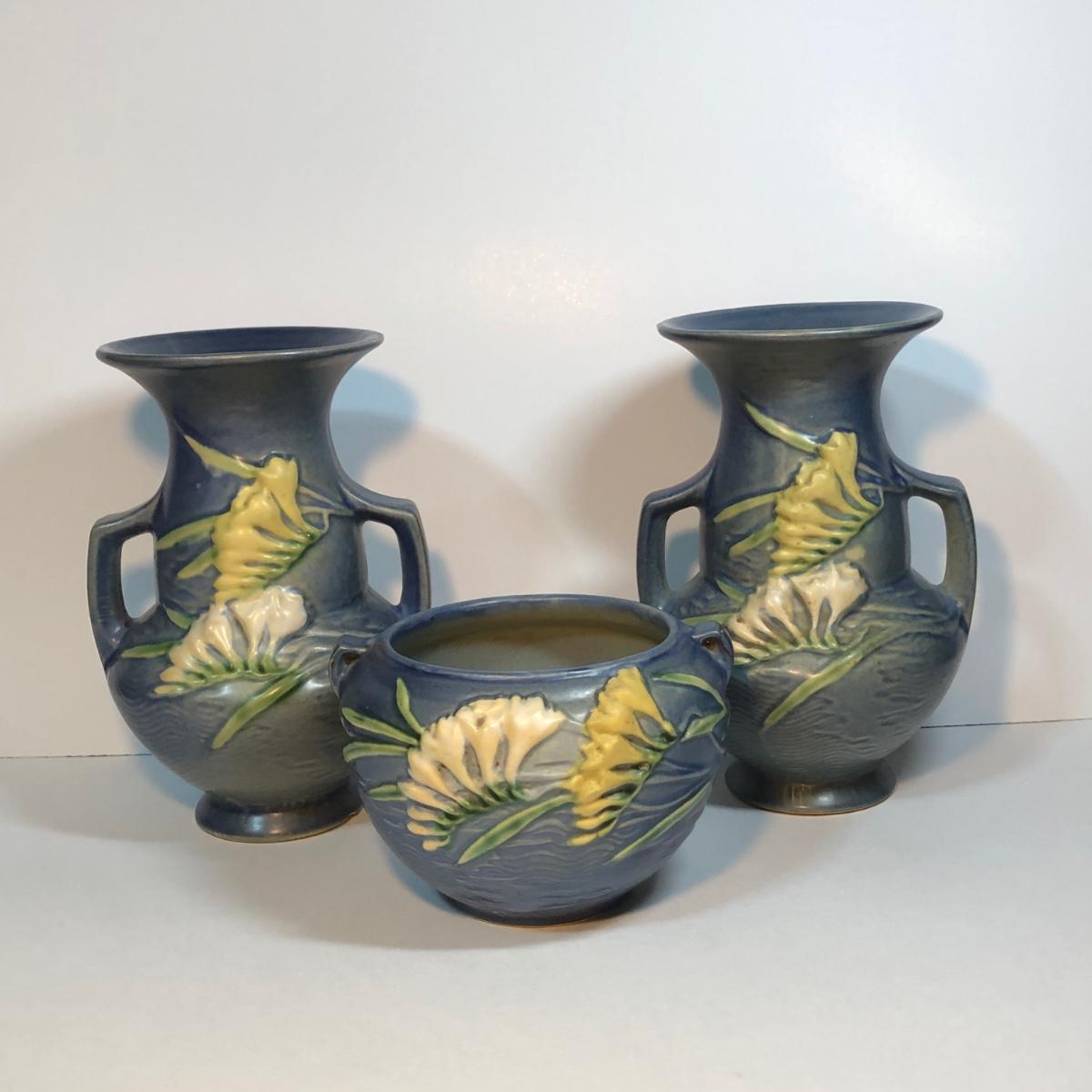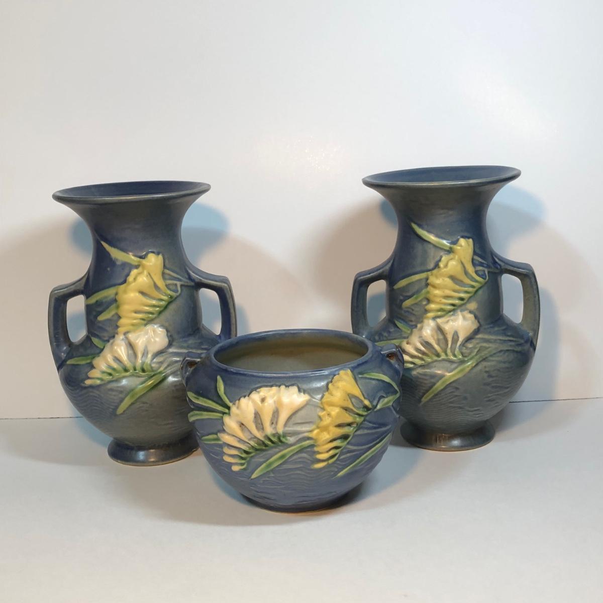 LOT 48M: Roseville Pottery Blue Freesia Set
