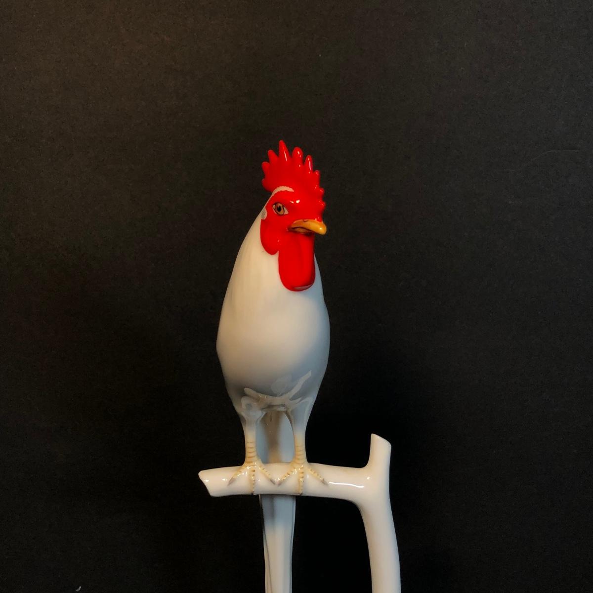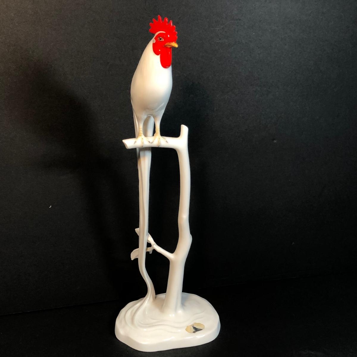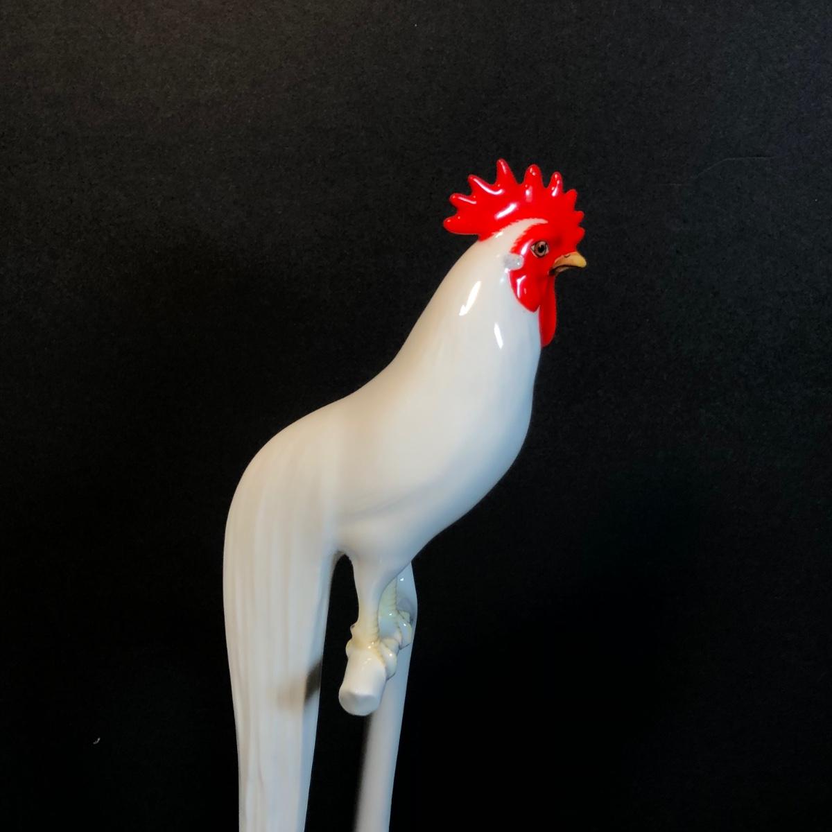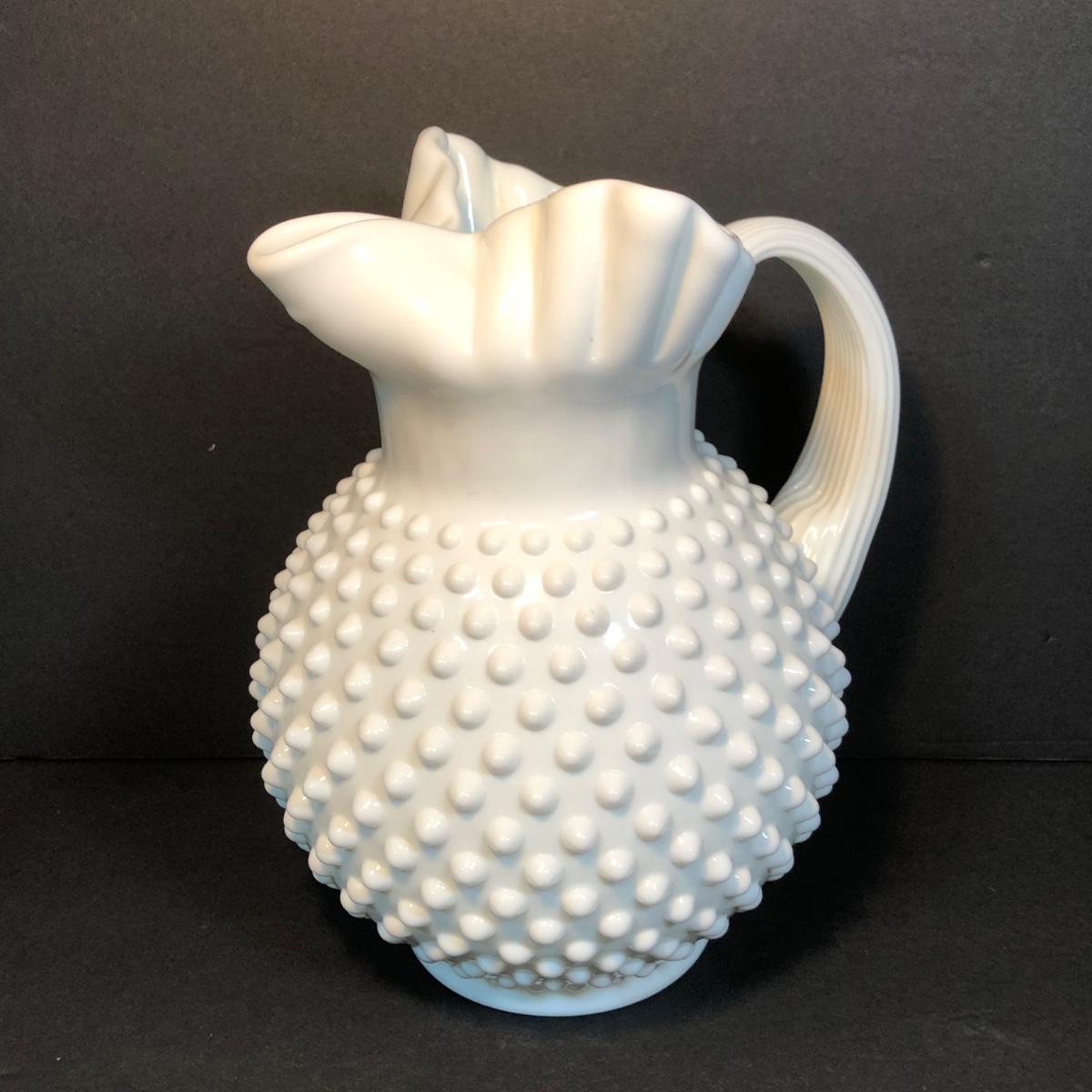 LOT 53M: Noritake Perched Rooster Sculpture, Fenton Vase & Milk Glass Pitcher