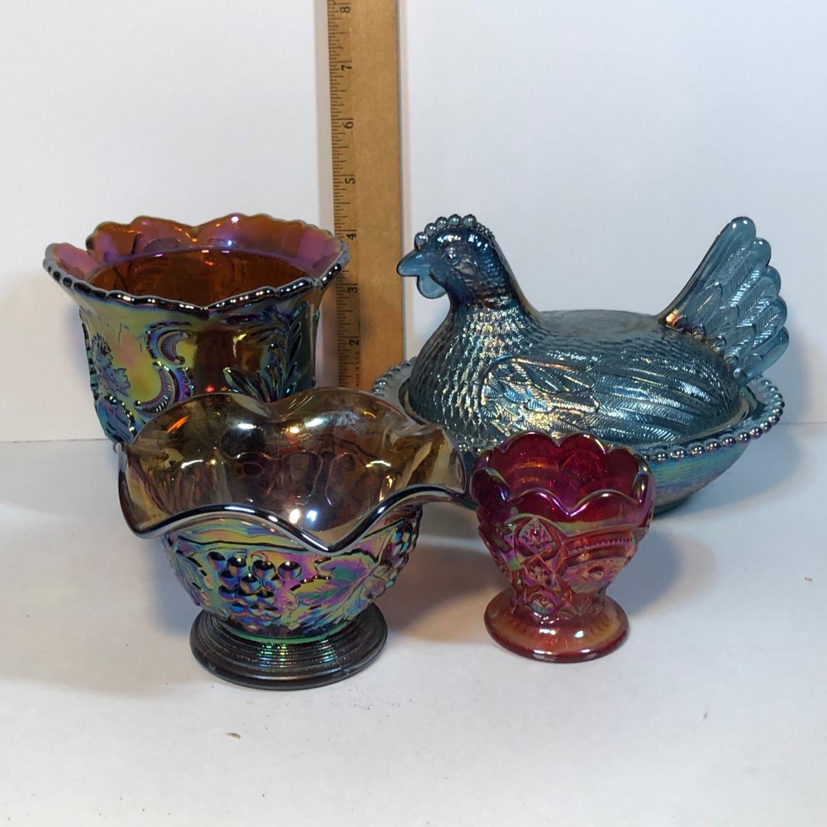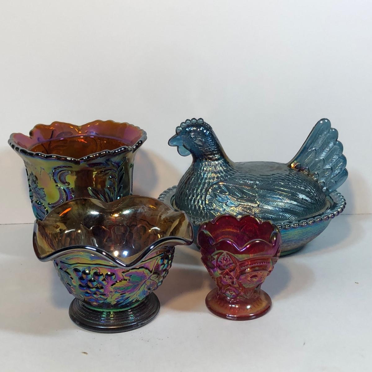 LOT 62M: Carnival Glass - Imperial, Hen on a Nest & More