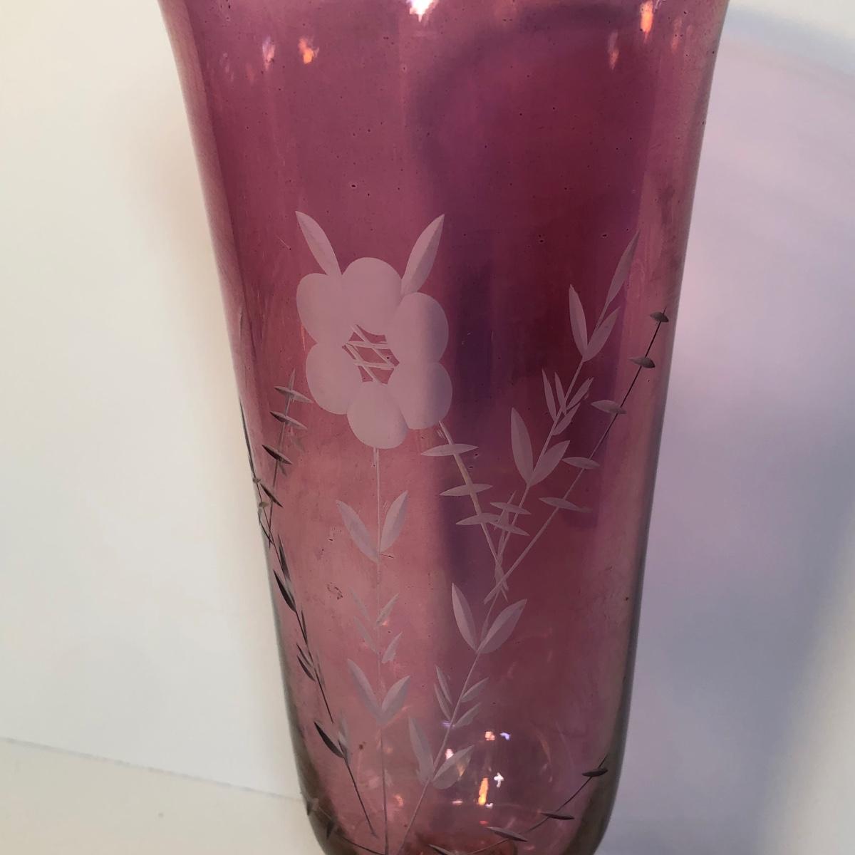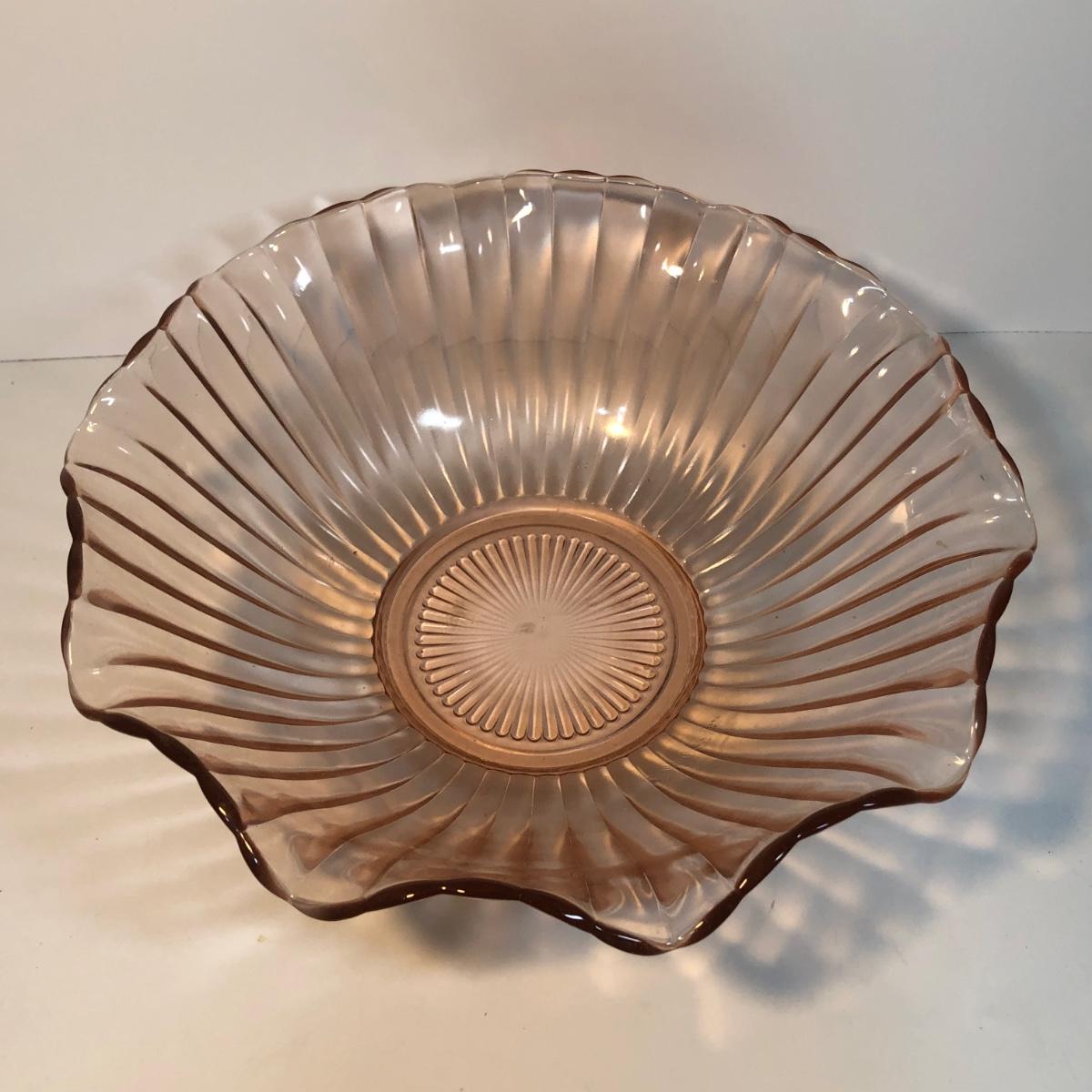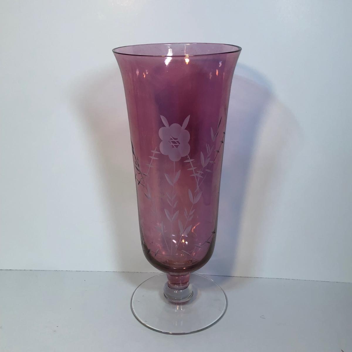 LOT 64M: Pink Depression Glass, Etched Cranberry Vase, Imperial Glass Co Bell & More