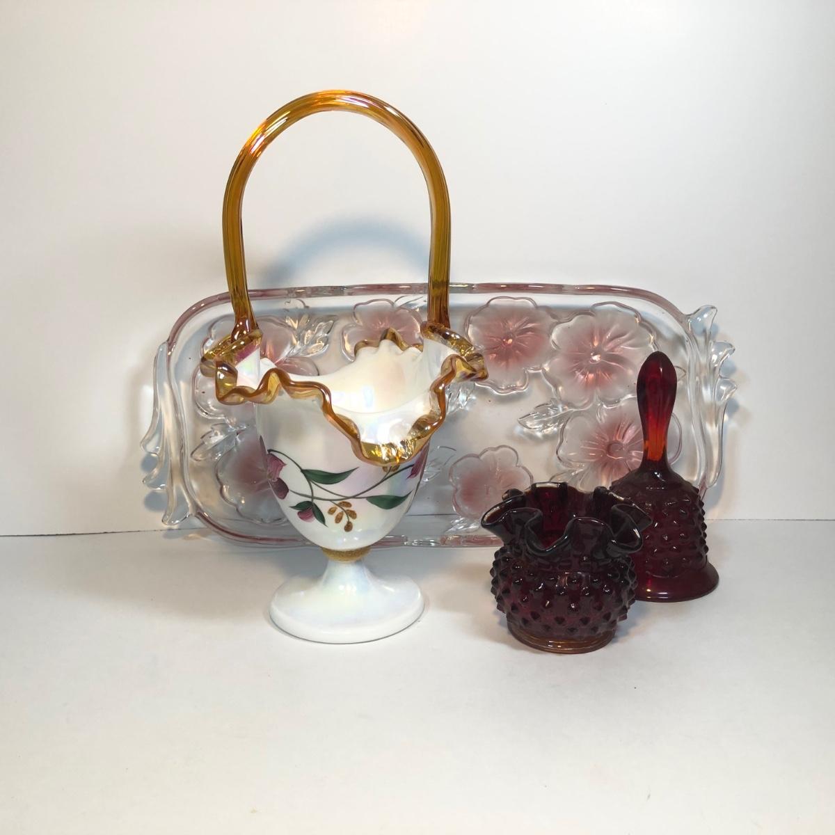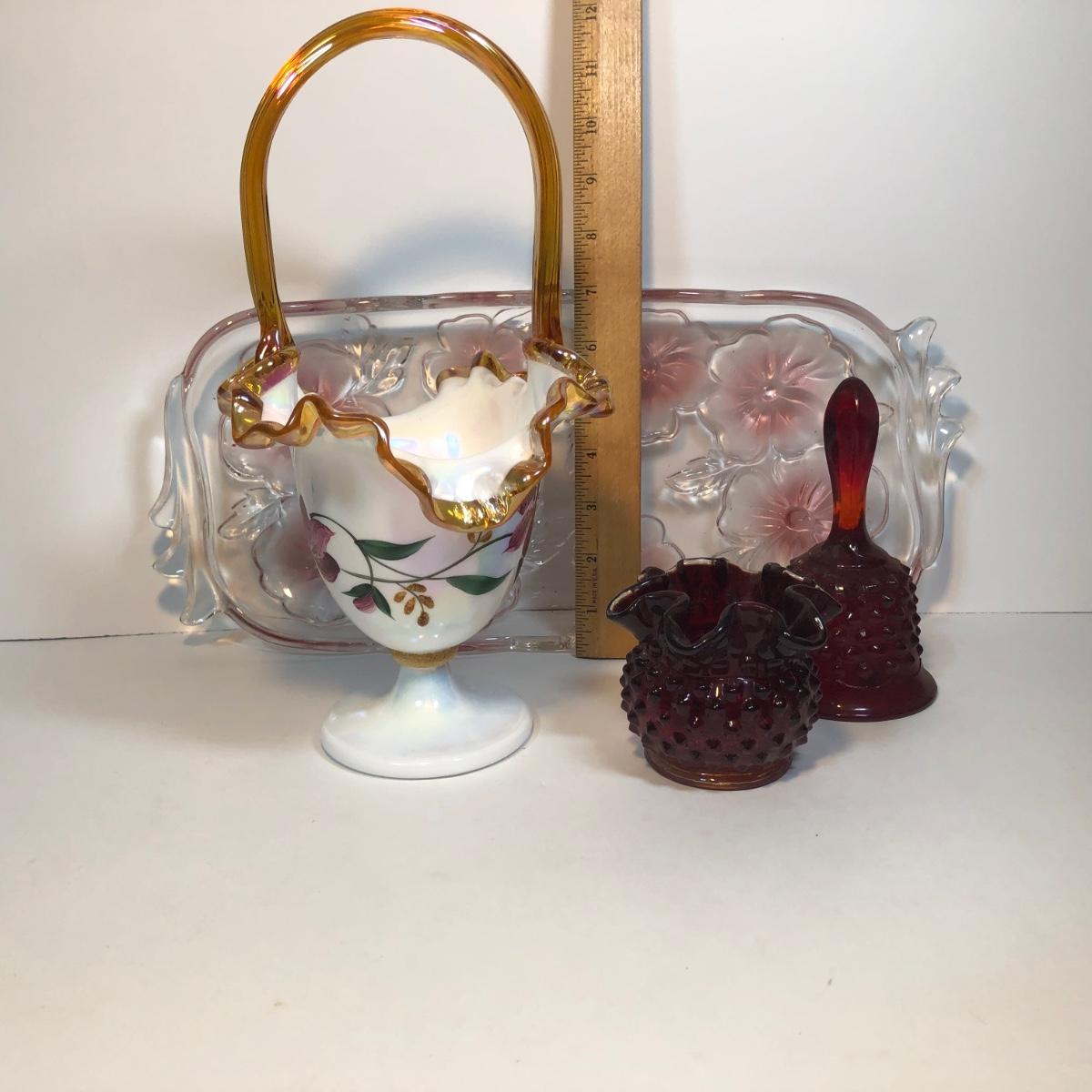 LOT 81M: Fenton 12" Basket, Ruby Red Fenton Glass & More