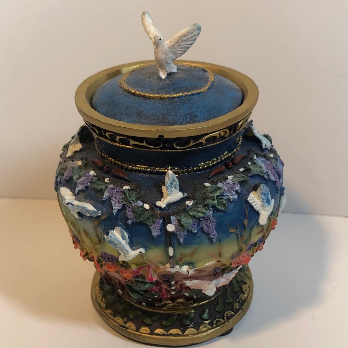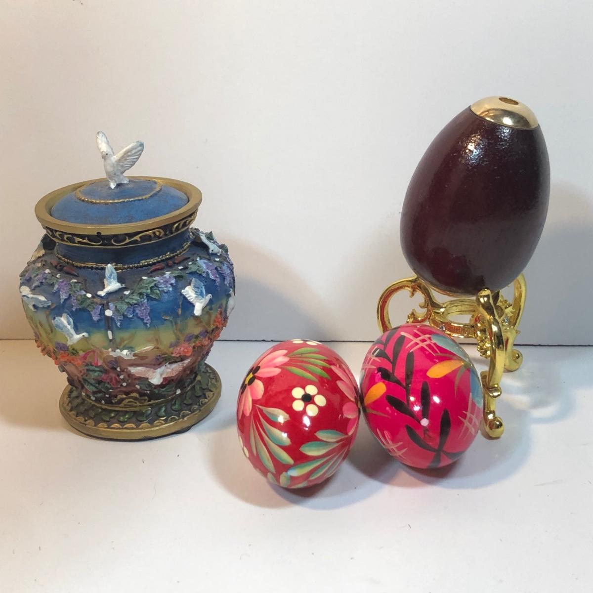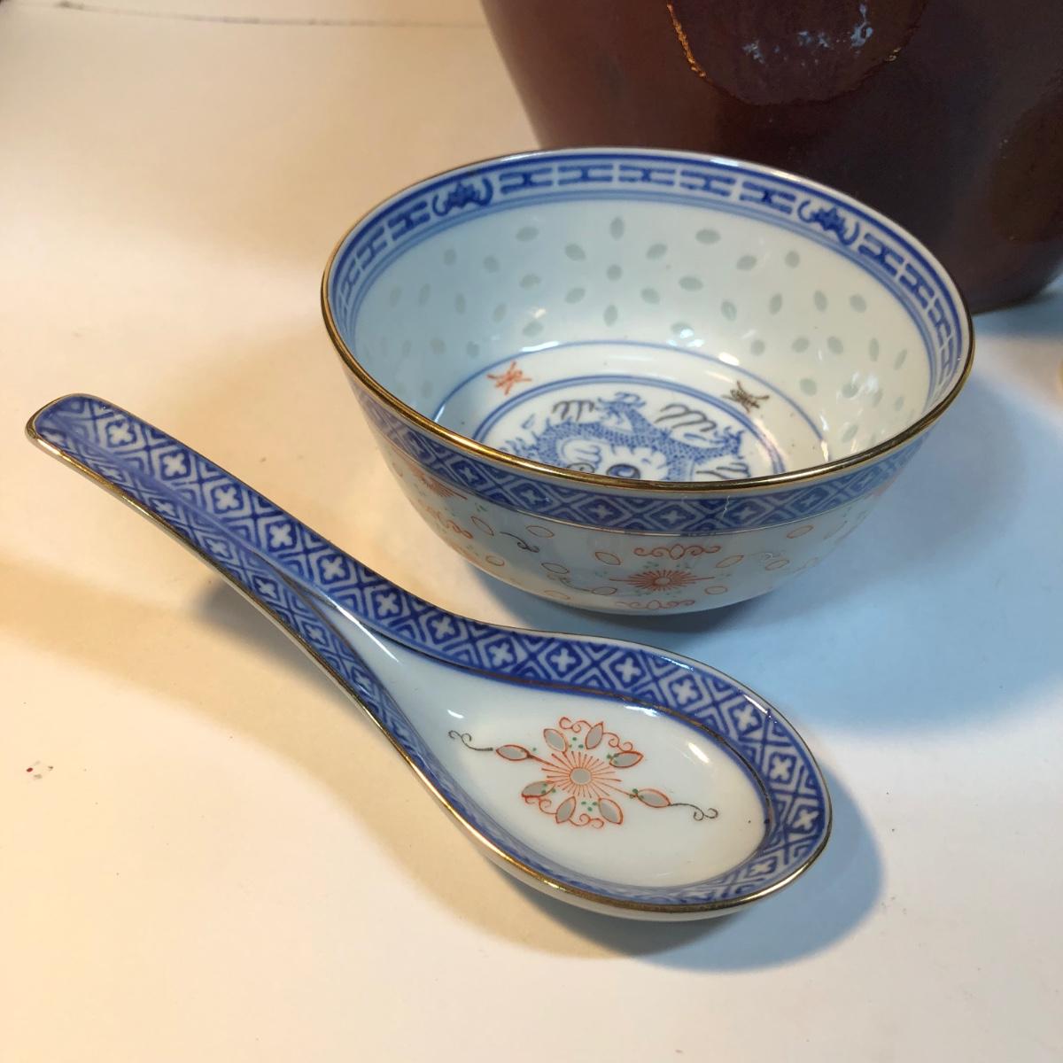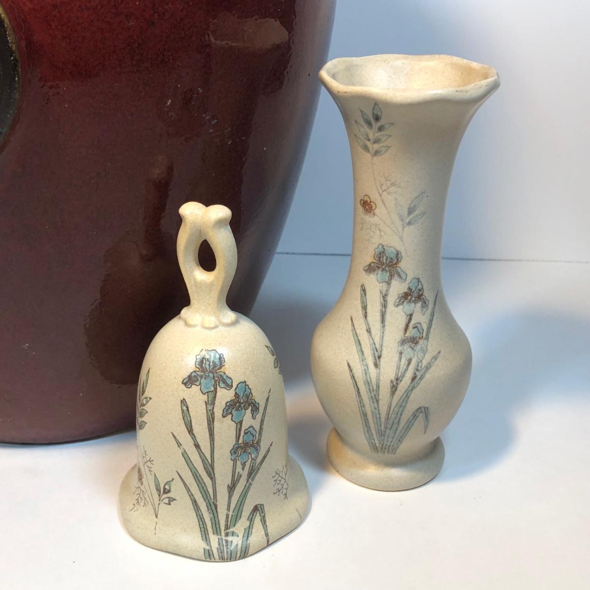LOT 82M: Large Pottery Jar w/ Handles, Bowl & Matching Spoon Made in China, Kaleidoscope Egg, Bells & More