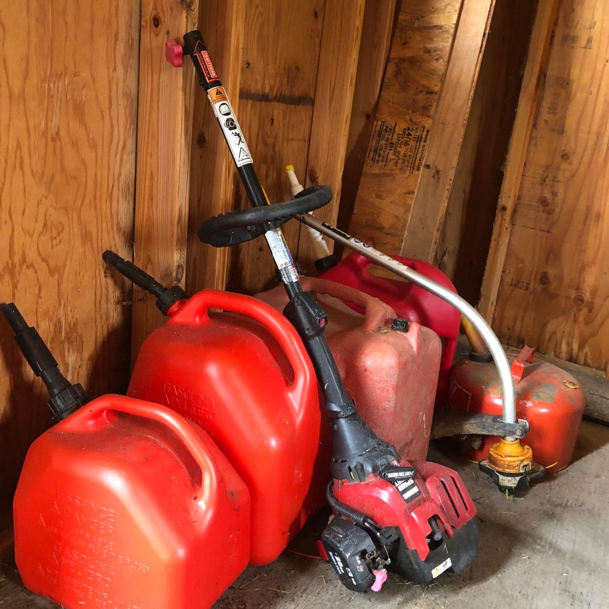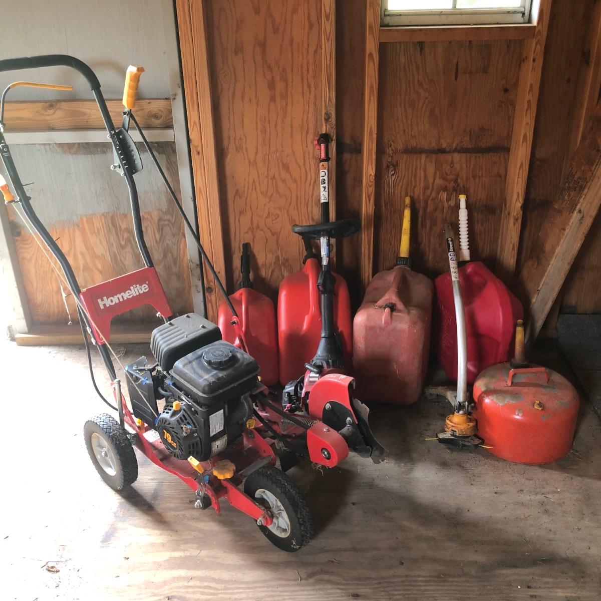 LOT 100M: Homelite 9" Blade 79cc, Craftsman Speed Start Trimmer, Gas Cans & More