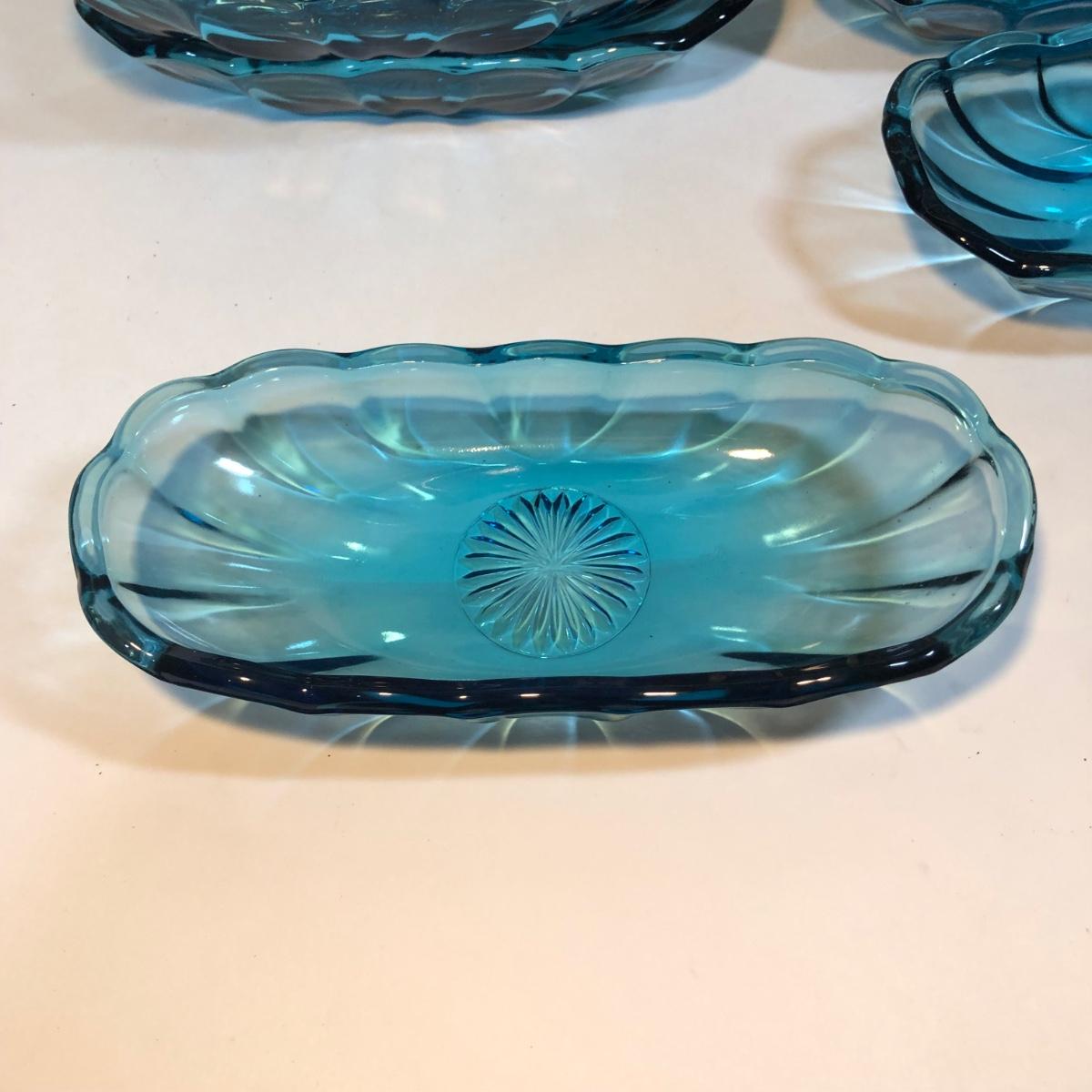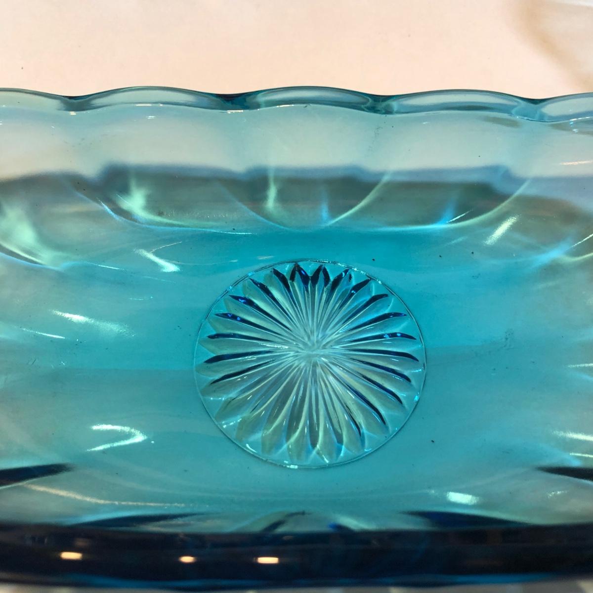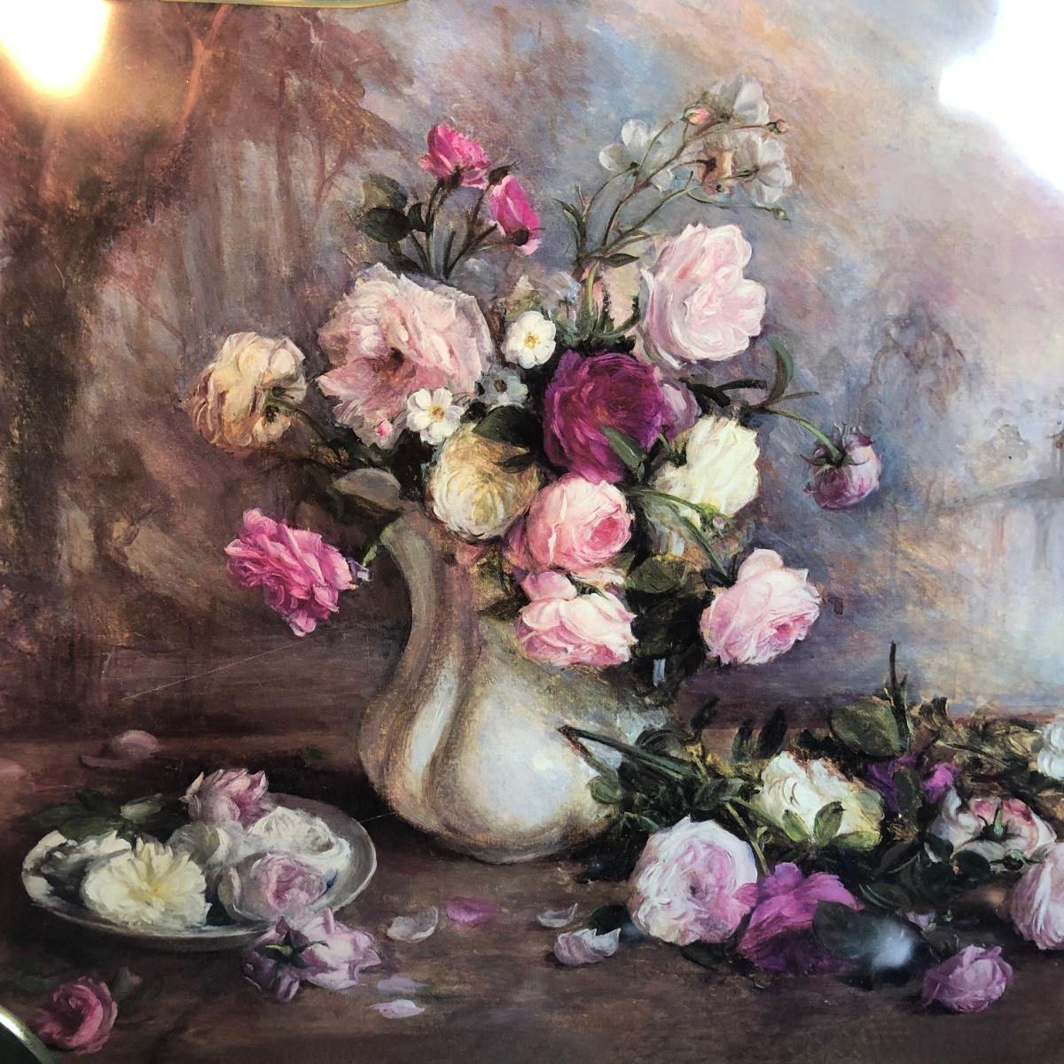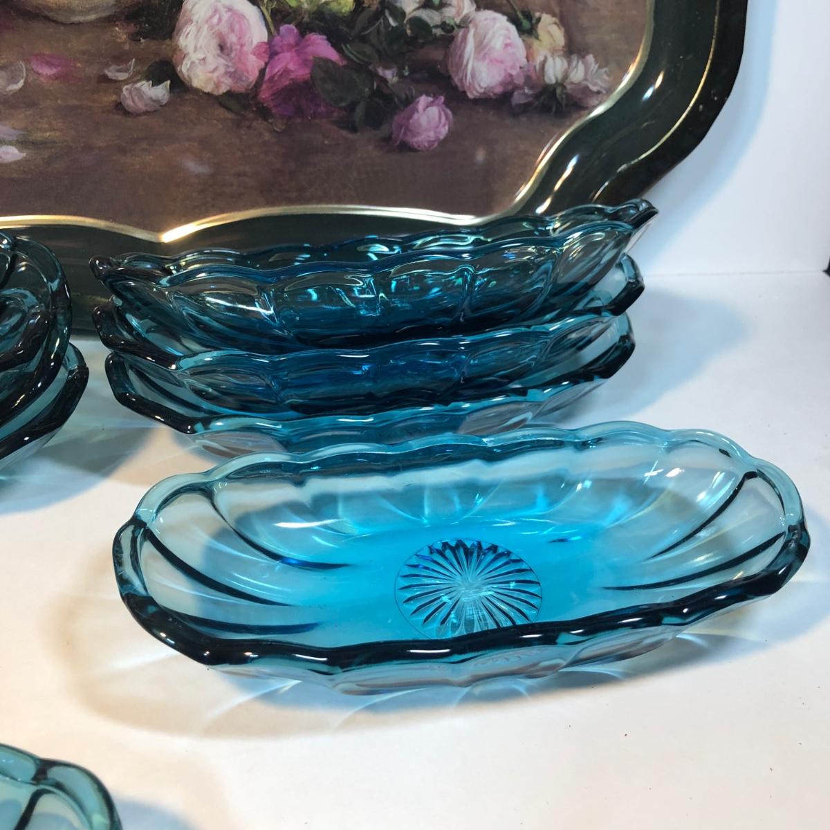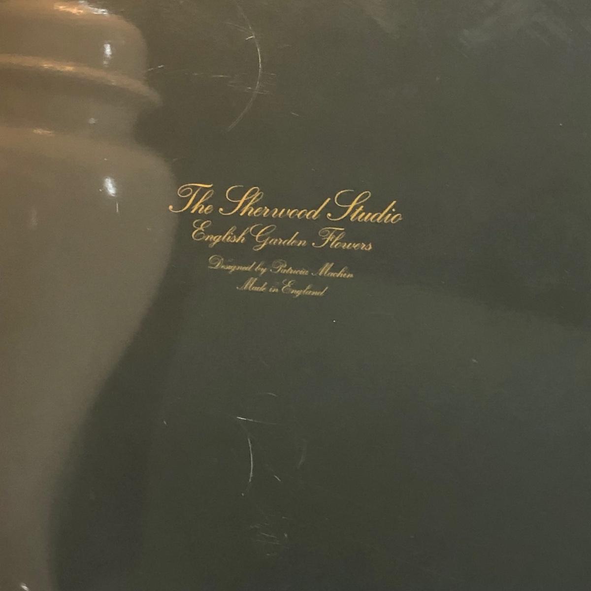 LOT 111M: The Sherwood Studio English Garden Flowers Tray w/ Blue Glass Dishes