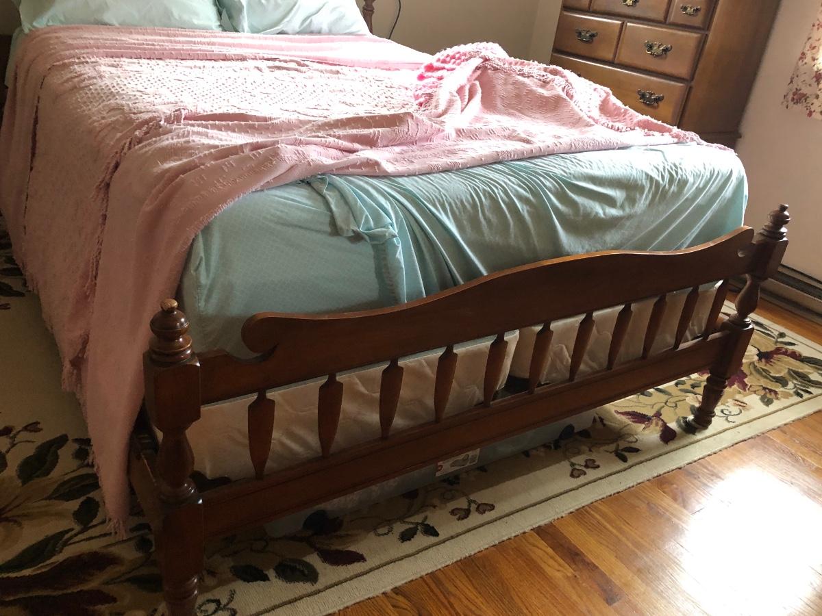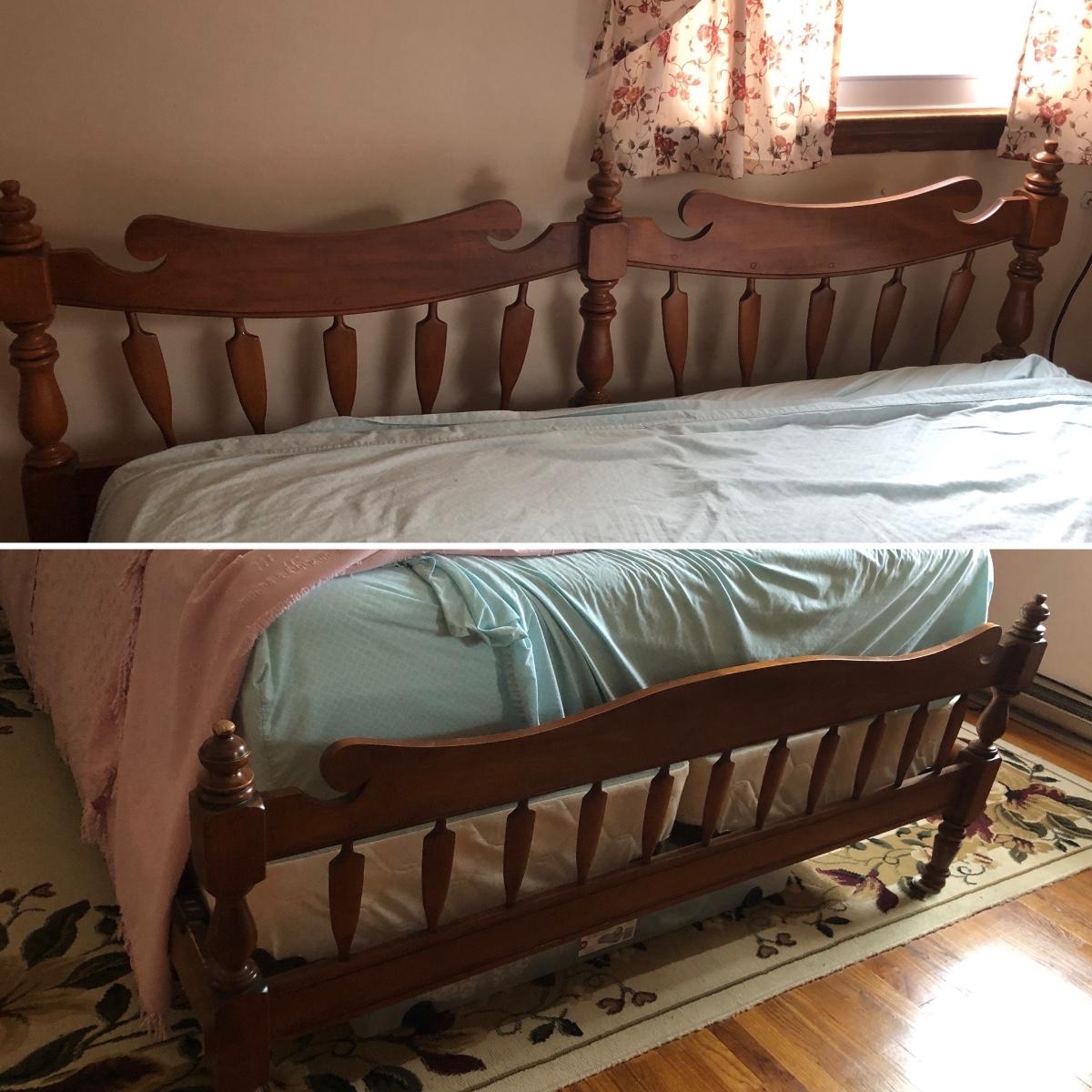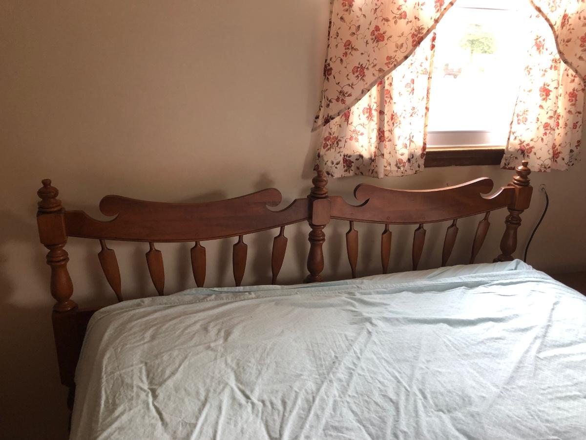 Located on 2nd floor of home. Must bring tools to disassemble bed. Headboard measures 63W x 44.5H.