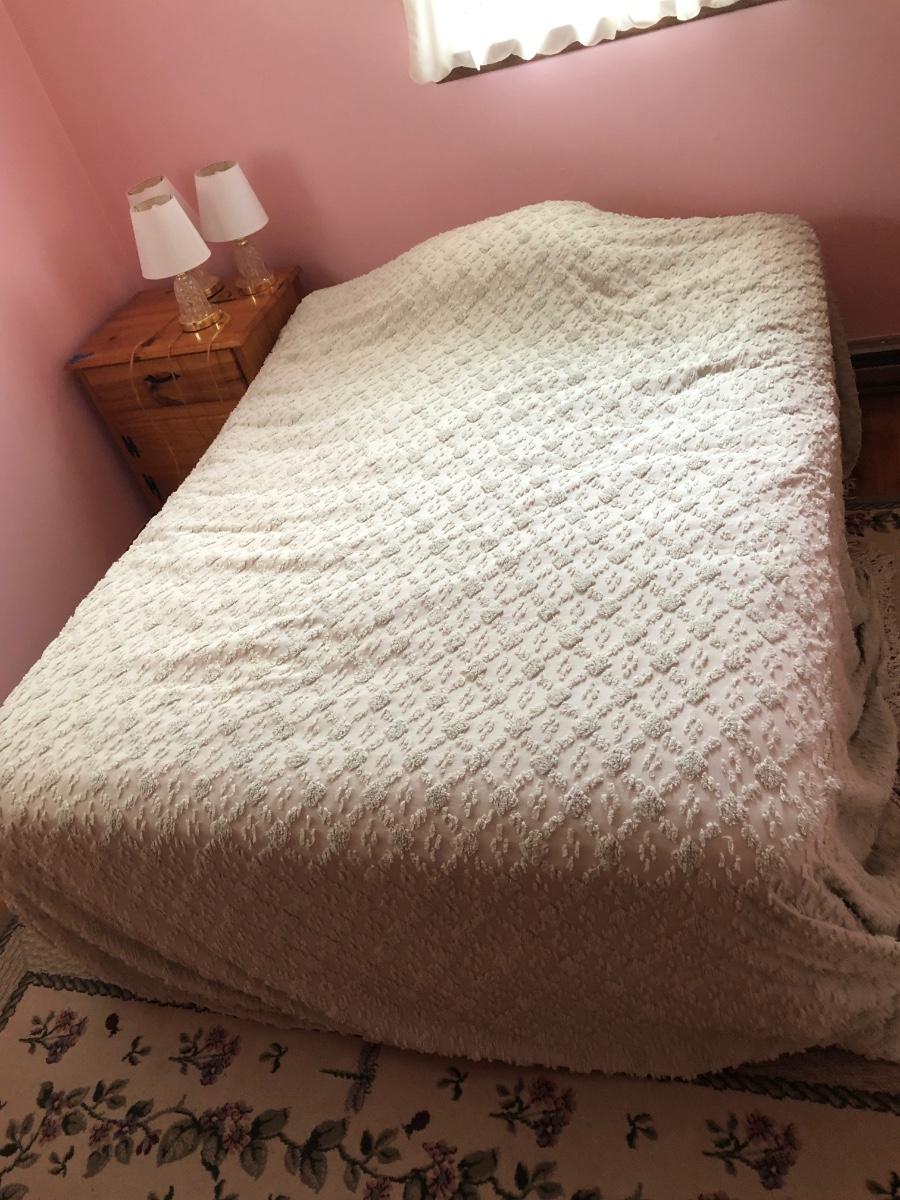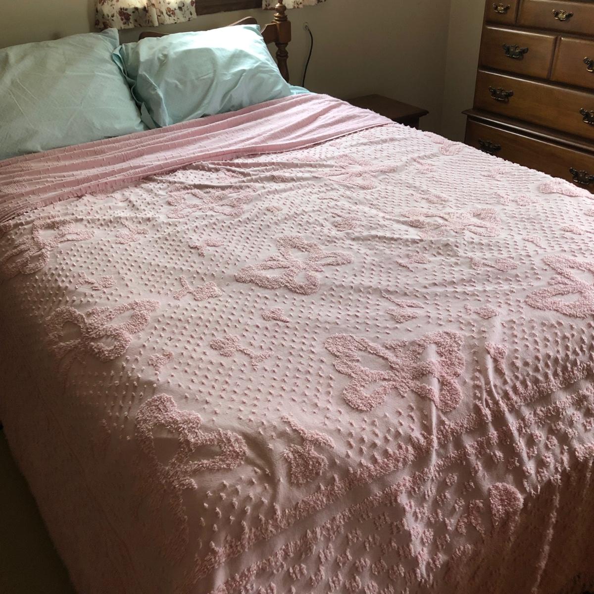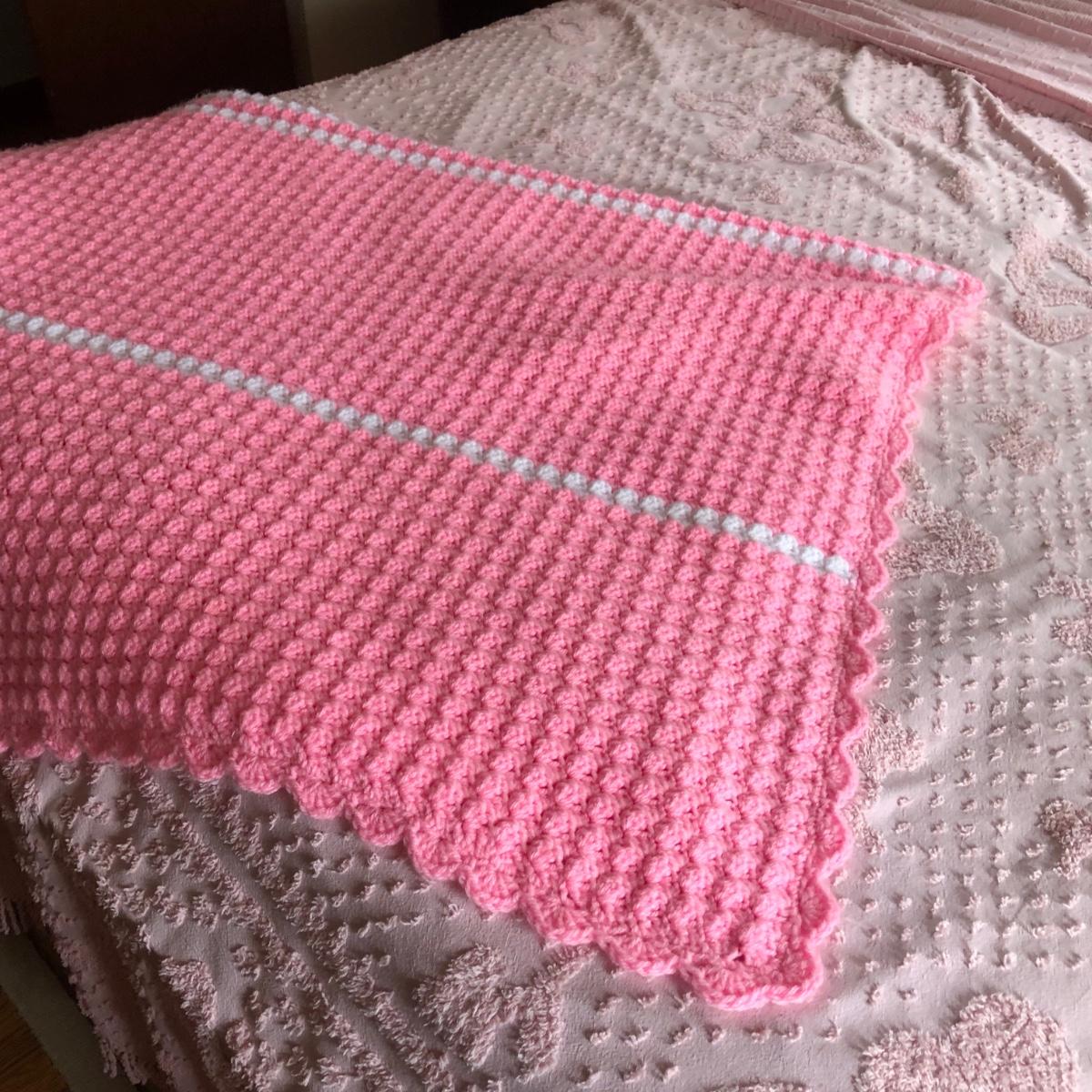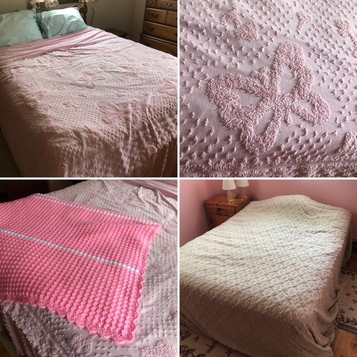 LOT 117M: Pink Butterfly Bedspread, Cream Bedspread & Crochet Pink Throw
