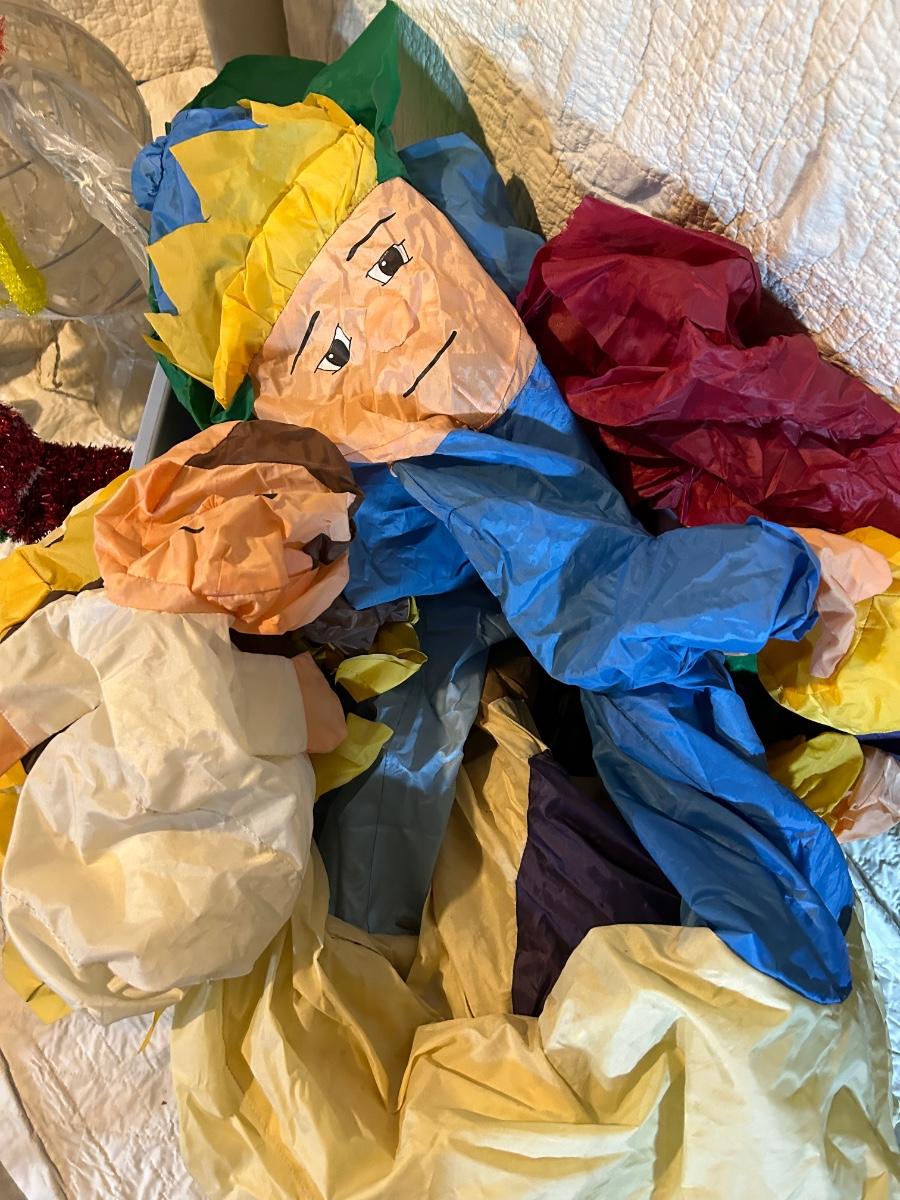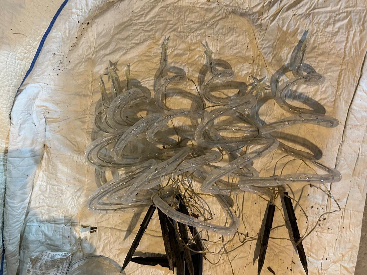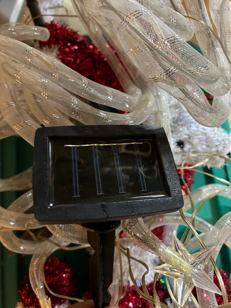 Blow up nativity scene, untested. Frosty The Snowman outdoor lawn decoration. Solar light up trees.