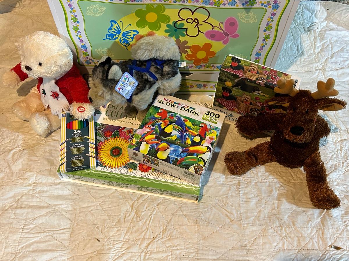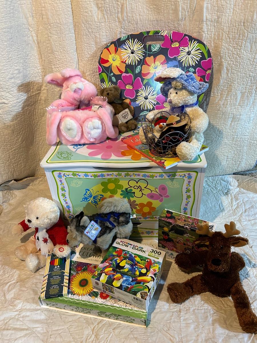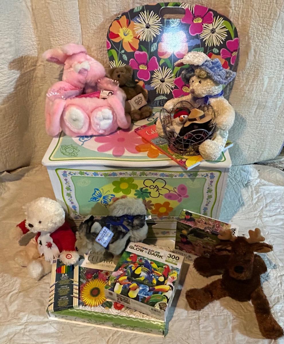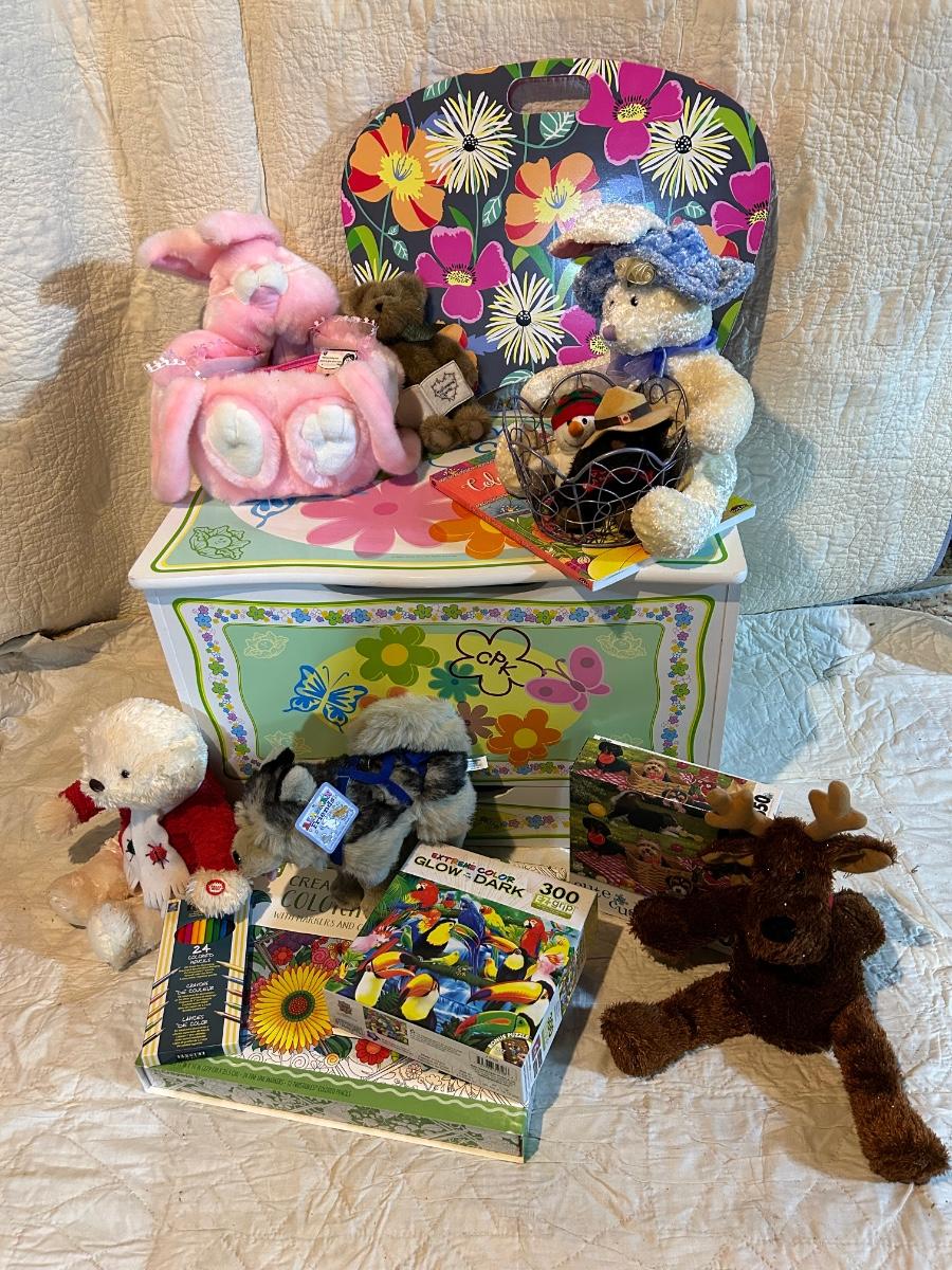 CPK Toy box 15"x23", plush animals, puzzles and more.