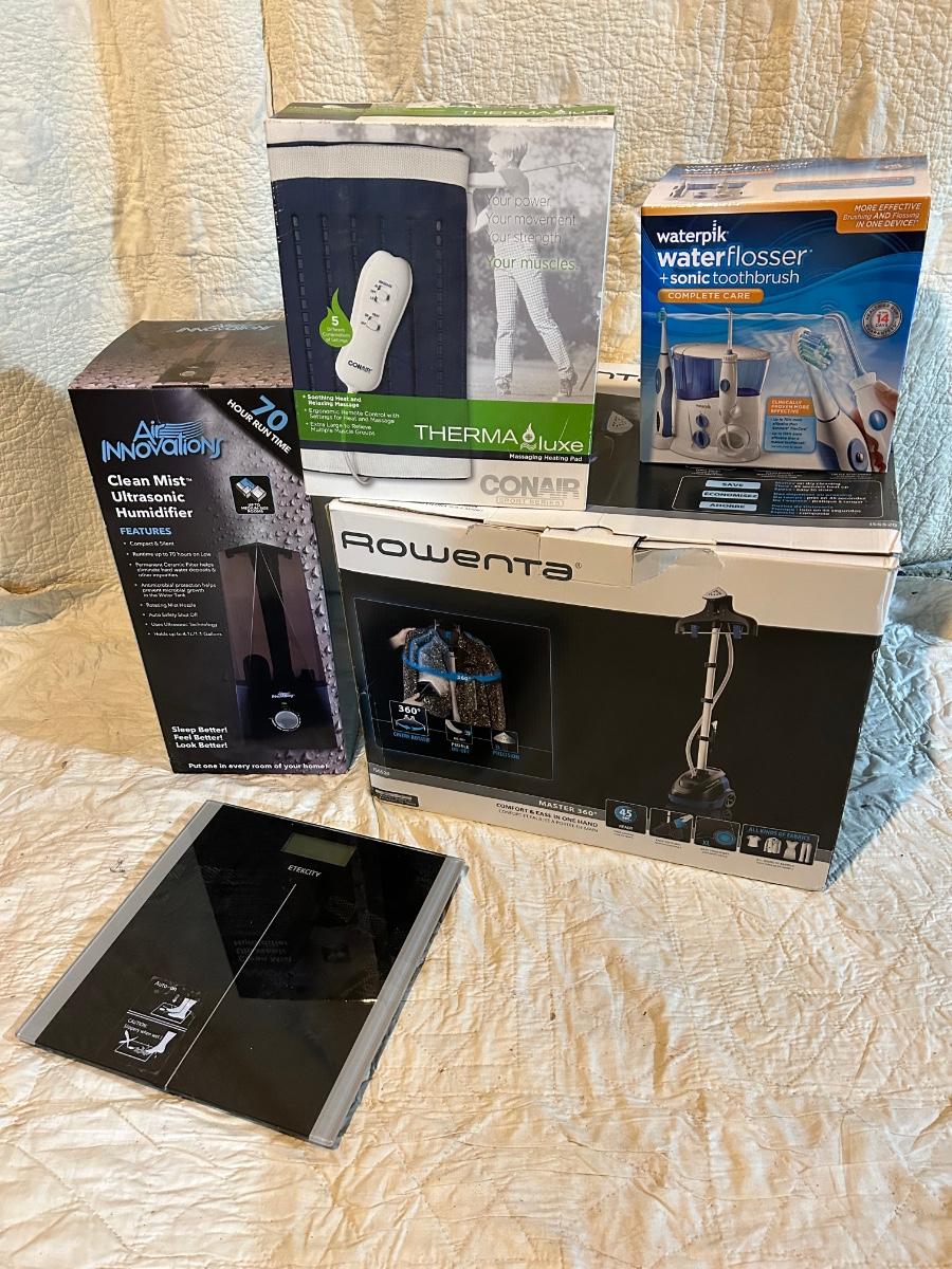 Water Floss, Steamer, Heating Pad, Humidifier and Scale.