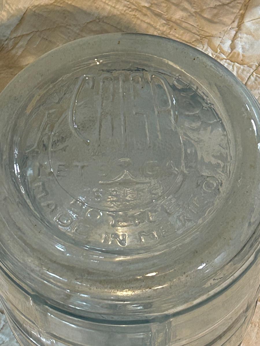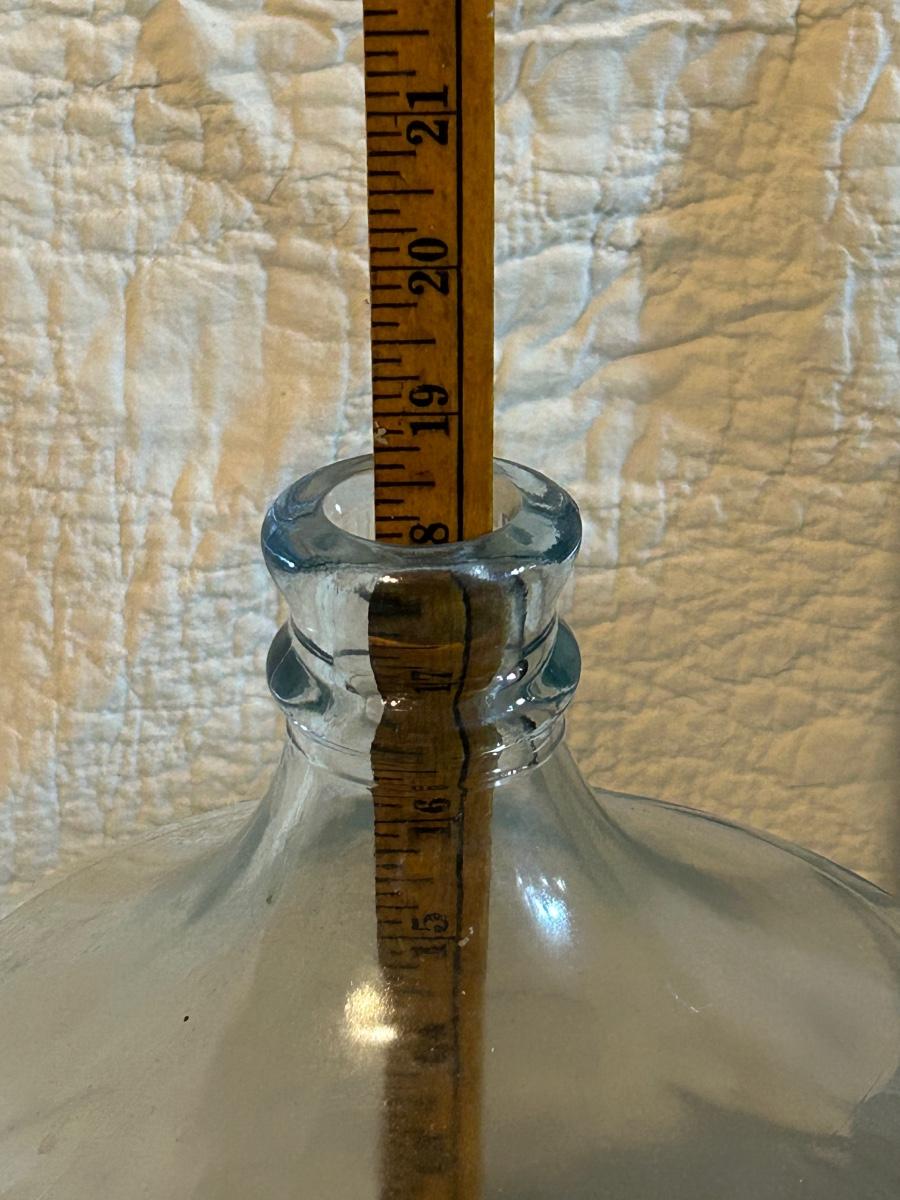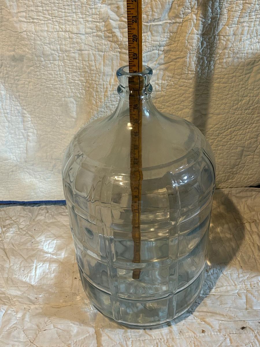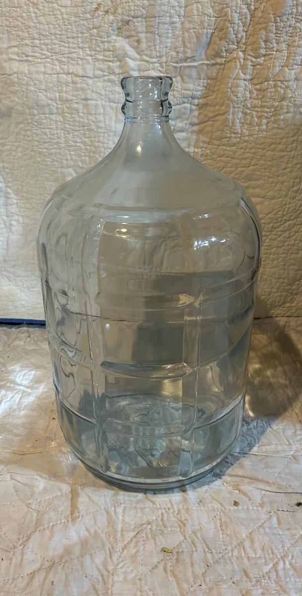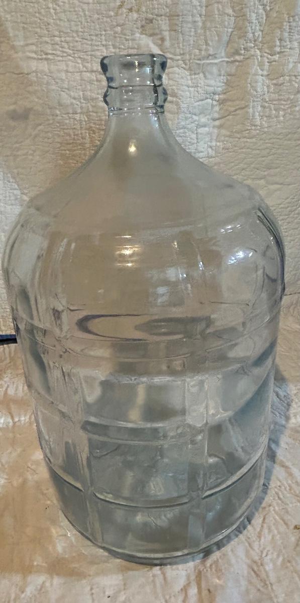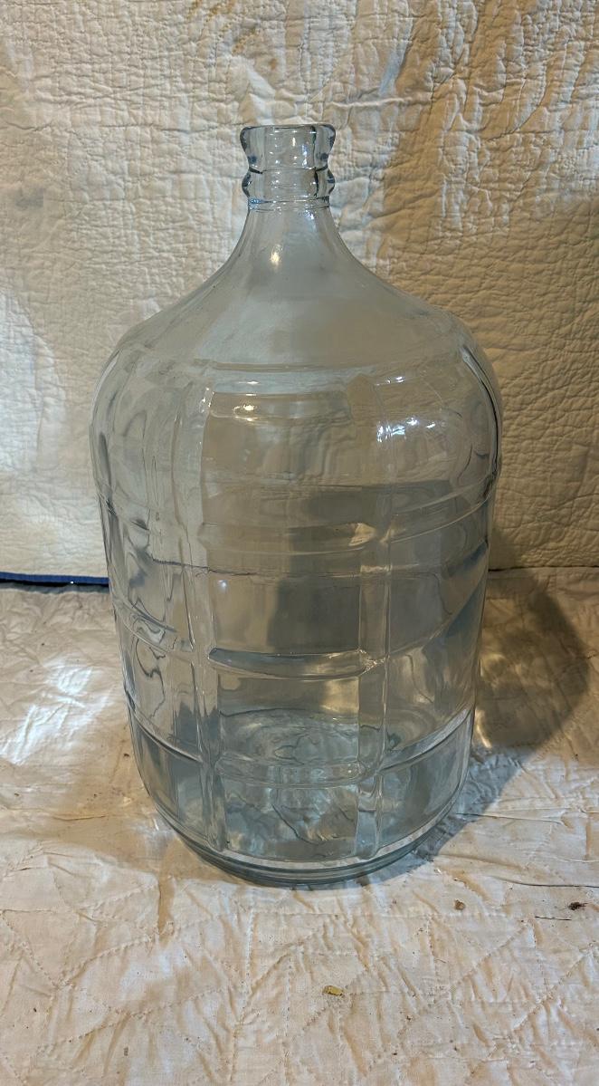 Large glass water jug.