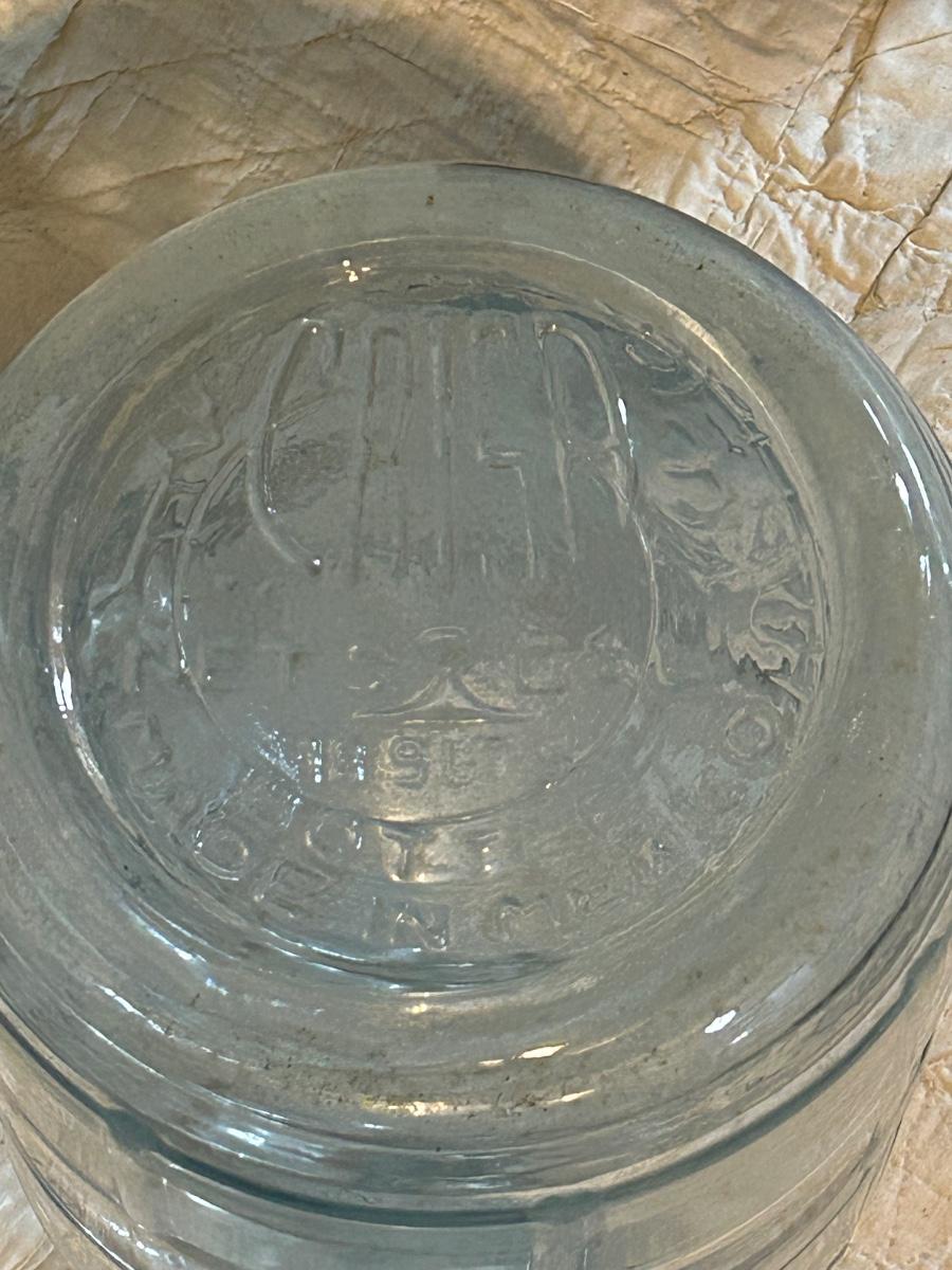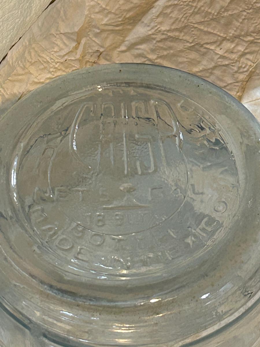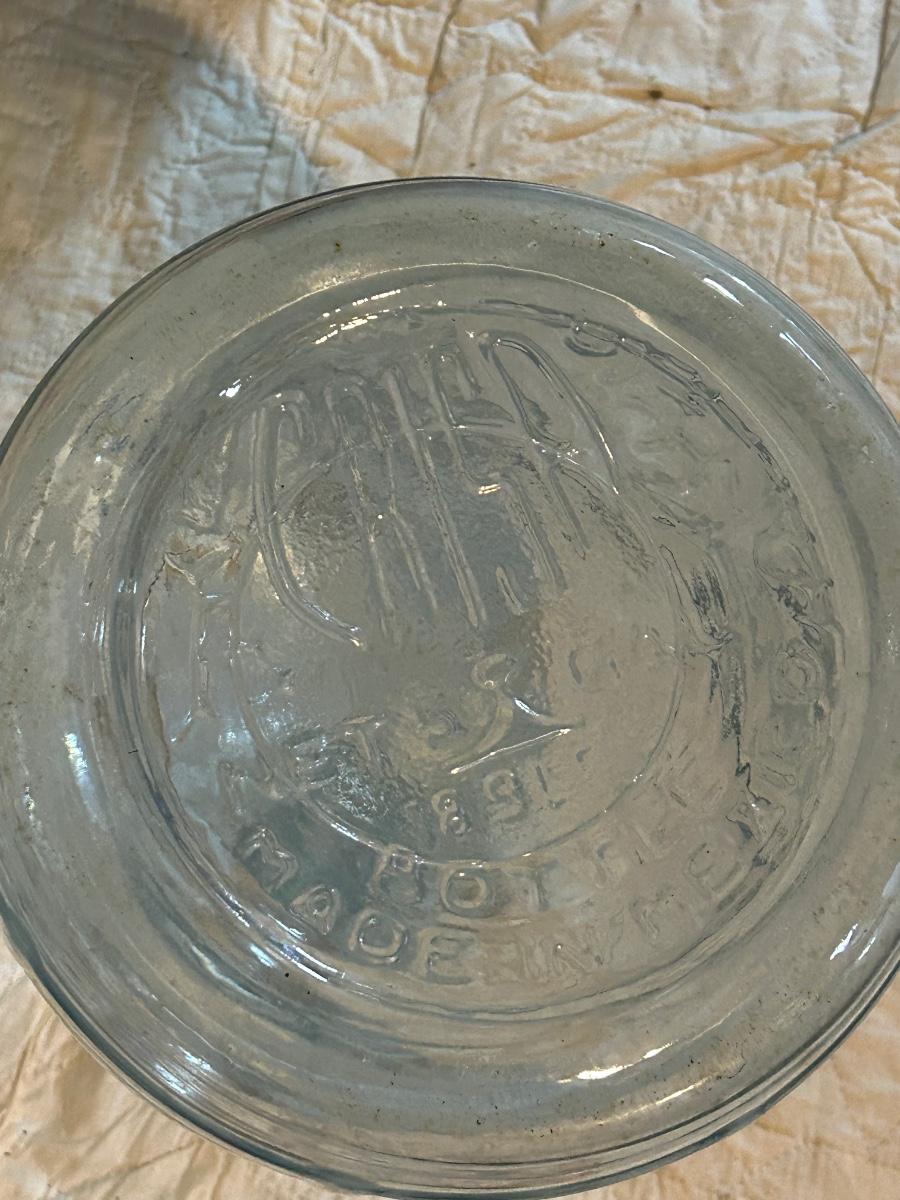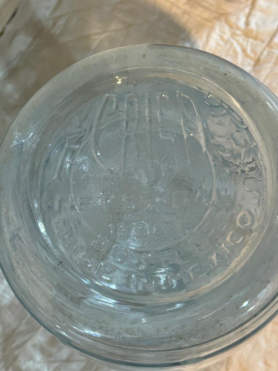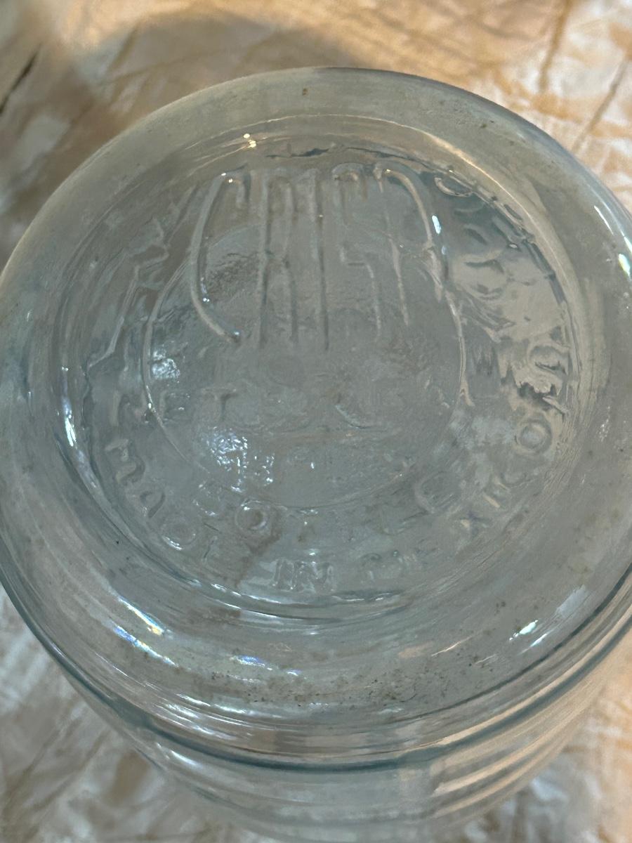 Large glass water jug.