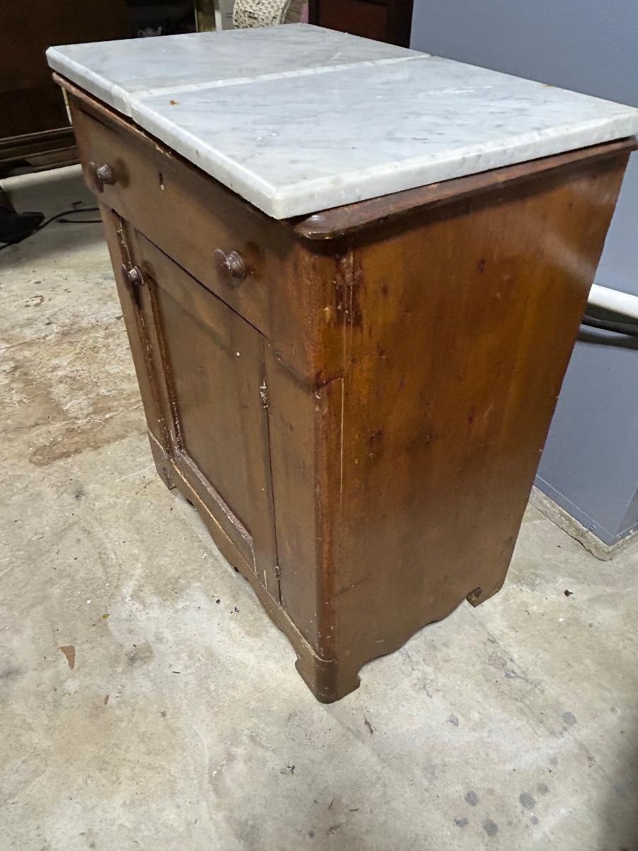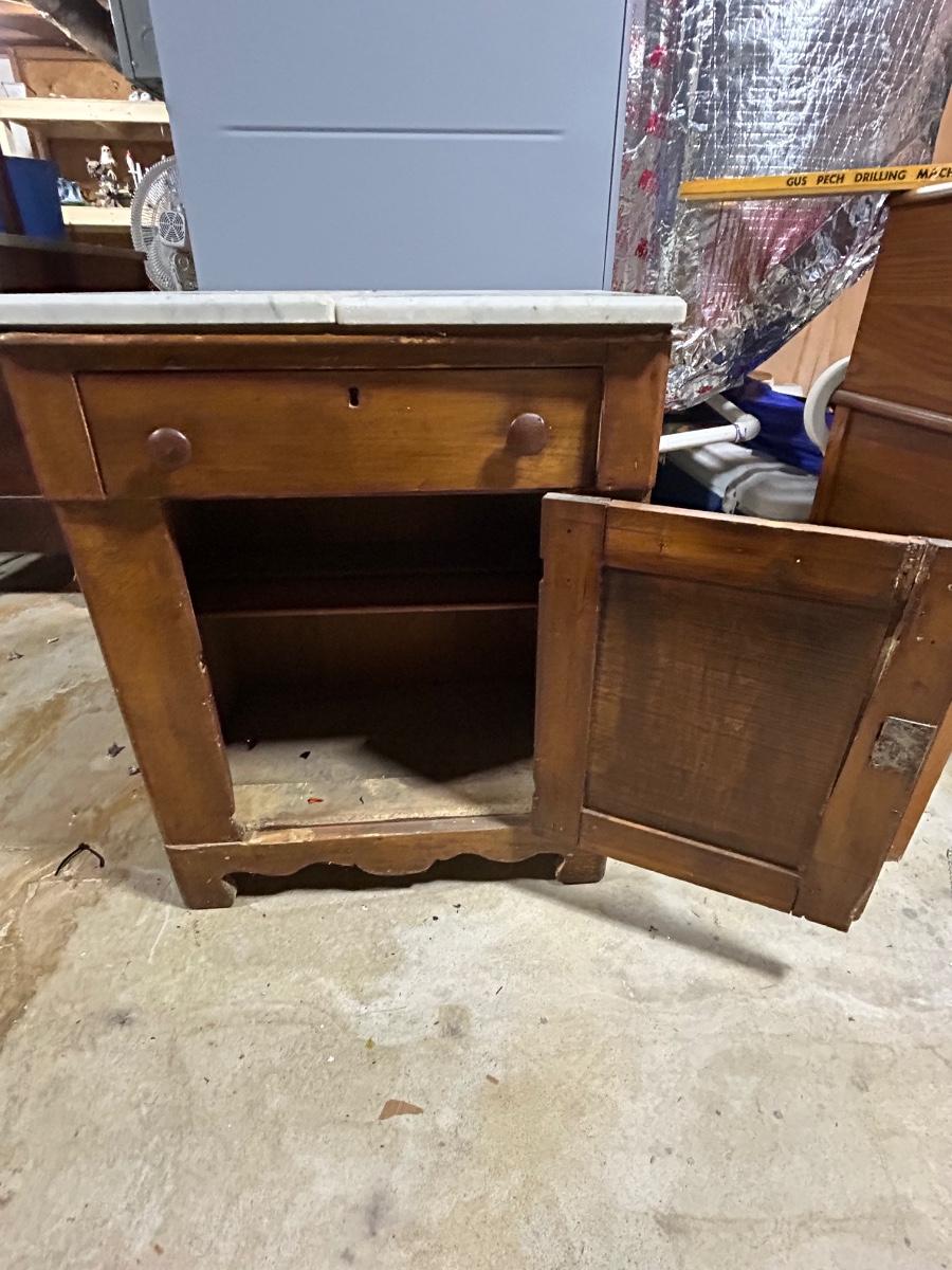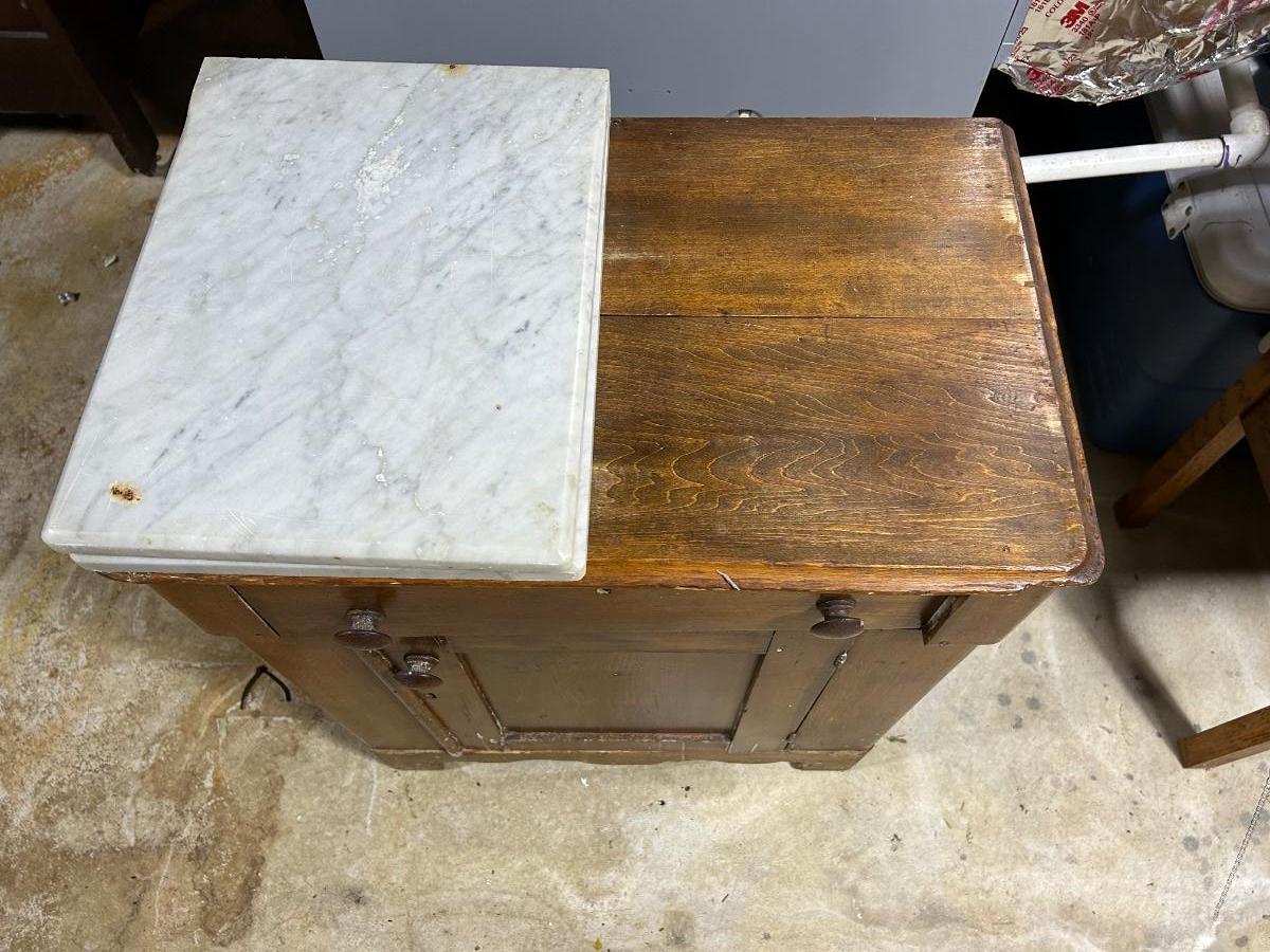 LOT 145C: Antique Wood Cabinet With Fitted Marble Pieces On Top