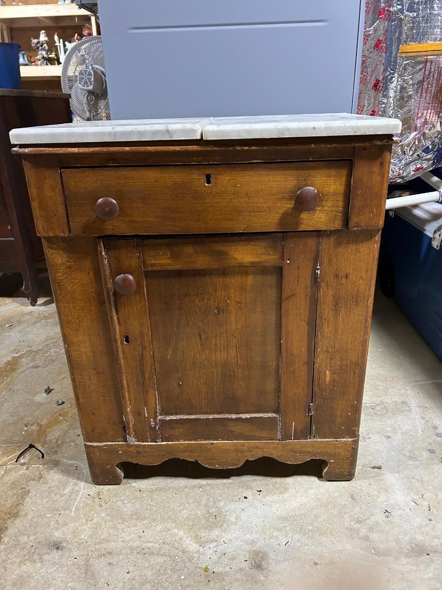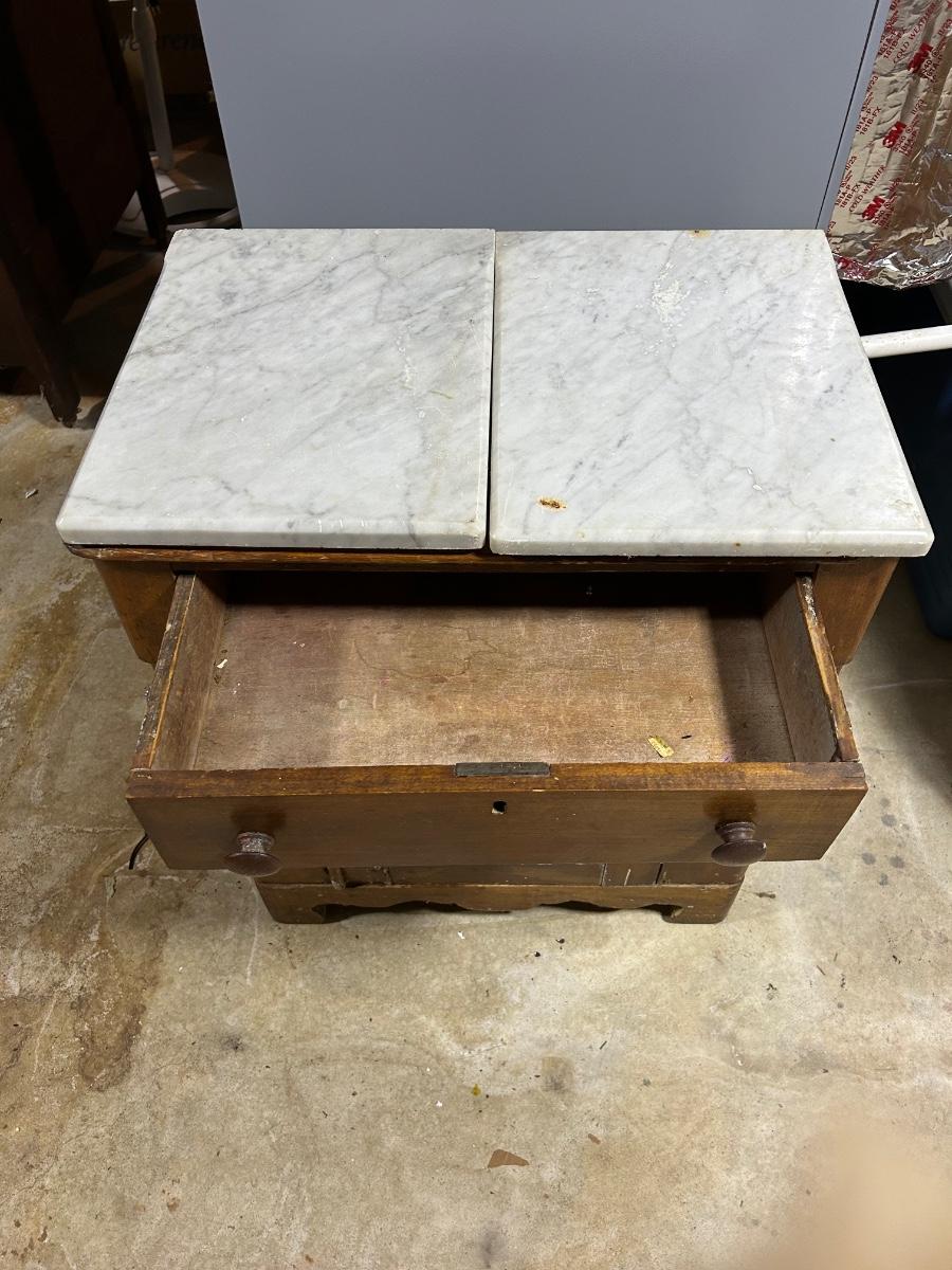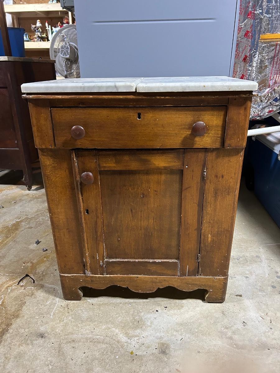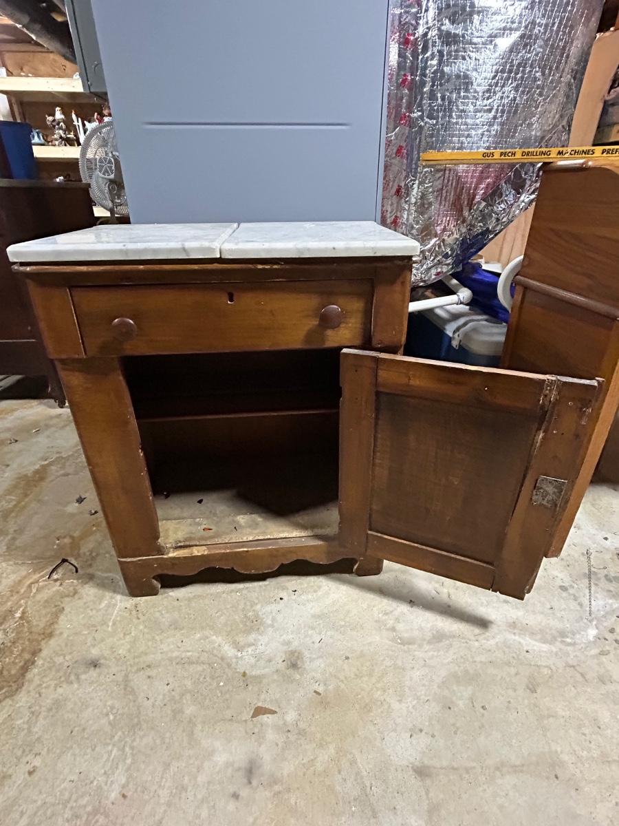 LOT 145C: Antique Wood Cabinet With Fitted Marble Pieces On Top