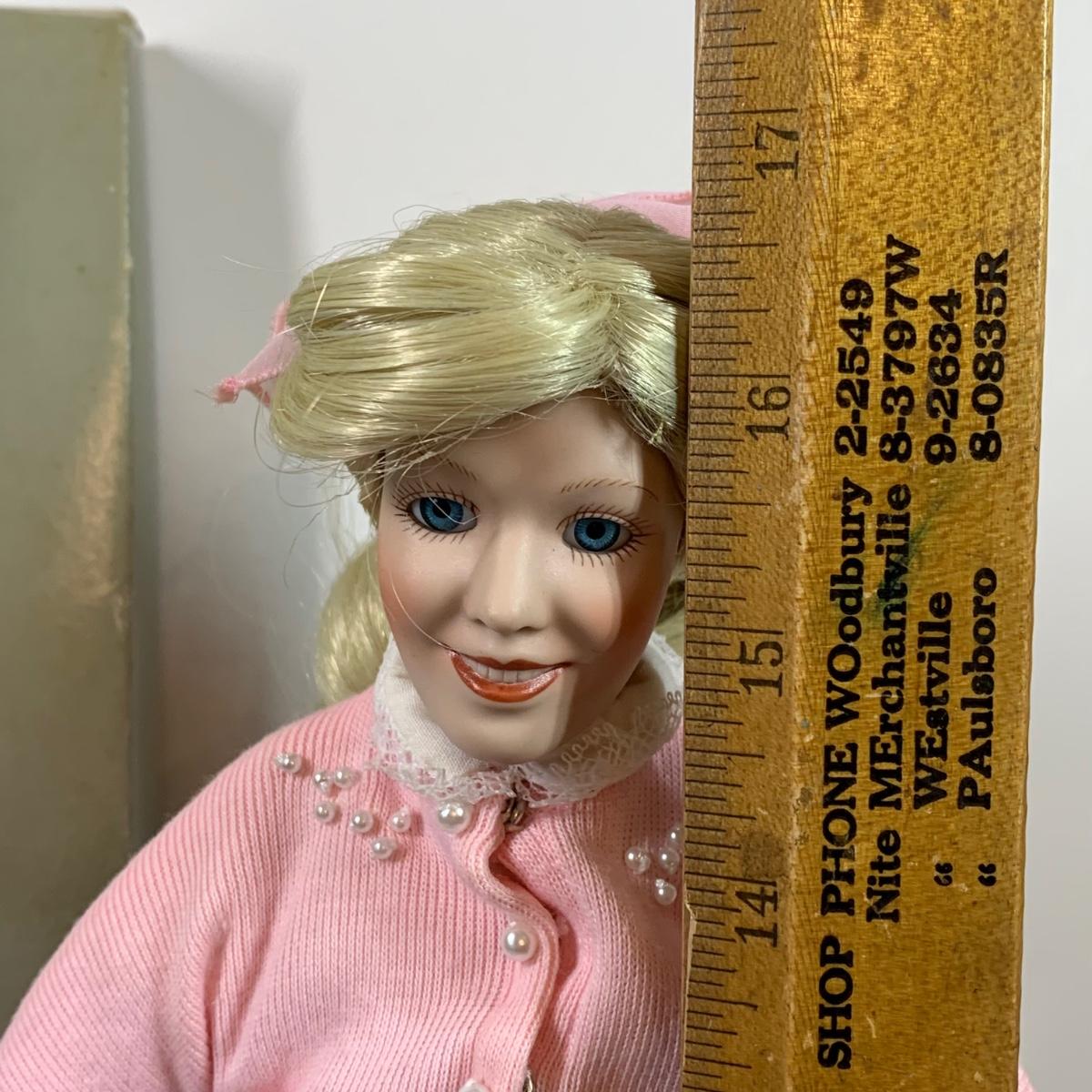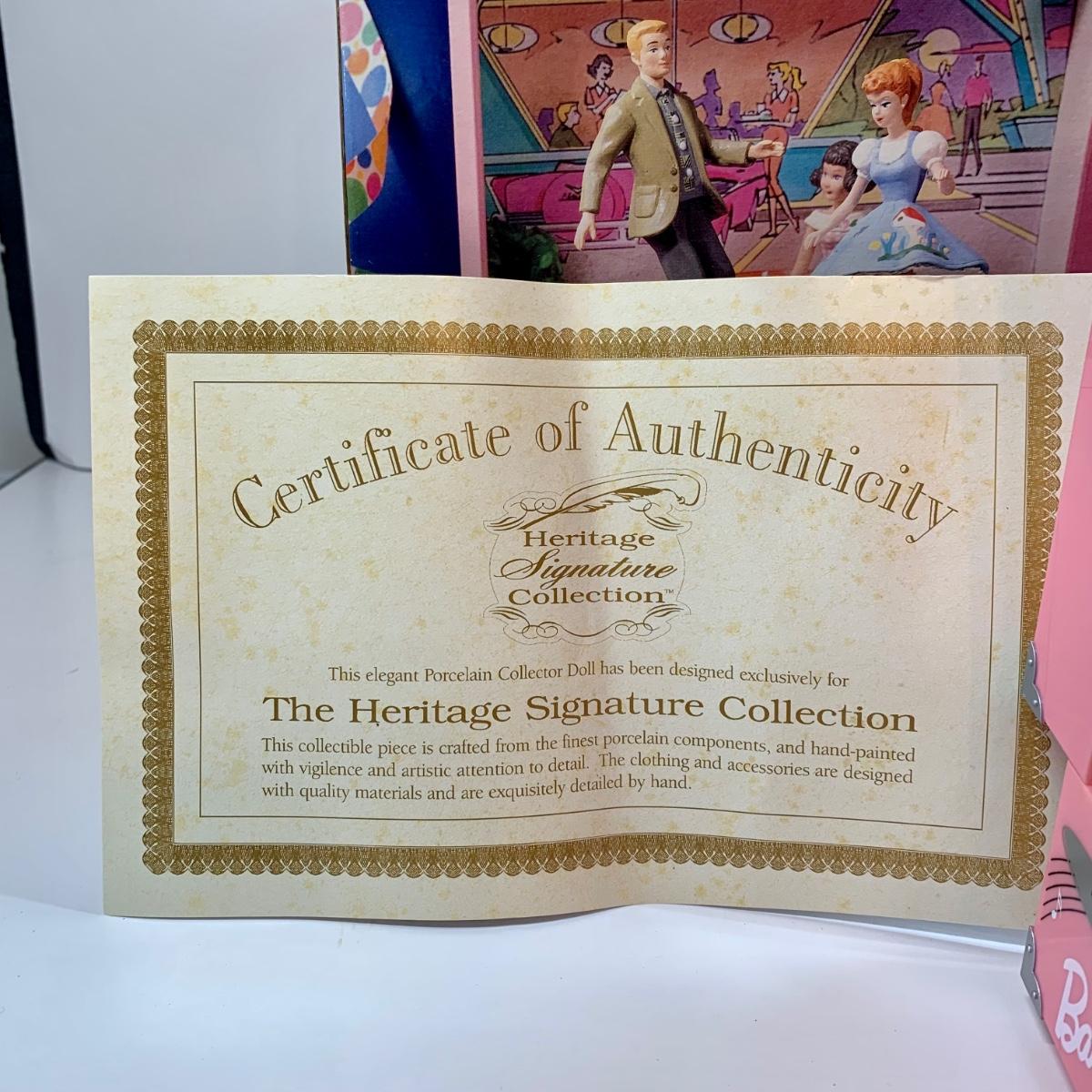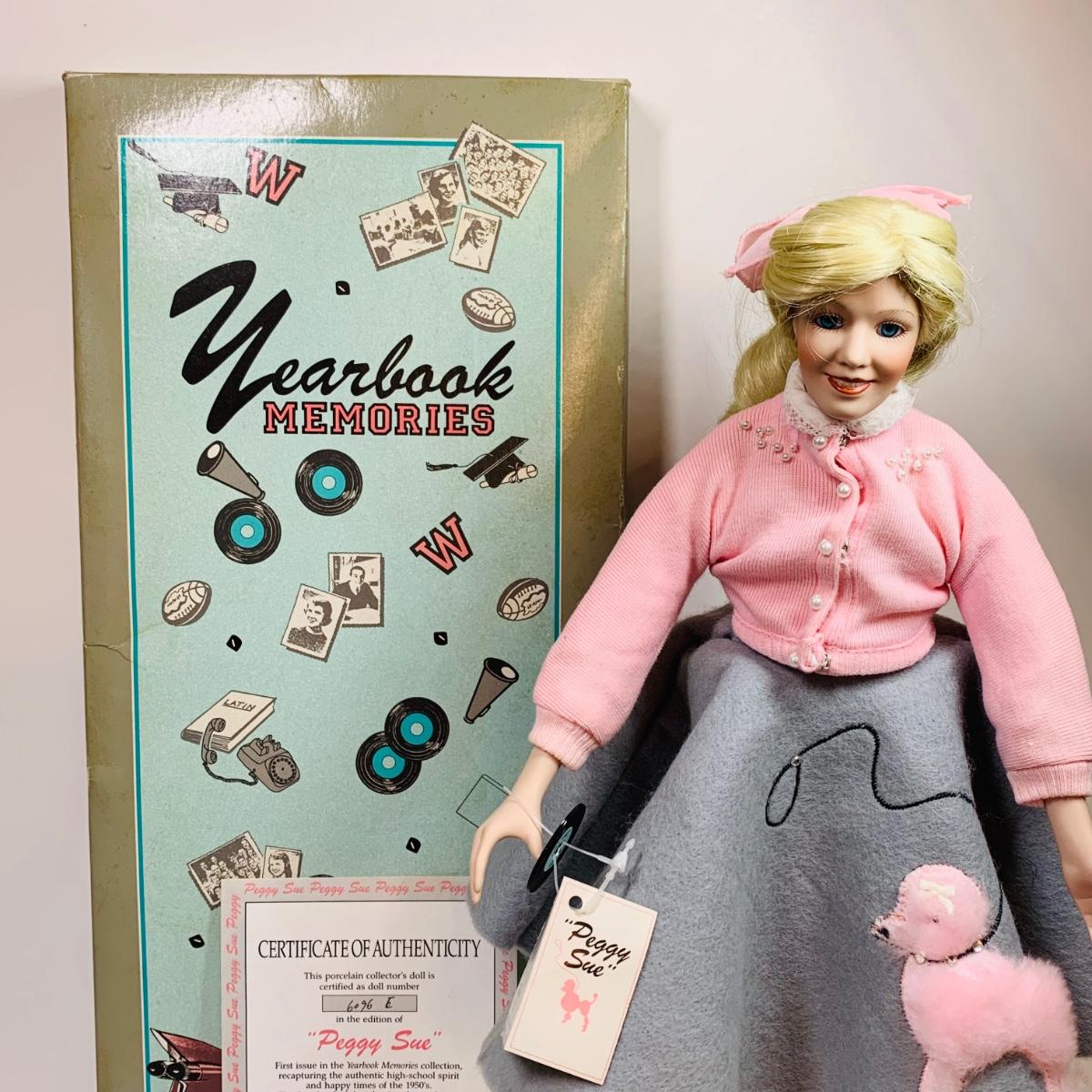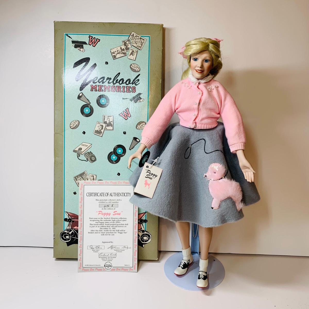 LOT 183R: Barbie LET’S GO TO THE HOP Music Box w/ Action #551538 ENESCO, "Peggy Sue" Yearbook Memories Porcelain Doll & Orna-Musical Juke Box Ornament