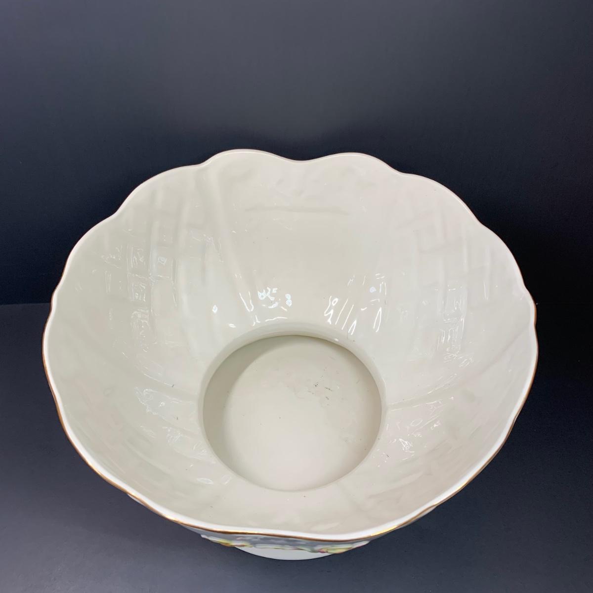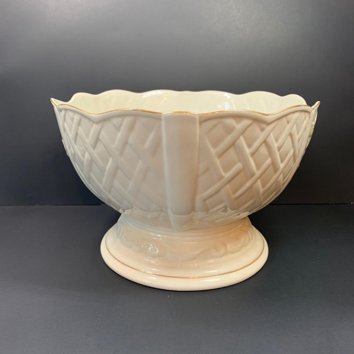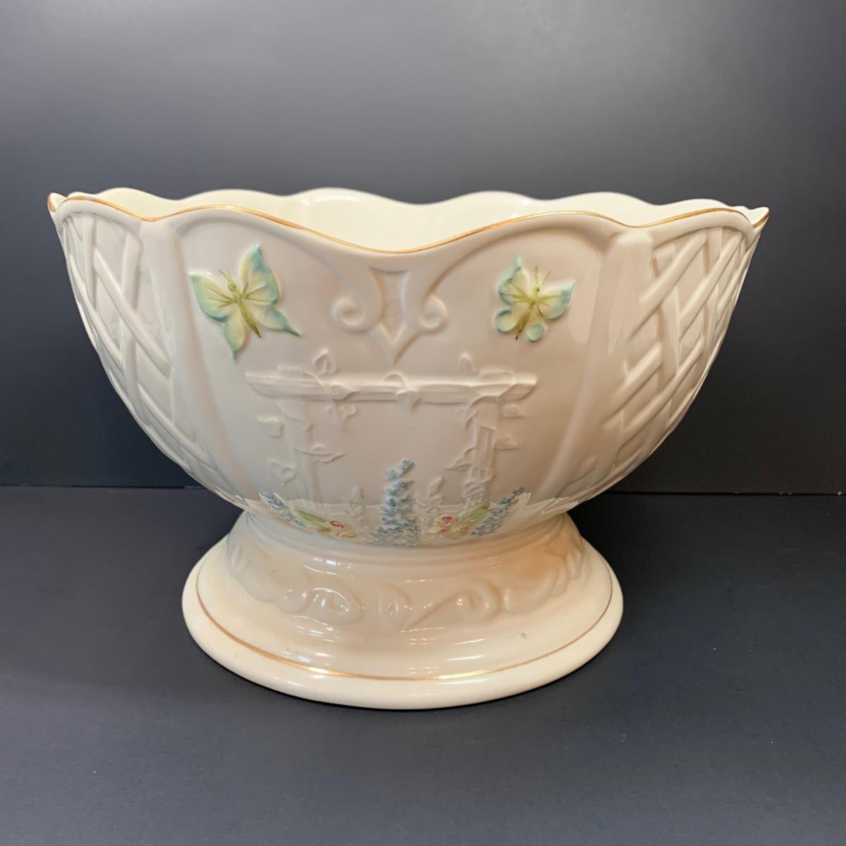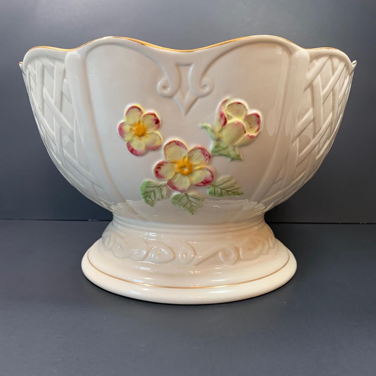 LOT 184R: Beautiful Large Belleek Bowl & Yellow Floral Napkins (8)