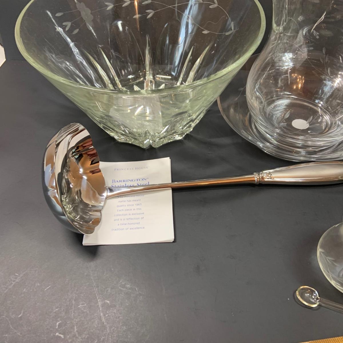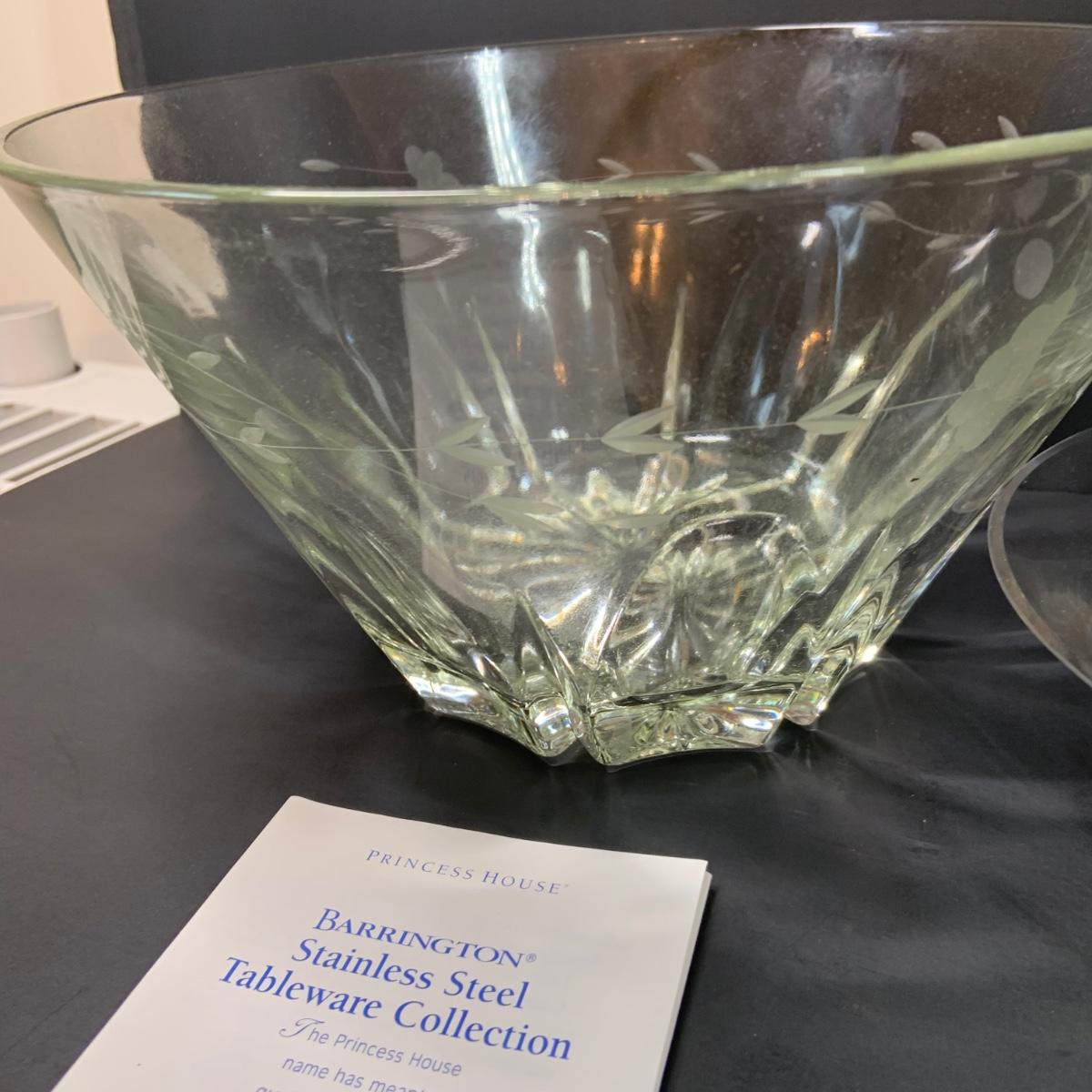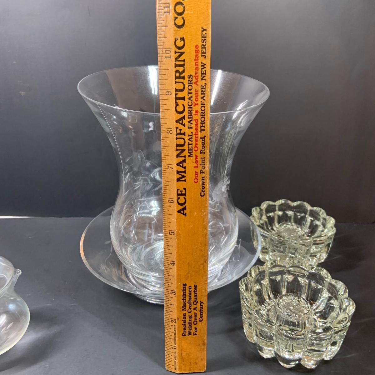 LOT 189G: Princess House Collection: Vase, Candle Holders, Sugar Bowl, Large Bowl& Serving Spoon