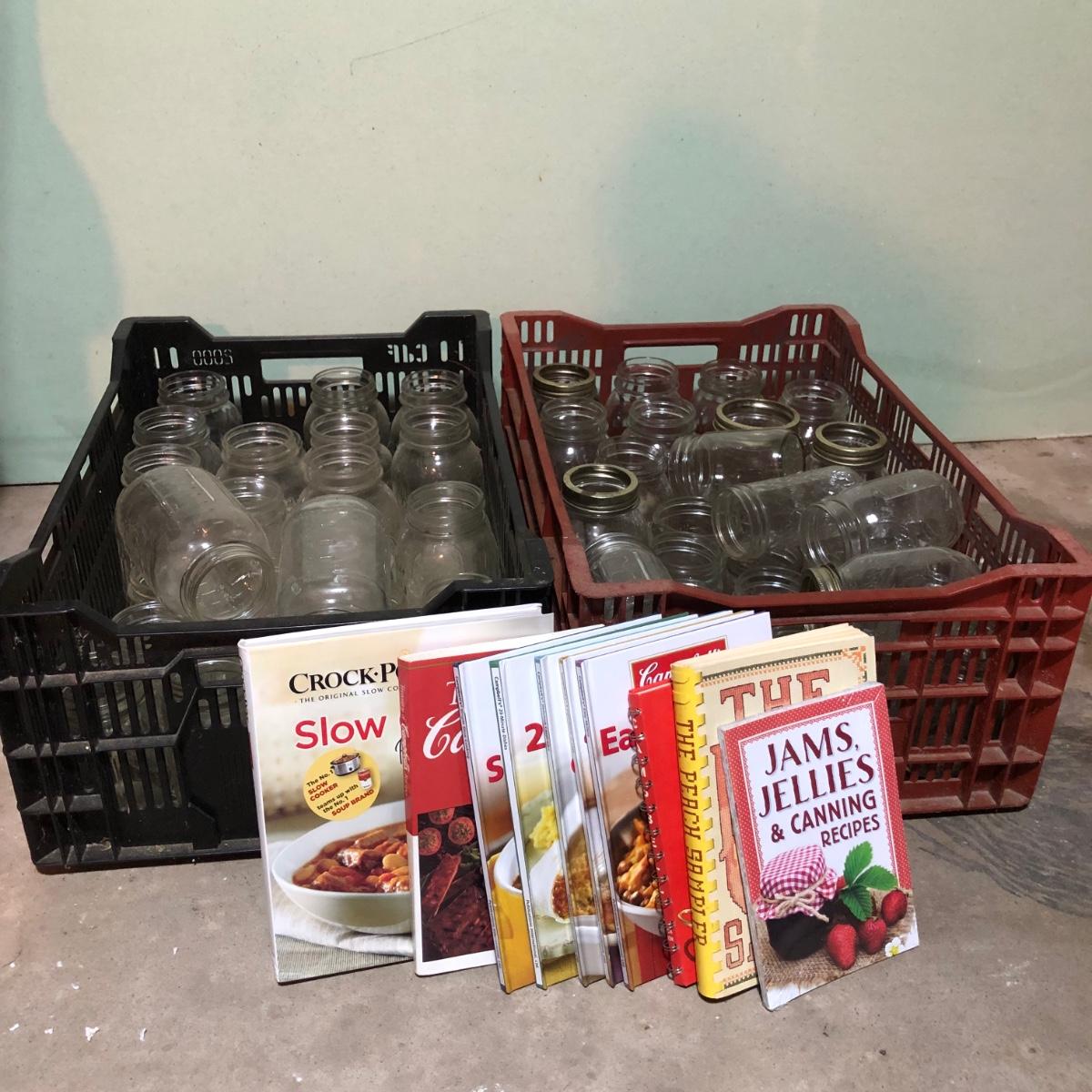 LOT 215M: Atlas & Ball Mason Jars w/ Cookbooks