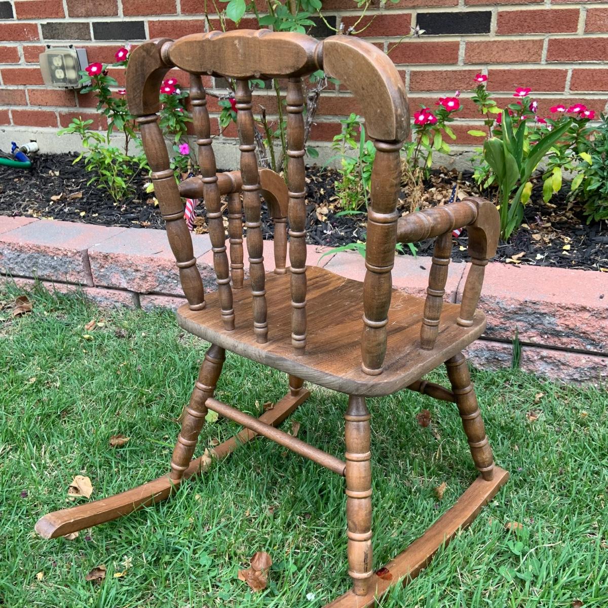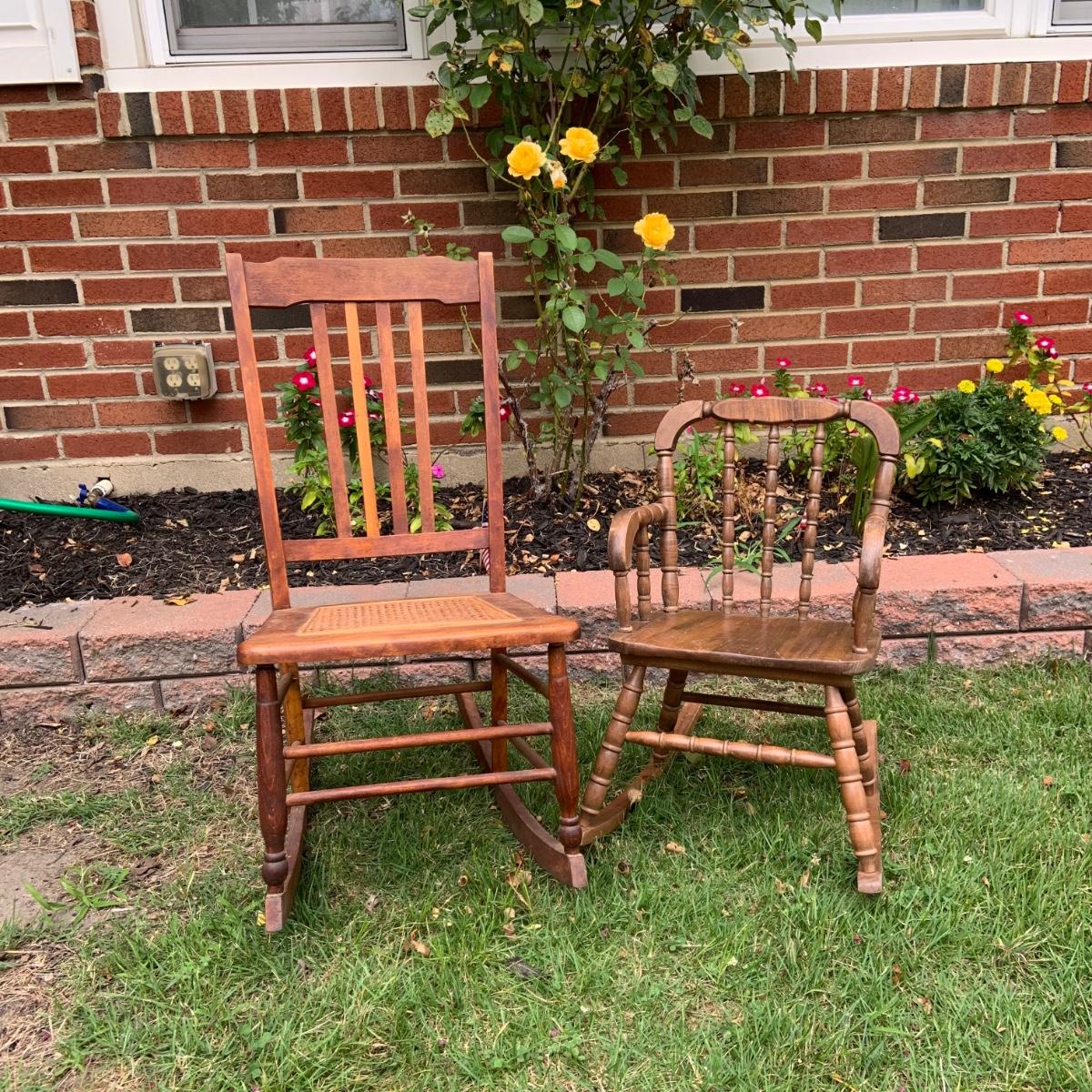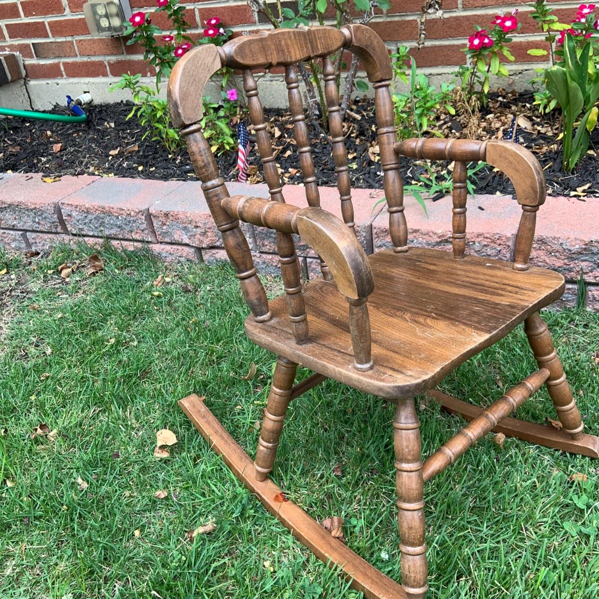 The Rocker is 17 x 27 x 35" and the Child's is 15 x 22 x 25". Please see all pictures as they are the best representation of the items. The pictures show condition, measurements if taken, and what is included in the lot. Due to the large amount that we photograph and the time frame, we are not always able to take measurements. All items unless noted, are pre-owned and have been used. If you purchased furniture, you must bring help. We do not allow one person to carry large furniture out on their own. Bring help, tools and a truck for the safety of our client’s homes, and your personal safety. Any damages that result to the property including walls, and floors due to moving of the furniture will be charged to the buyer. Company policy. Thank you.