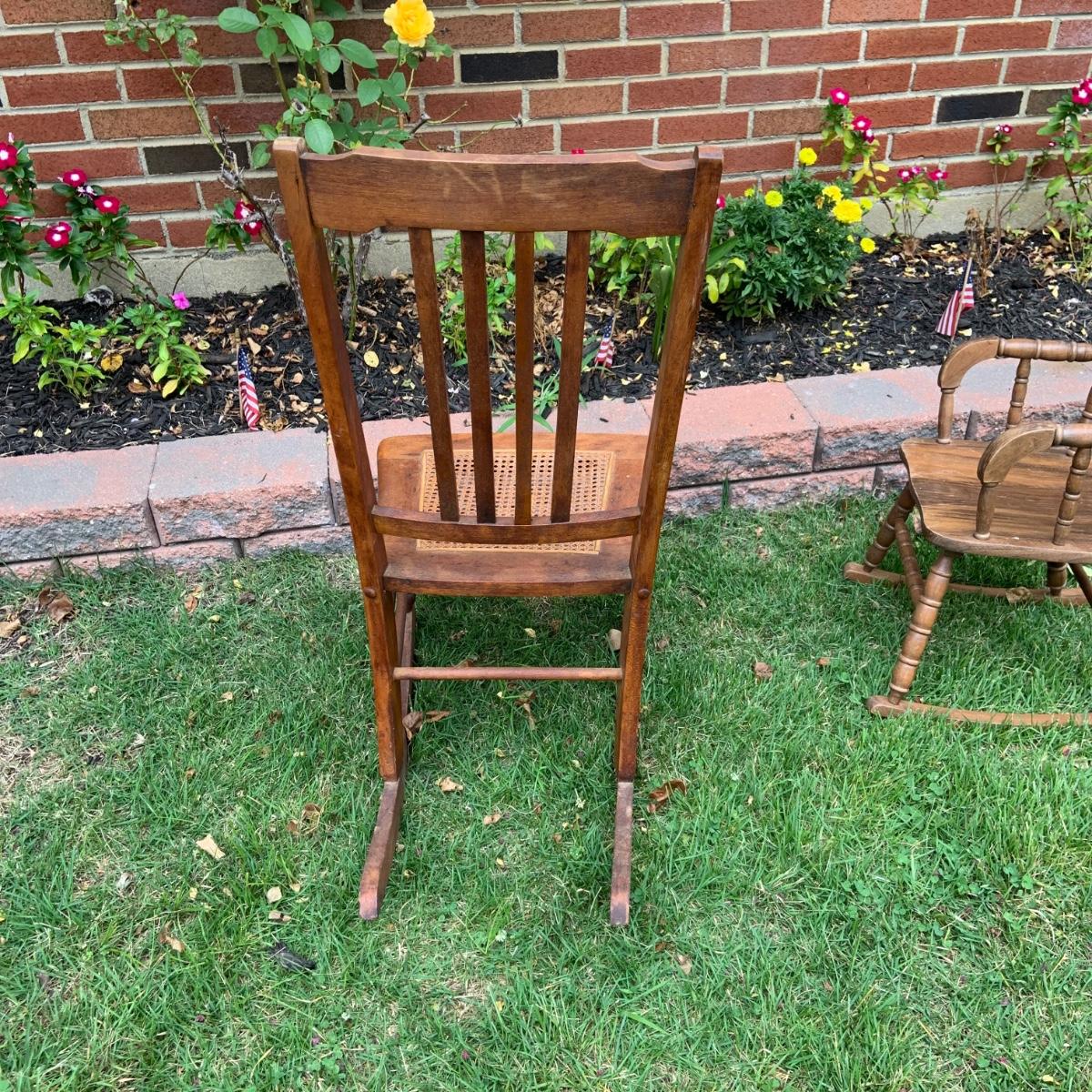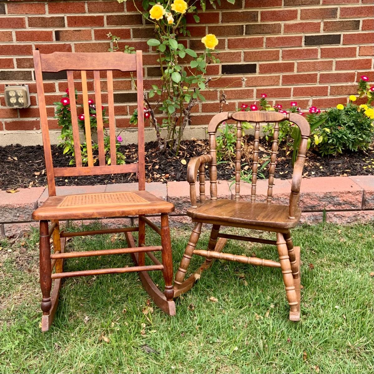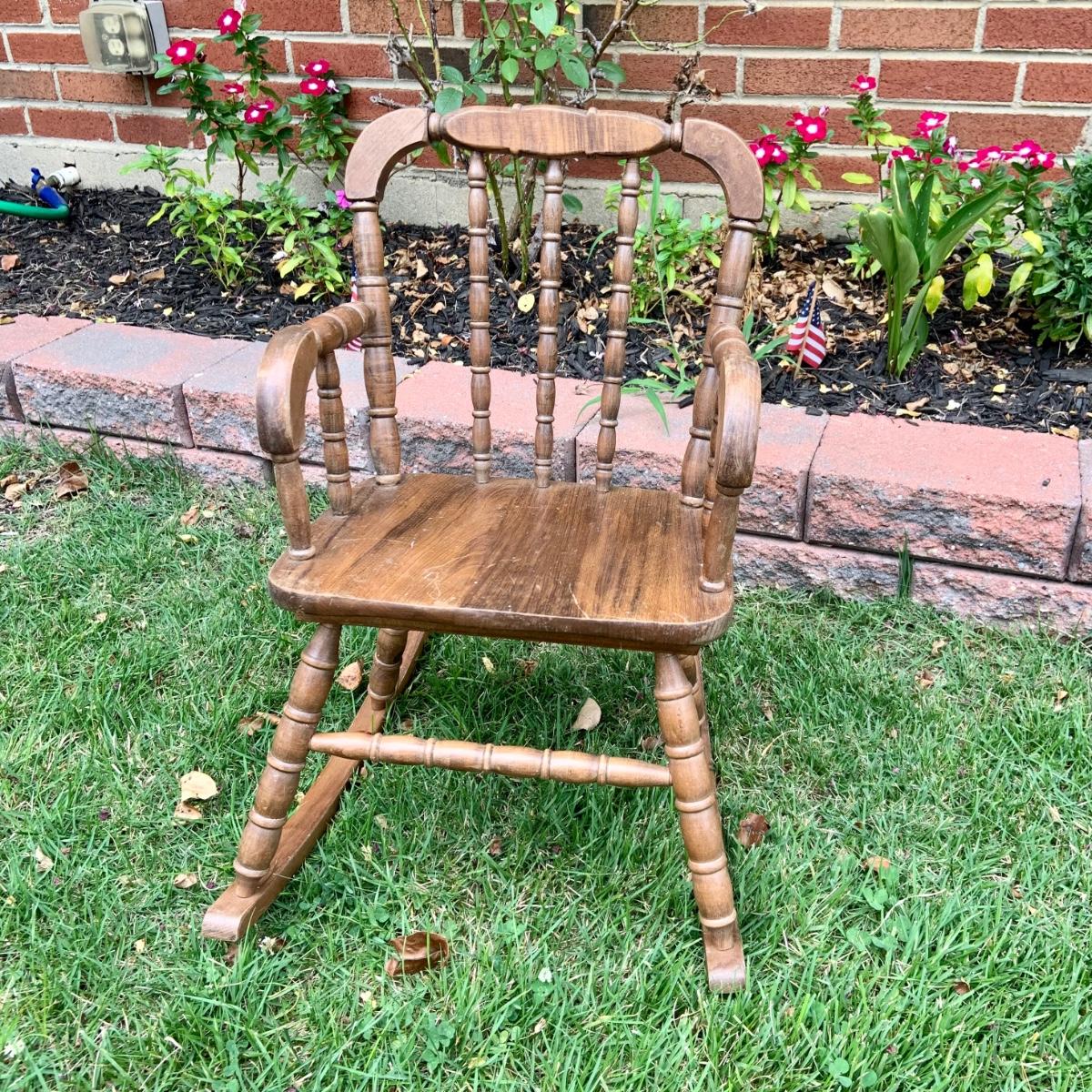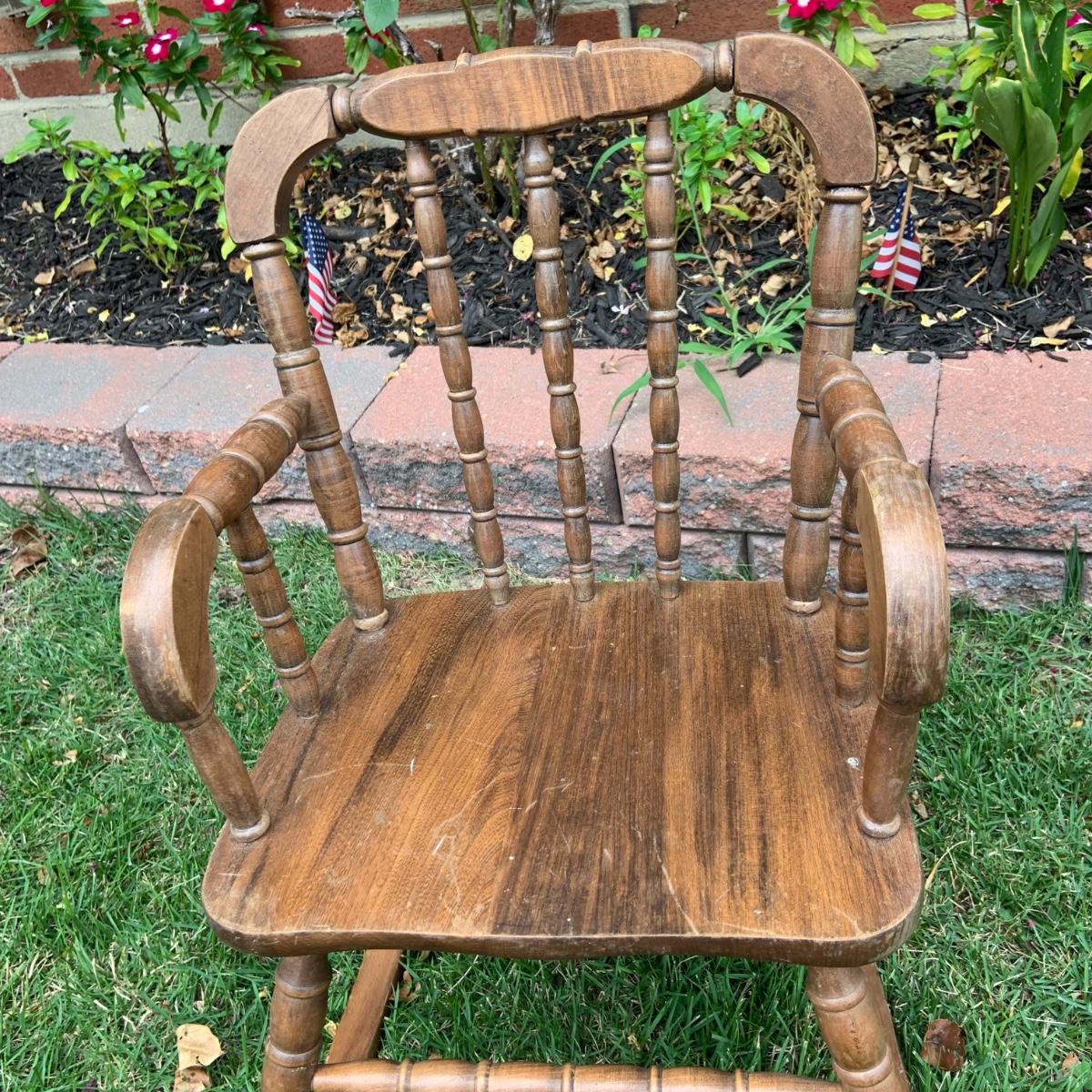 The Rocker is 17 x 27 x 35" and the Child's is 15 x 22 x 25". Please see all pictures as they are the best representation of the items. The pictures show condition, measurements if taken, and what is included in the lot. Due to the large amount that we photograph and the time frame, we are not always able to take measurements. All items unless noted, are pre-owned and have been used. If you purchased furniture, you must bring help. We do not allow one person to carry large furniture out on their own. Bring help, tools and a truck for the safety of our client’s homes, and your personal safety. Any damages that result to the property including walls, and floors due to moving of the furniture will be charged to the buyer. Company policy. Thank you.