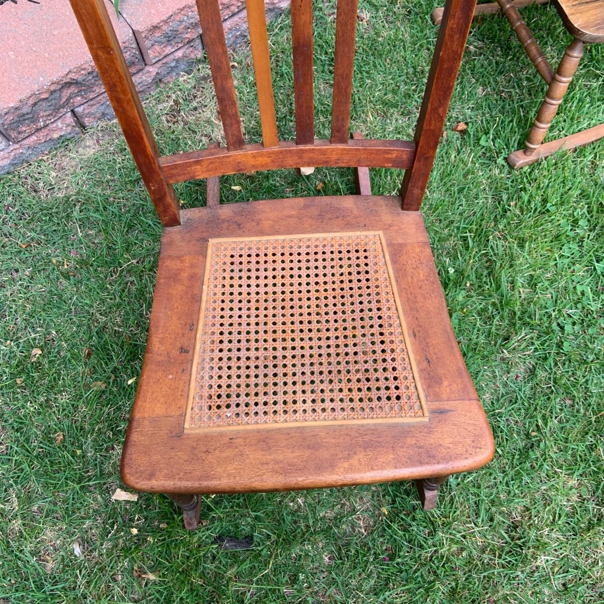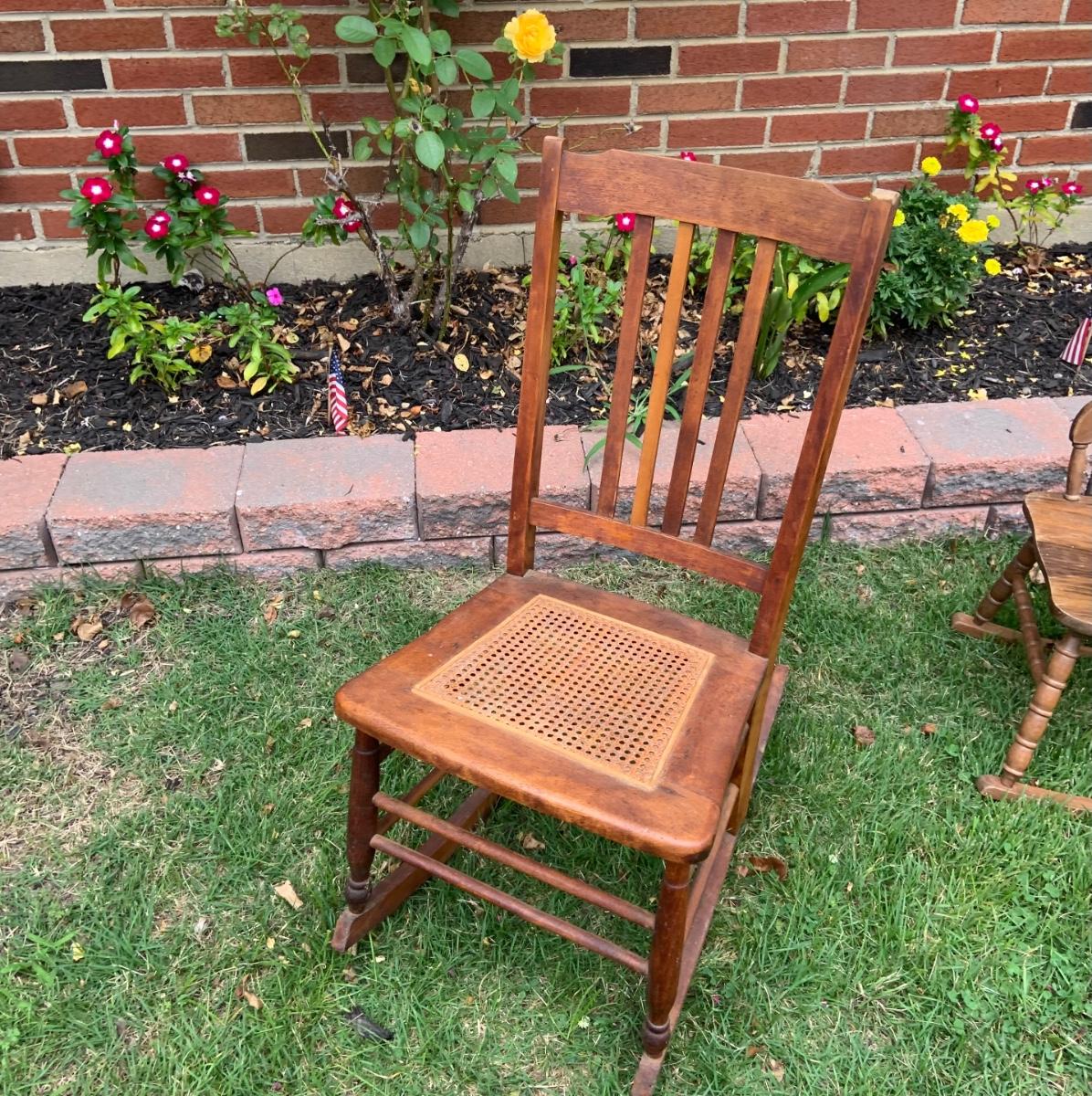 LOT:230G: Vintage Wooden Nursing Rocker with Cain Seat and a Child's Wooden Rocking Chair