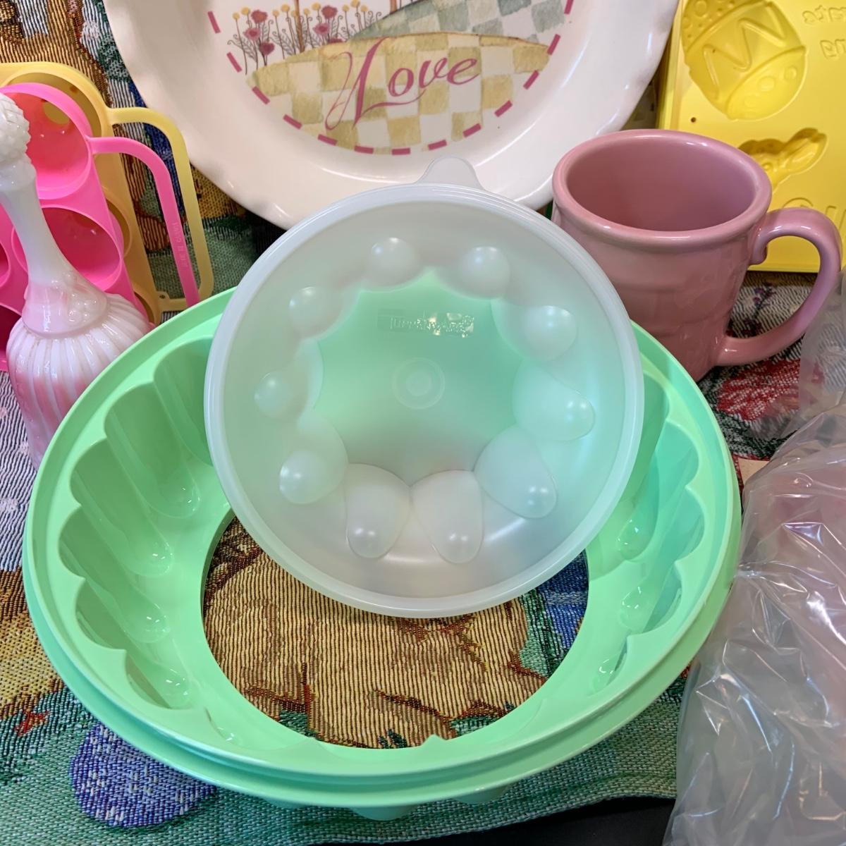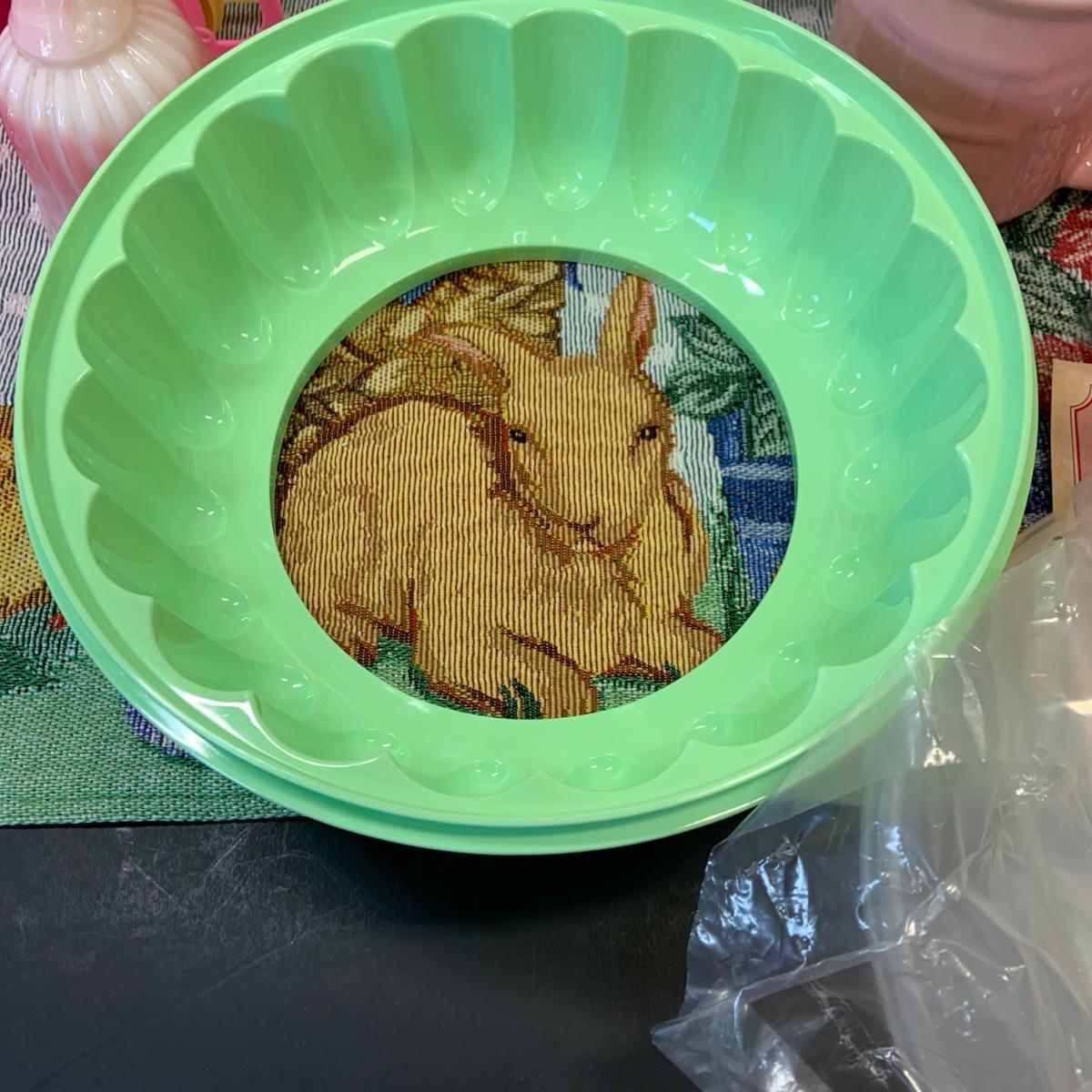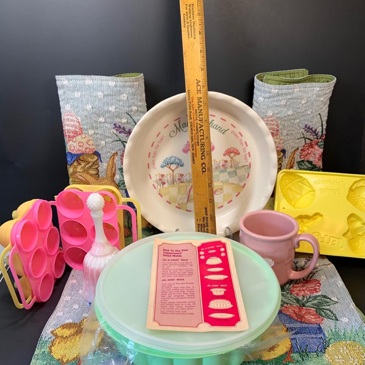 LOT:249G: Jello It's Spring - Spring Themed and Other Jello Molds, Pink Longaberger Ceramic Mug. Pie Dish and More