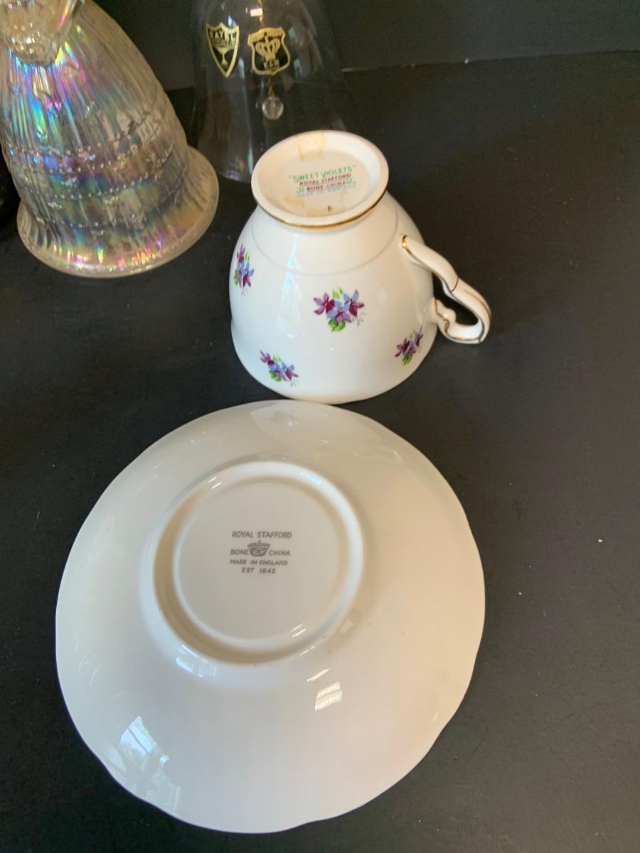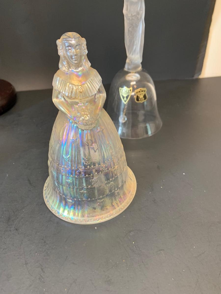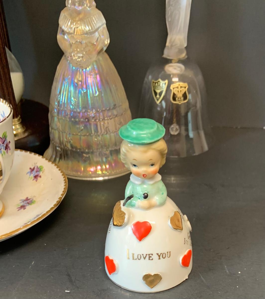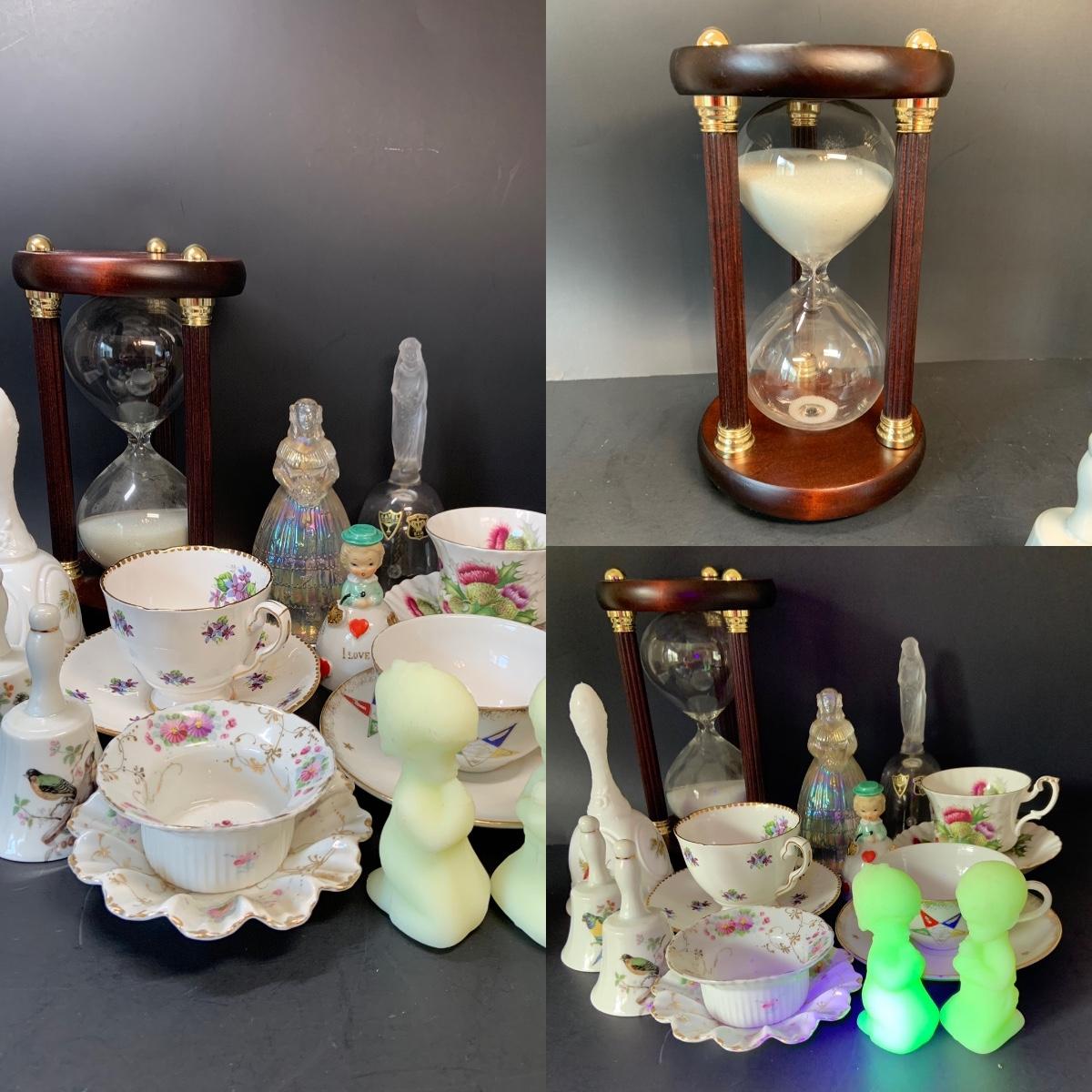 LOT::251G: Fenton Green Custard Uranium Glass Praying Girl & Boy; Tea Cups & Saucers, Bells Imperial Carnival Glass, Milk Glass, Bayel & More