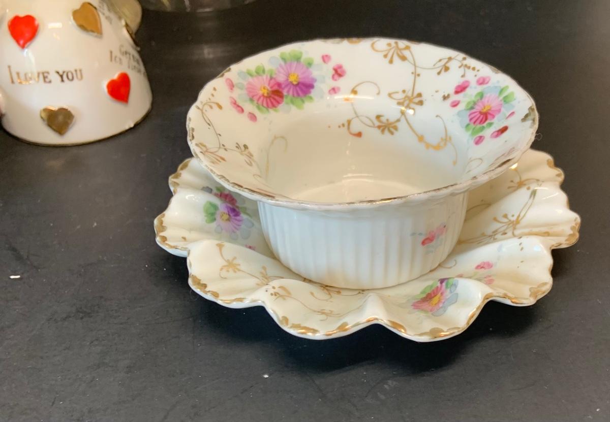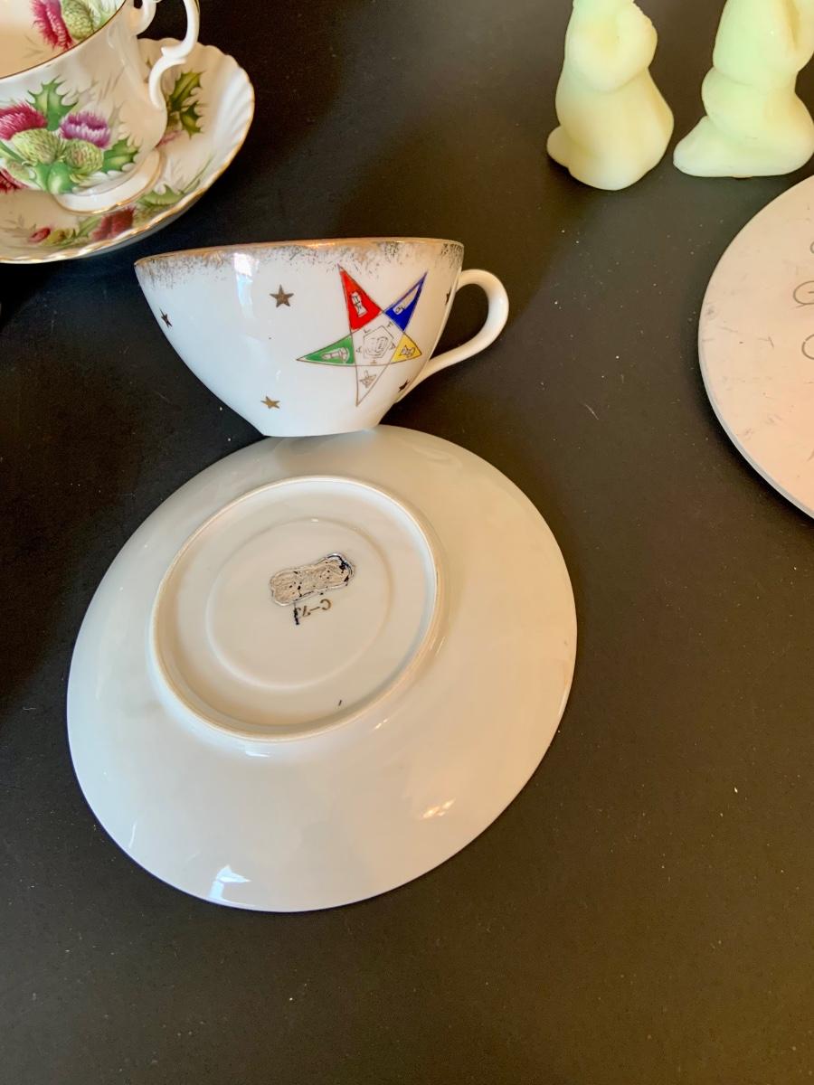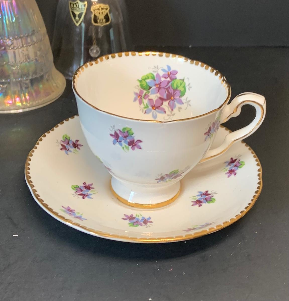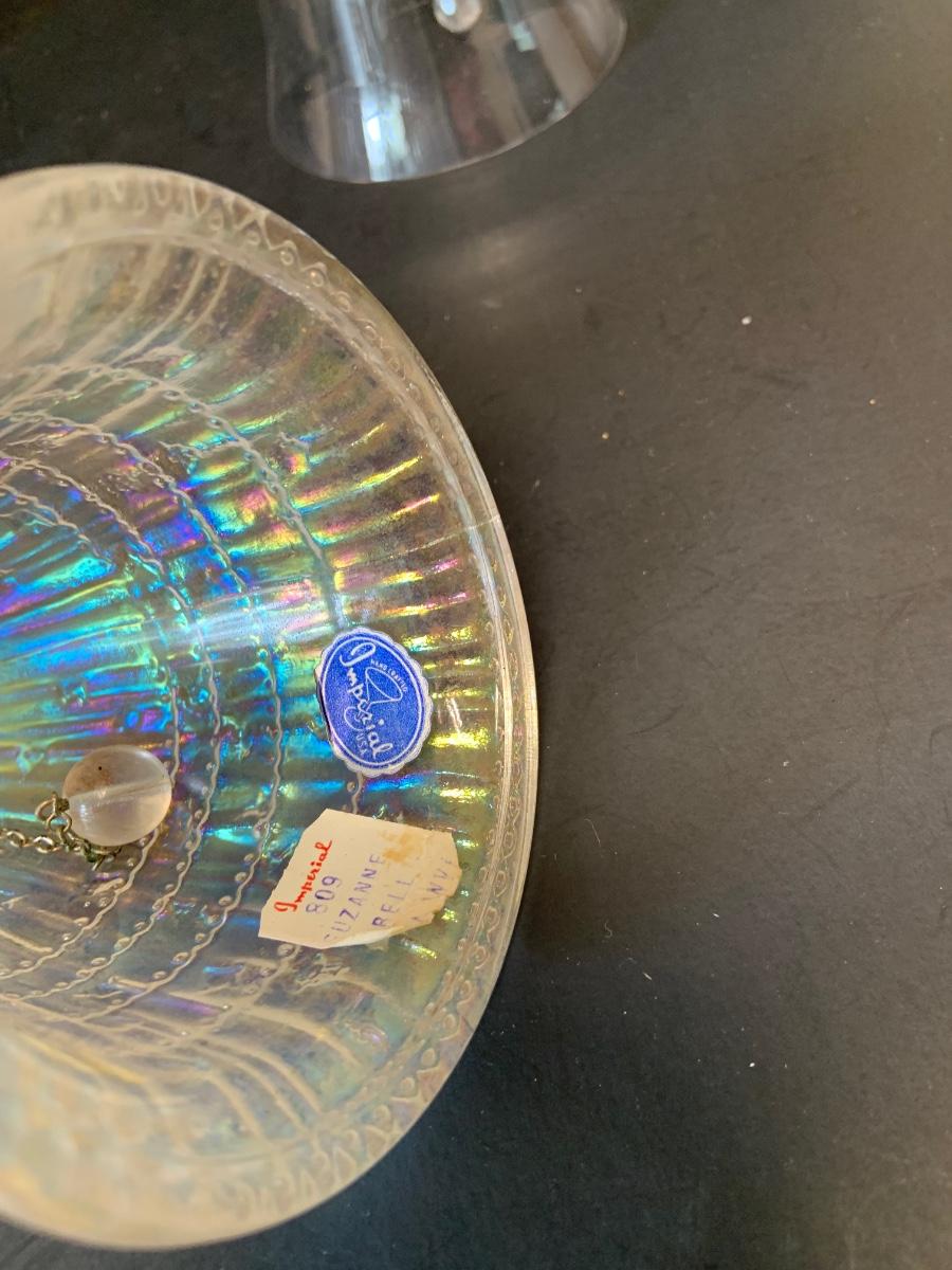 LOT::251G: Fenton Green Custard Uranium Glass Praying Girl & Boy; Tea Cups & Saucers, Bells Imperial Carnival Glass, Milk Glass, Bayel & More
