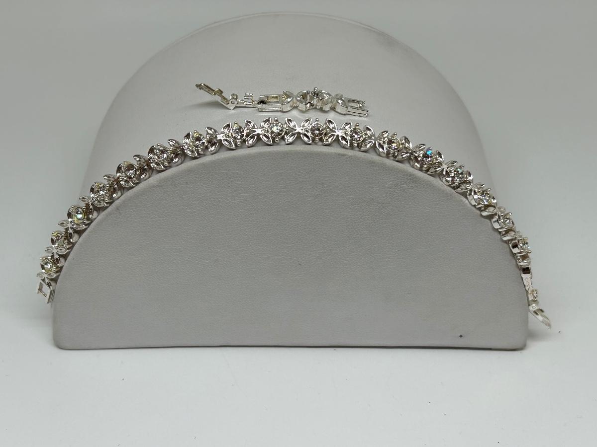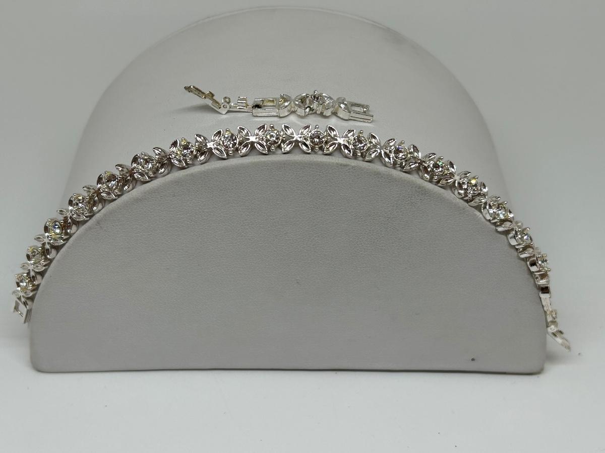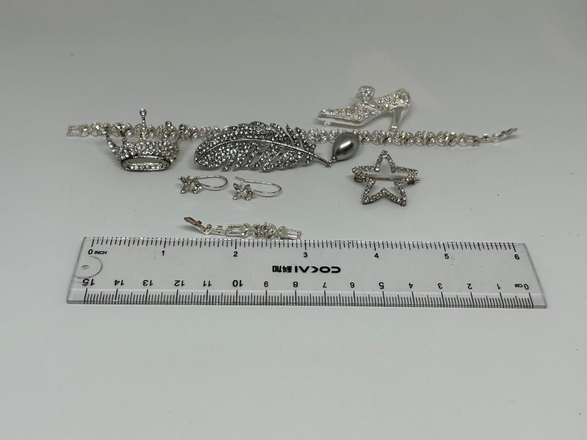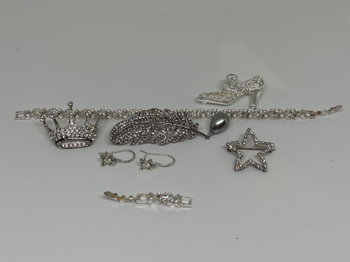 LOT 258C: Silver Tone Rhinestone Bracelet, Brooches & Pierced Earring