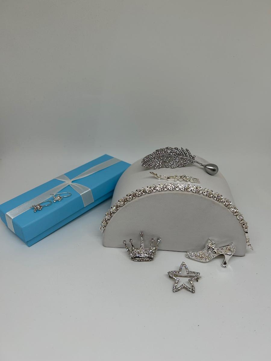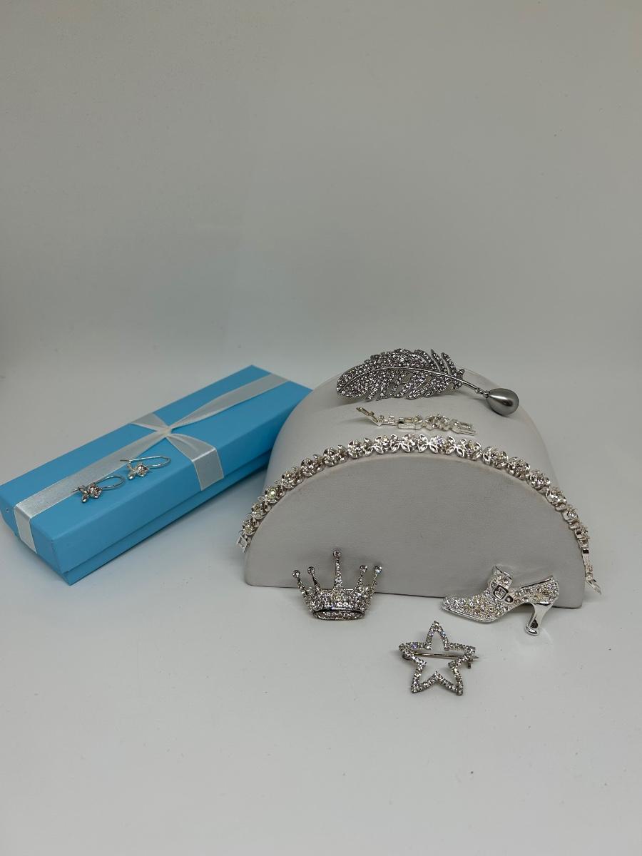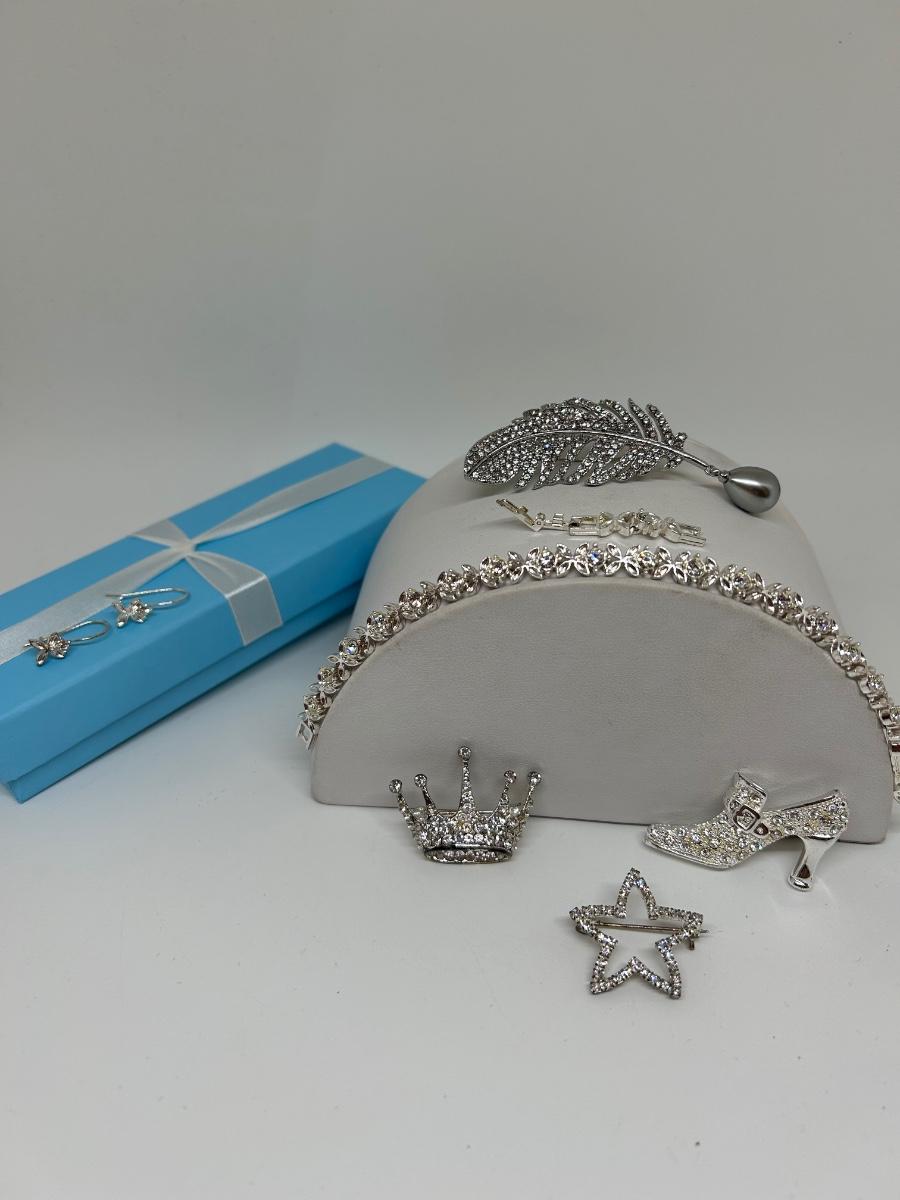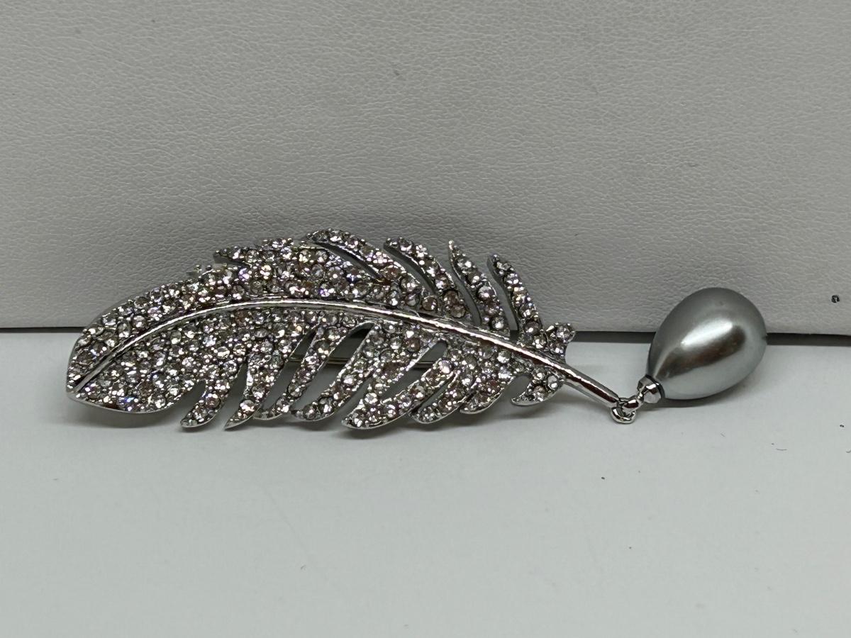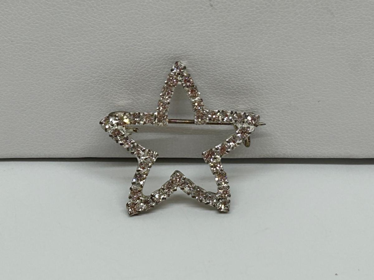 LOT 258C: Silver Tone Rhinestone Bracelet, Brooches & Pierced Earring